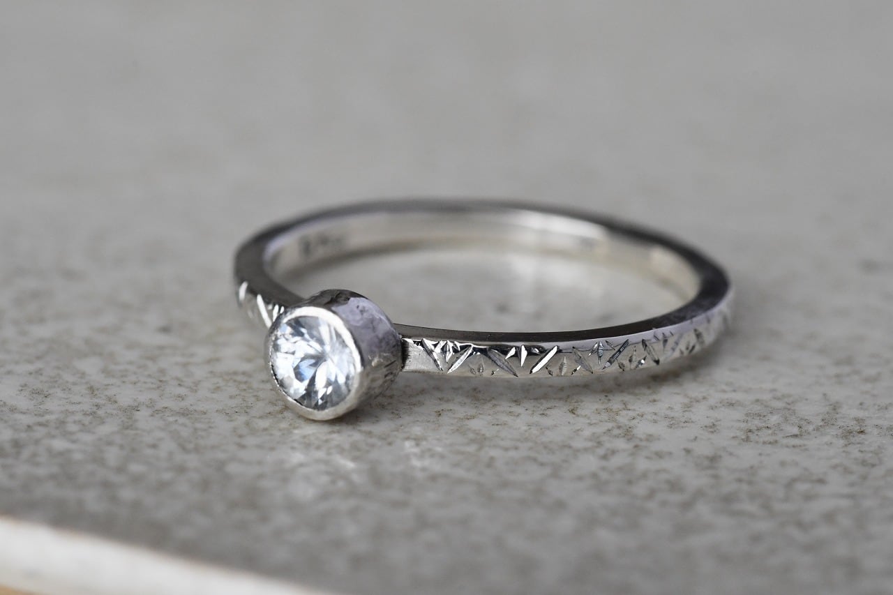 スリランカなどでは2000年以上前から産出されていたとされる石で、古代ギリシャなどでも大切にされていた石です。人造石のキュービックジルコニアなどと混同されることが多いですが正真正銘の天然の宝石です。ブルー、ホワイト、ブラウンなどいくつかの色味があります。
