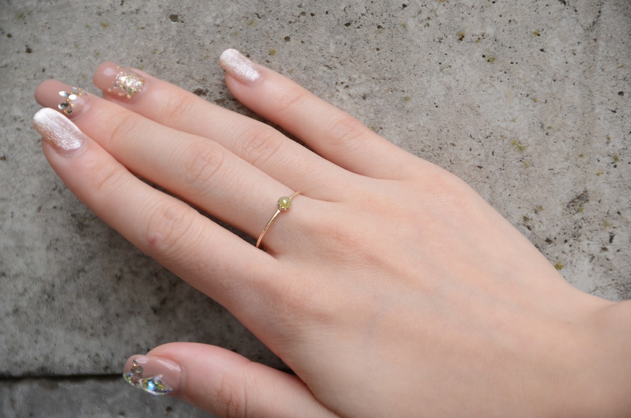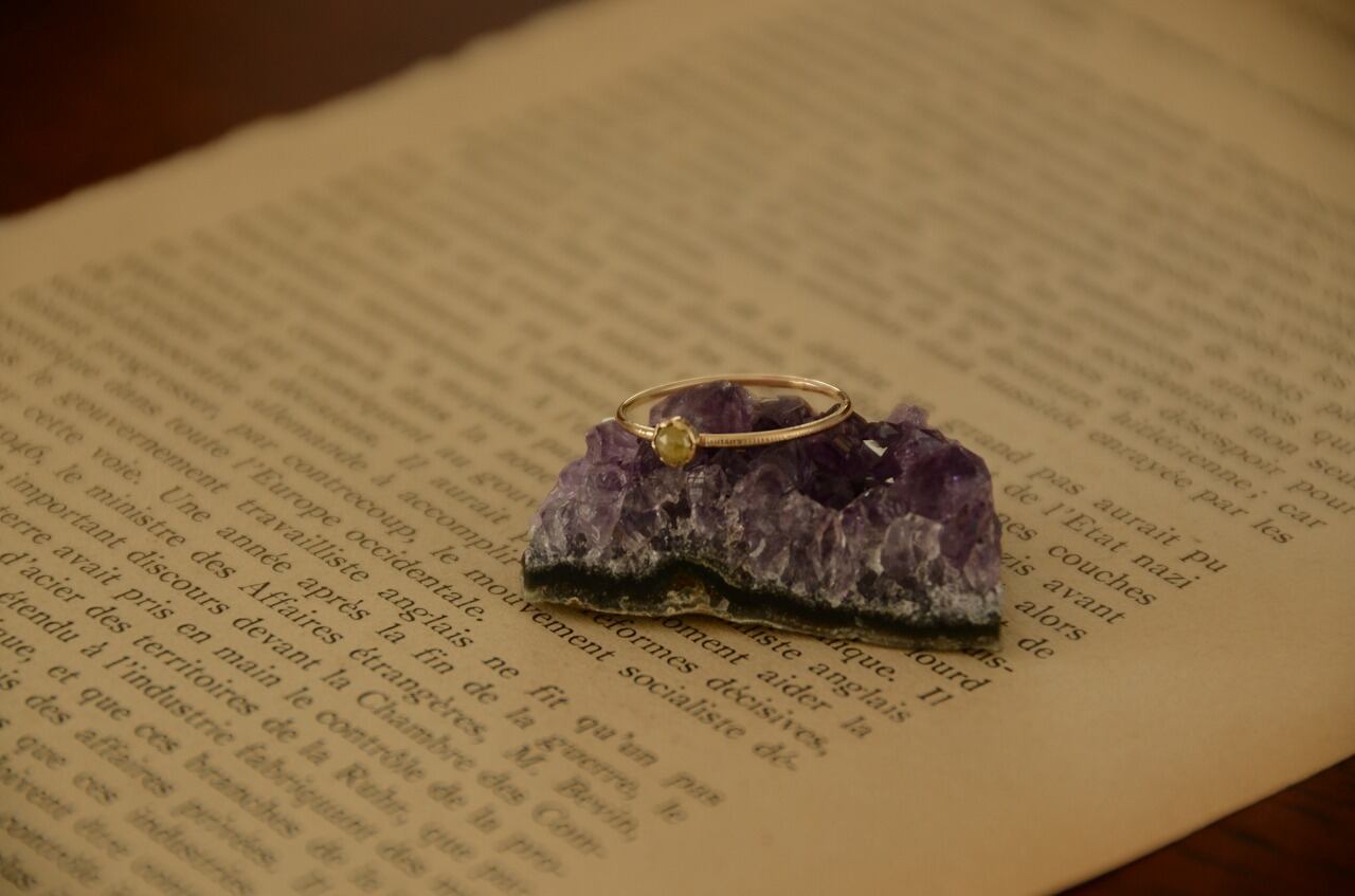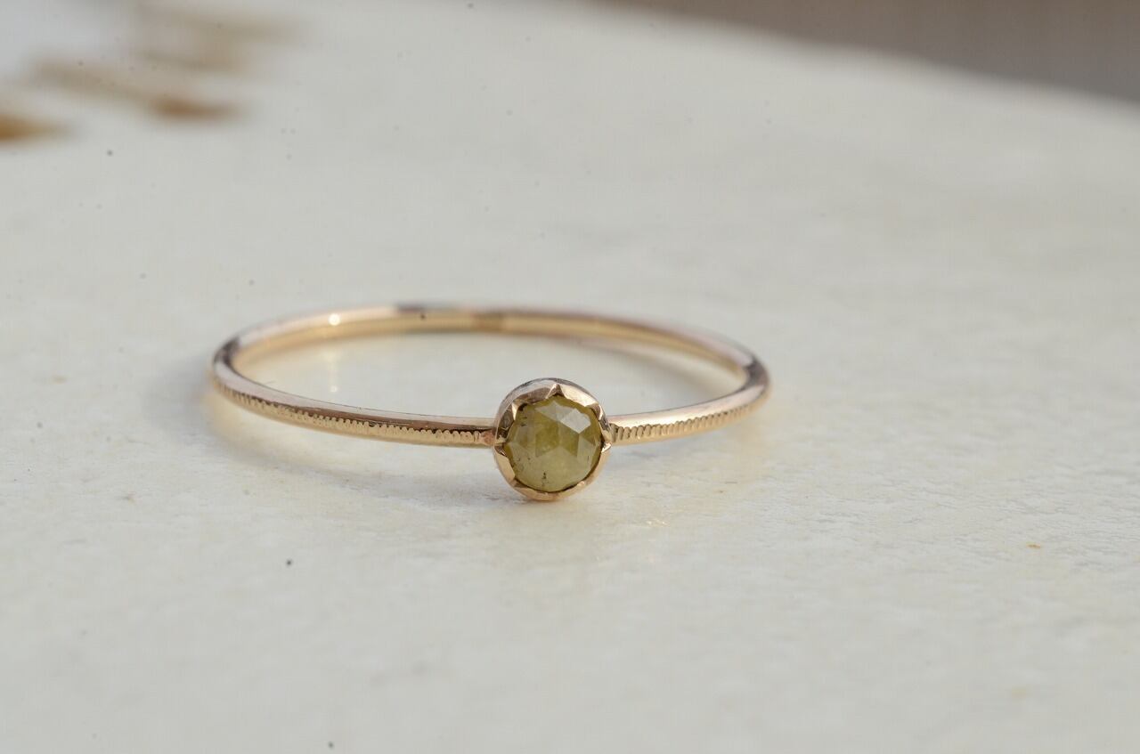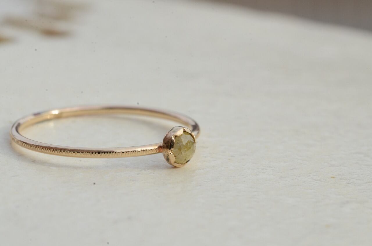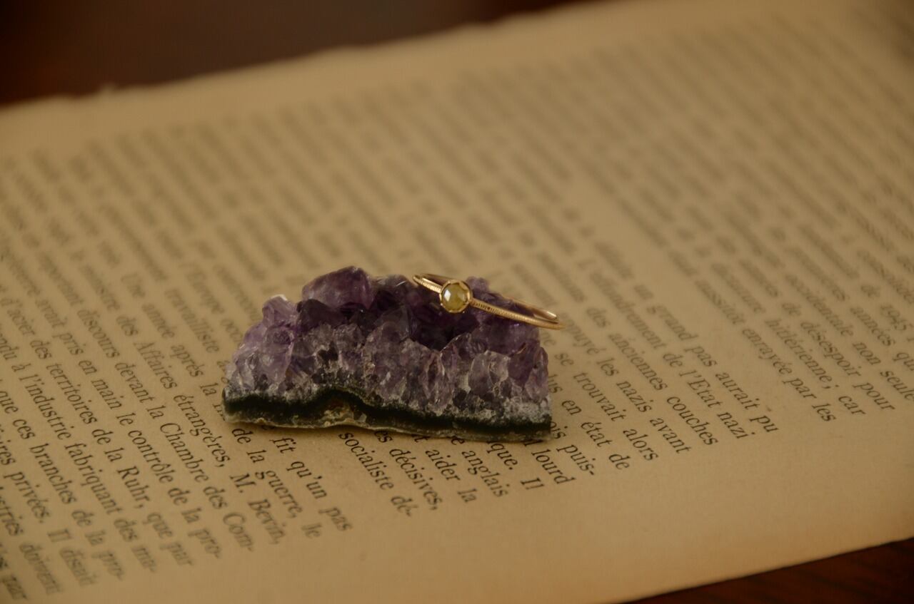 手に取ったのはイエローダイヤモンド、温かみのある色合いと雰囲気の中にダイヤモンドらしい輝きもあってそれらを楽しんでもらいたいと思い10金と合わせてみました。