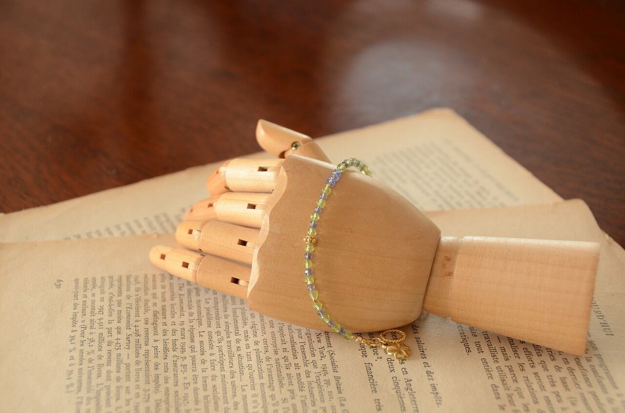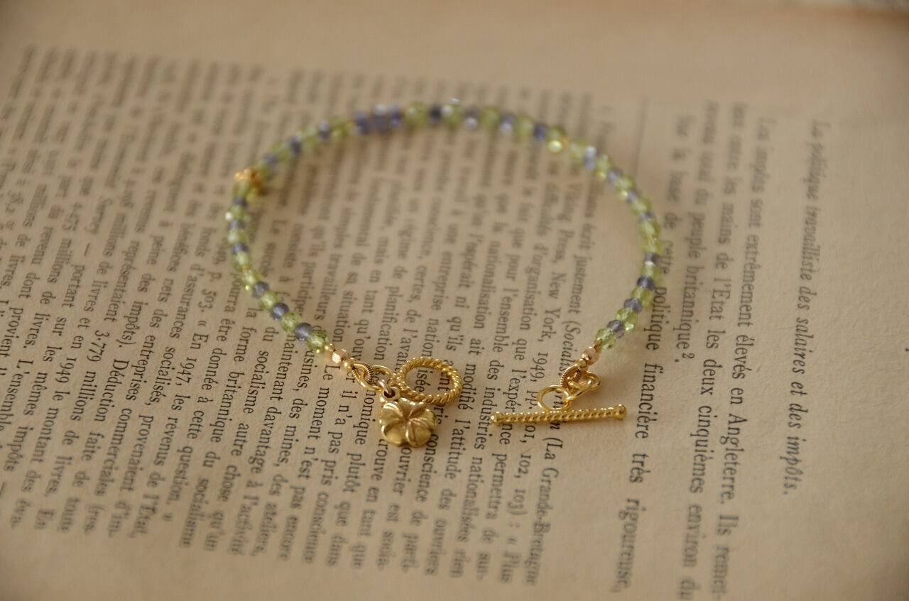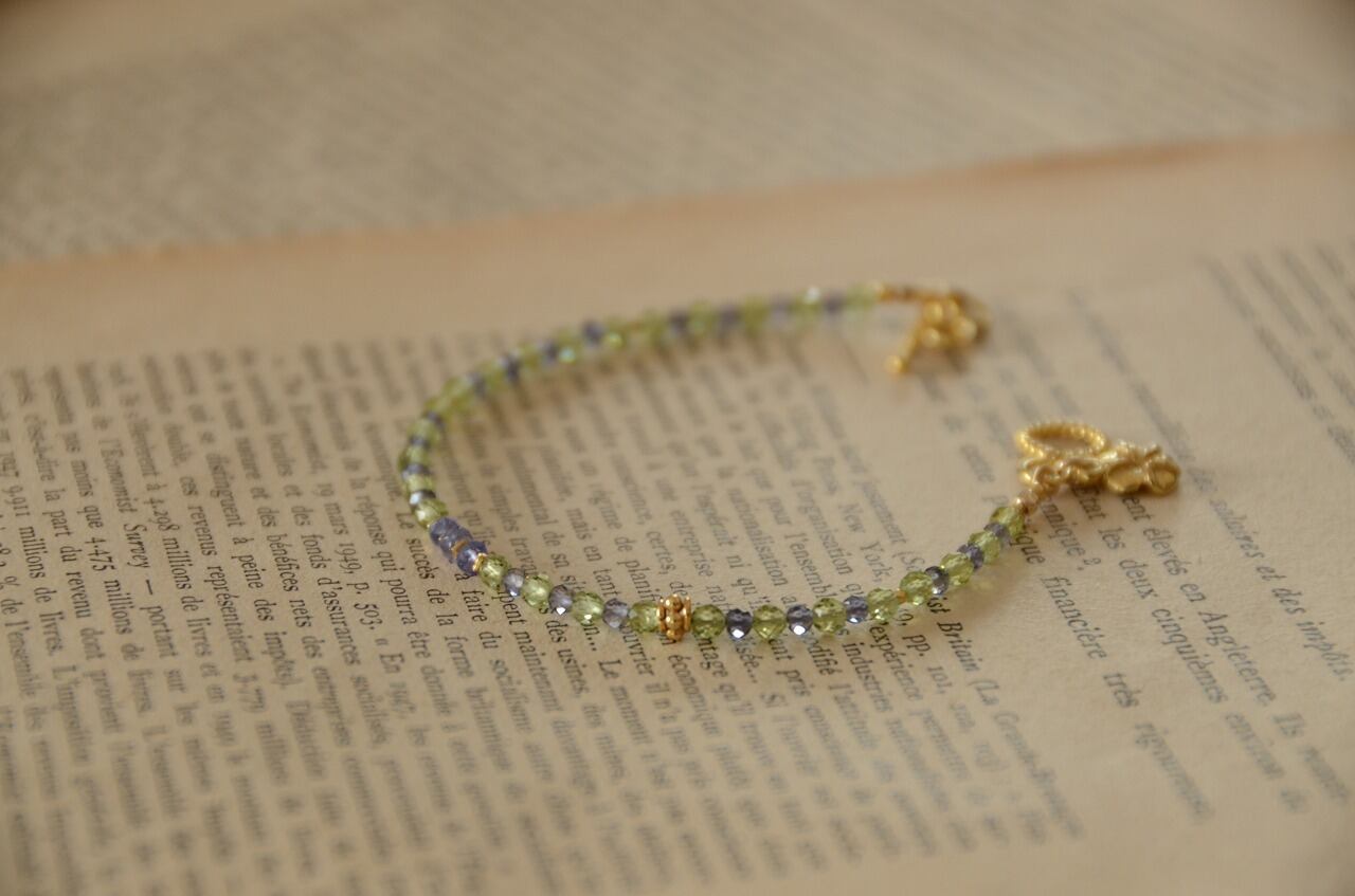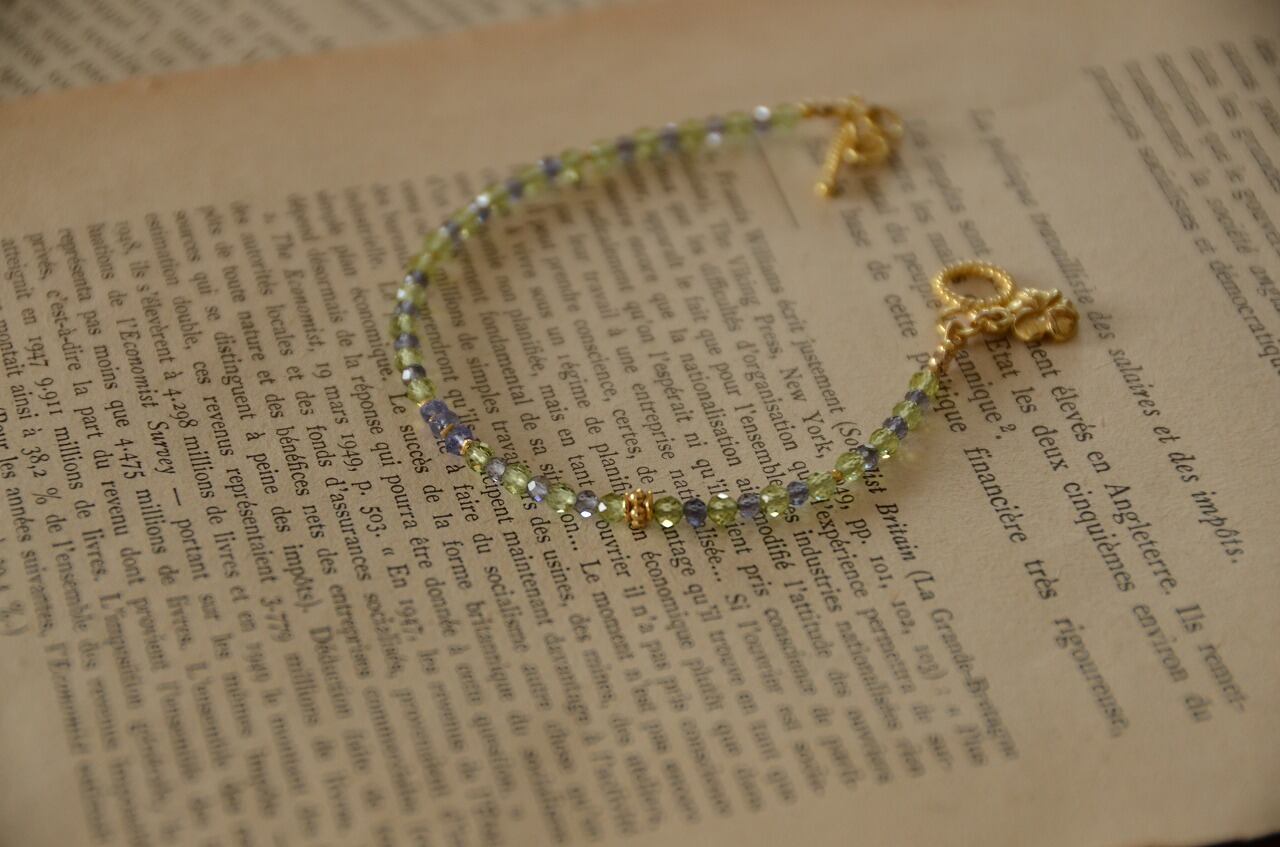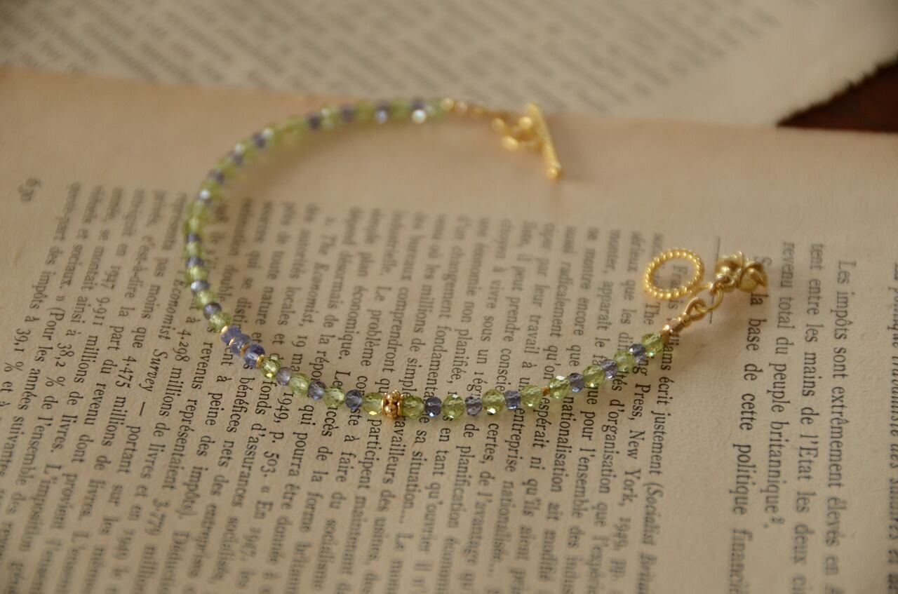 とっても美しいペリドットとアイオライトをメインに中心部にはタンザナイトを少しだけ混ぜて冬の散歩が少し楽しくなるようなそんな作品に仕上げることができたと思っております。