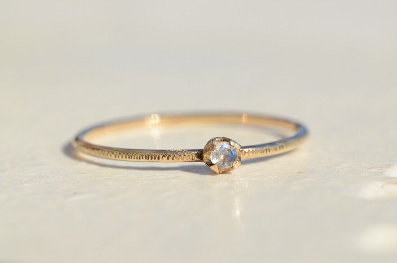 ずっとシルバーで制作を続けてきたブルームーンストーンの新たな一面をゴールドによって引き出すことができたと思っております。