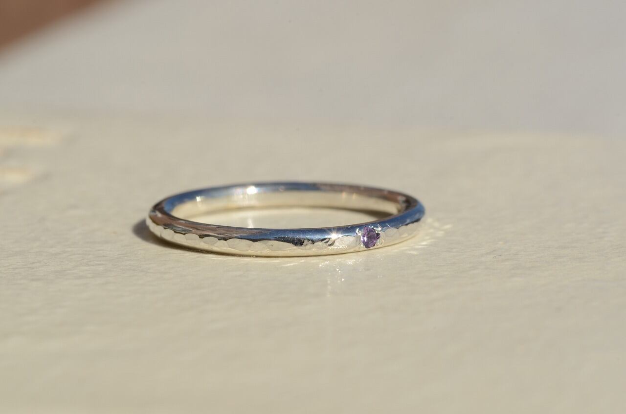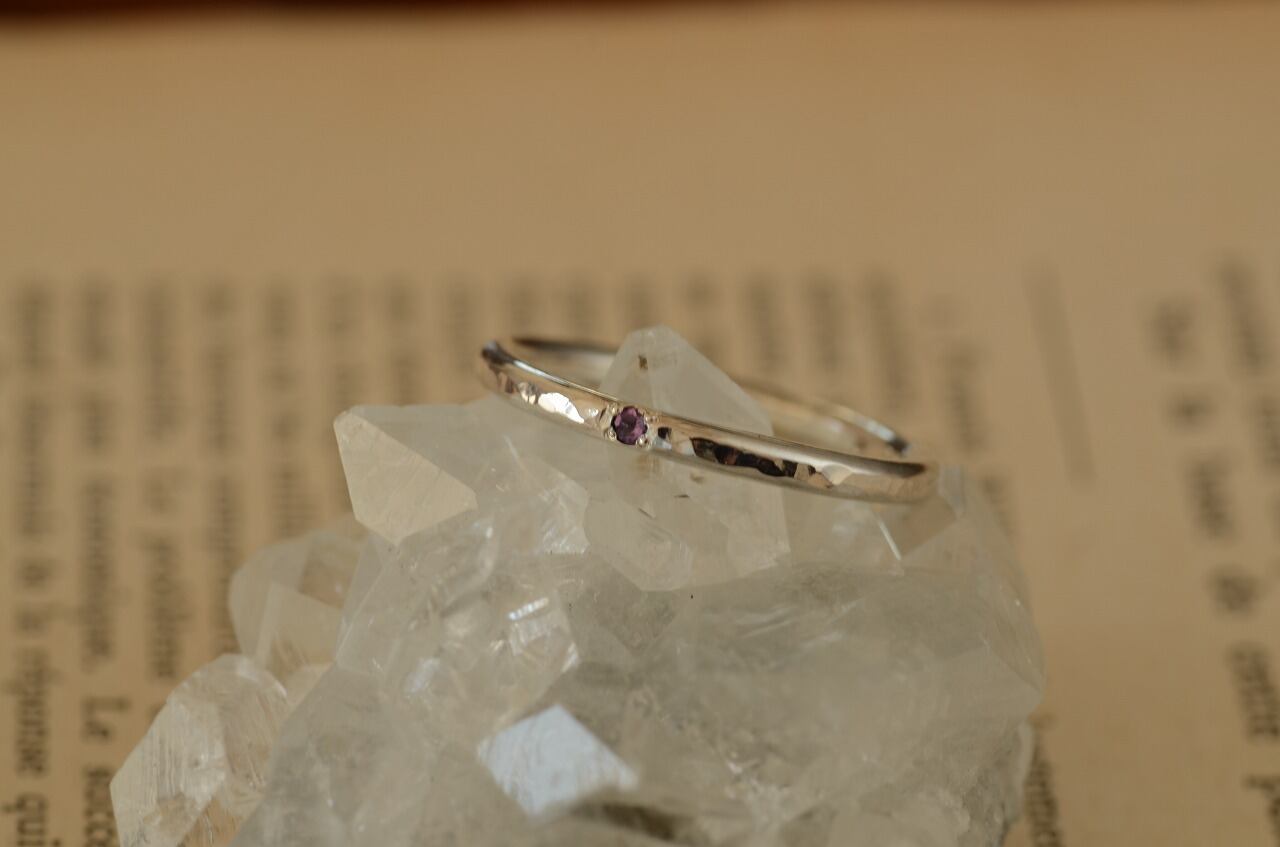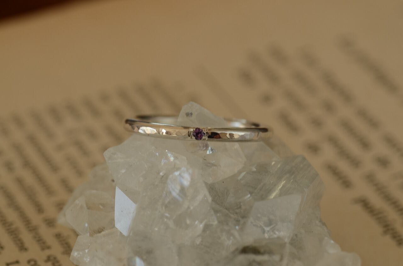 2月の誕生石であるアメジストはその透明な紫色の輝きが最大の特徴で、古来、エジプトやユダヤ教、キリスト教世界などで装飾品などに使われ、特にキリスト教世界では司教の石といわれ全員がこの指輪をはめていたといわれています。石の効力は調和と調整と統合の力がつよく、人の精神状態を安定の方向へ導き自分自身の内面的調和と統合だけでなく他人との調和をとるのにも大きな効力を発揮します。古くから「酔わない」と伝えれれていますが、酒に酔わないというよりも、感情の乱れに流されないという側面が強いような気がします。