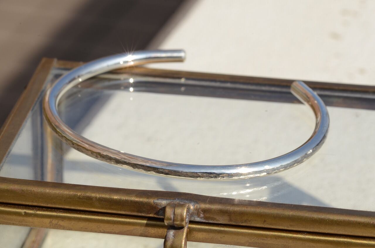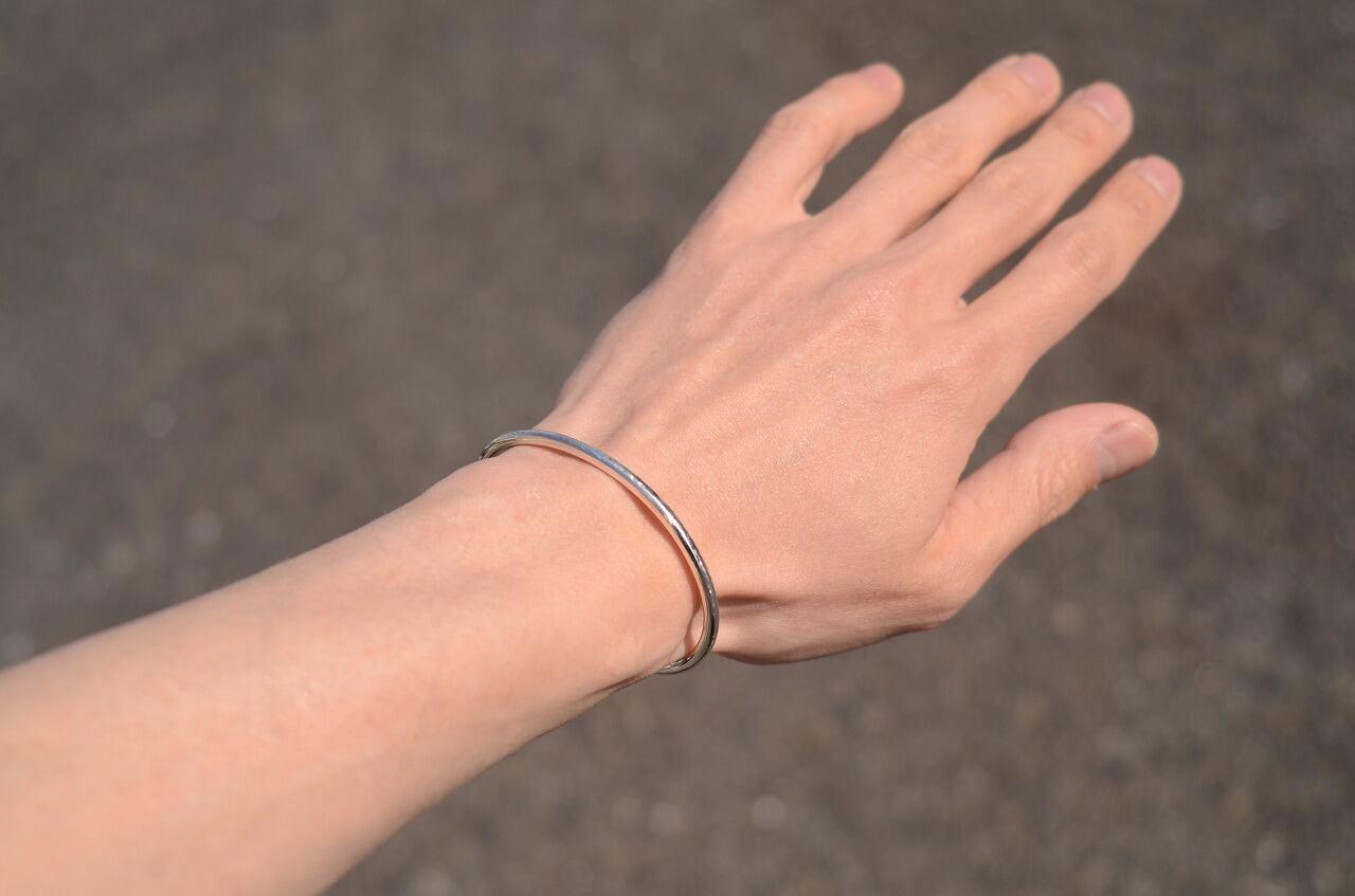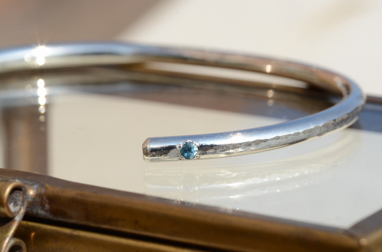 近頃金属に埋め込むように石を留めることが増えてきて今まで作ってきたバングルをベースに今回は丸みのあるバングルに石を留めてみました。