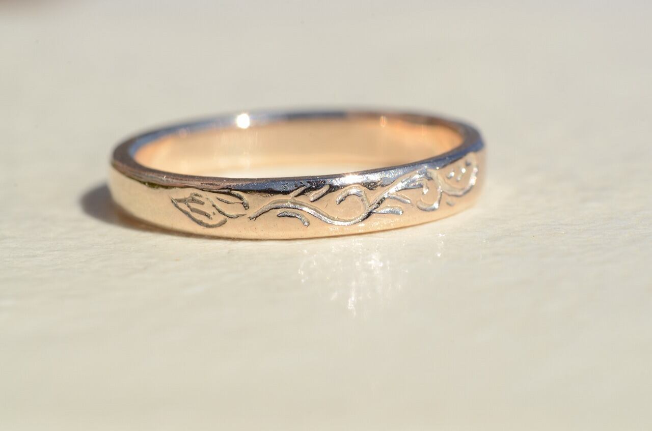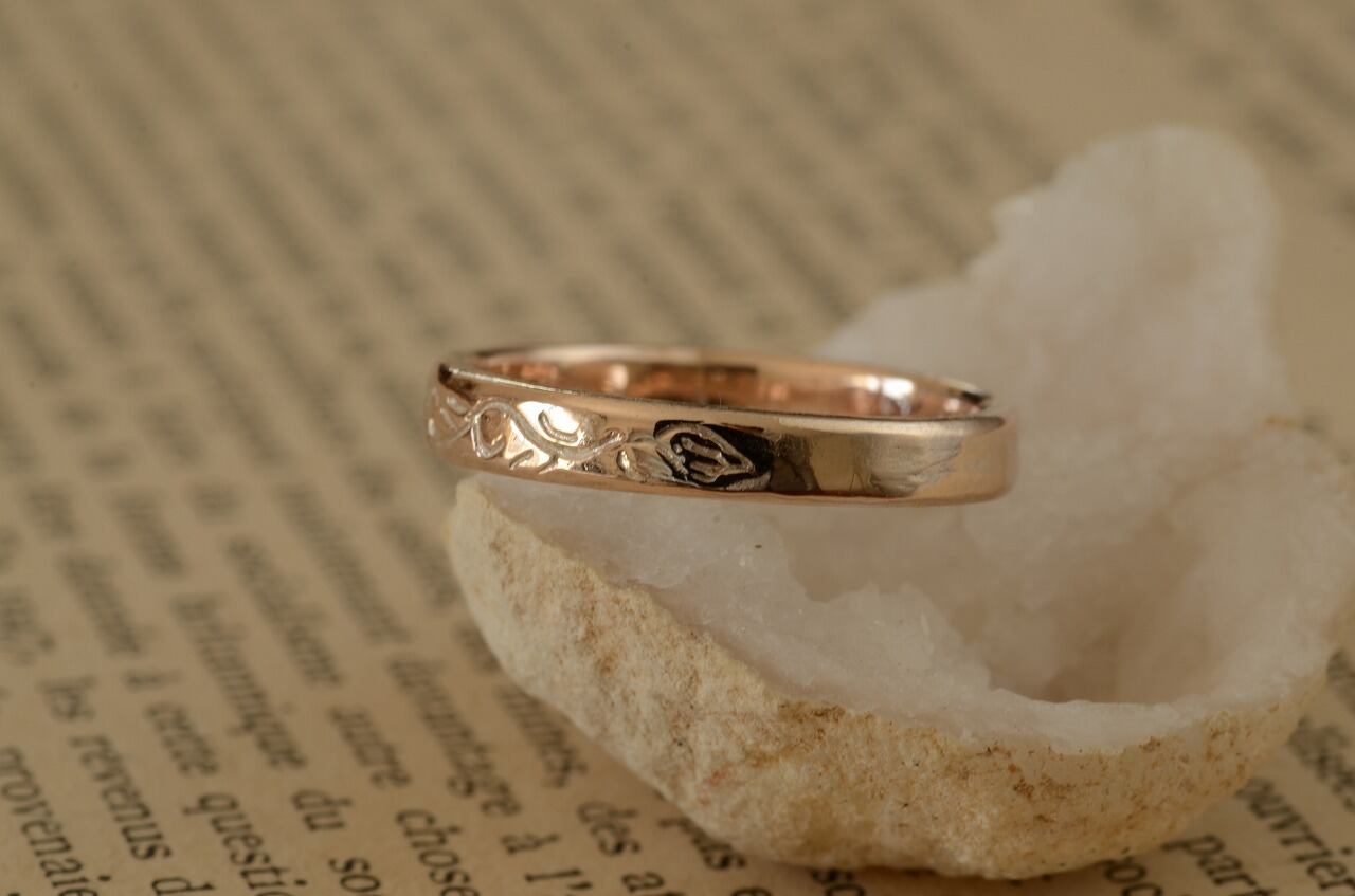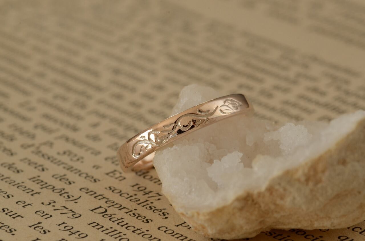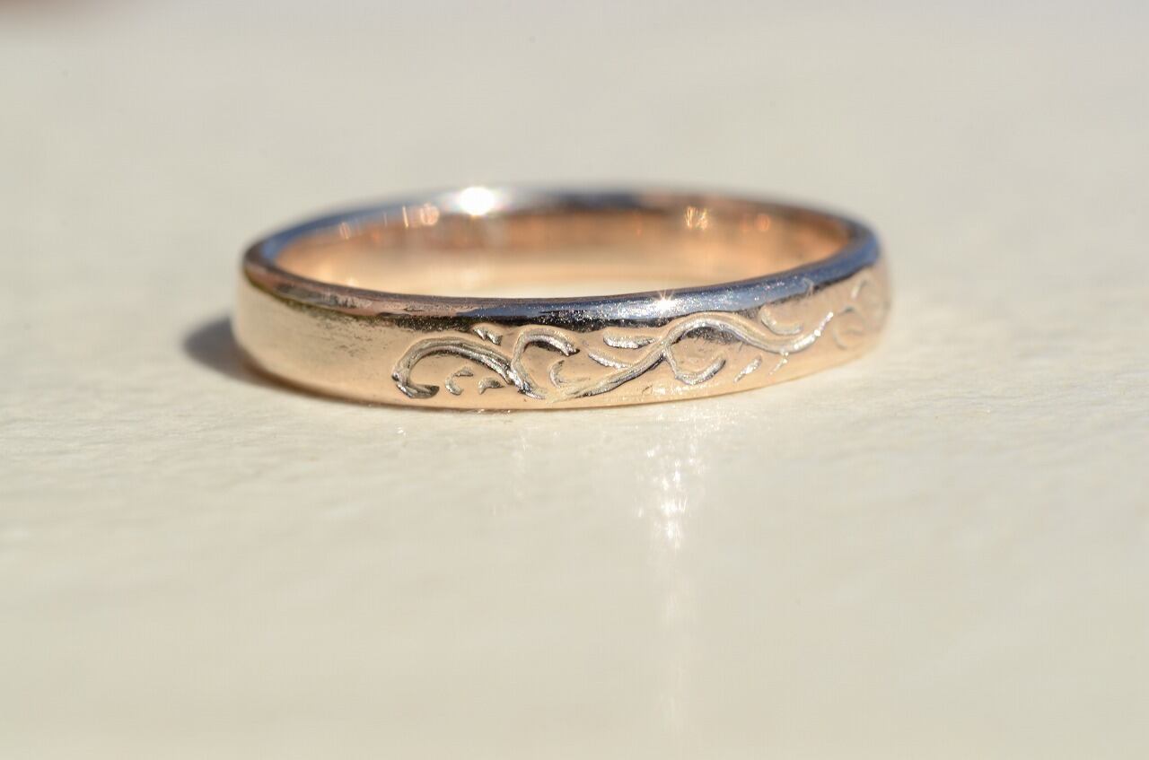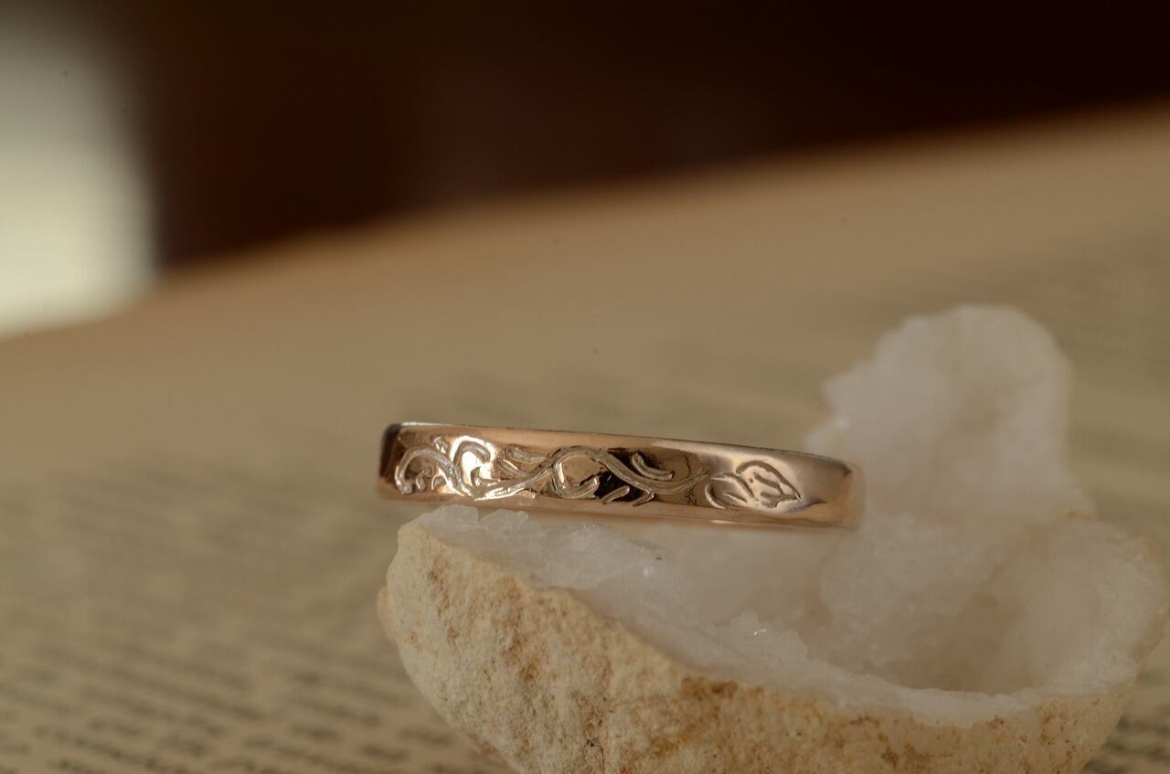 唐草自体はリングの1/4面にのみ彫ってあるシンプルなデザインです。