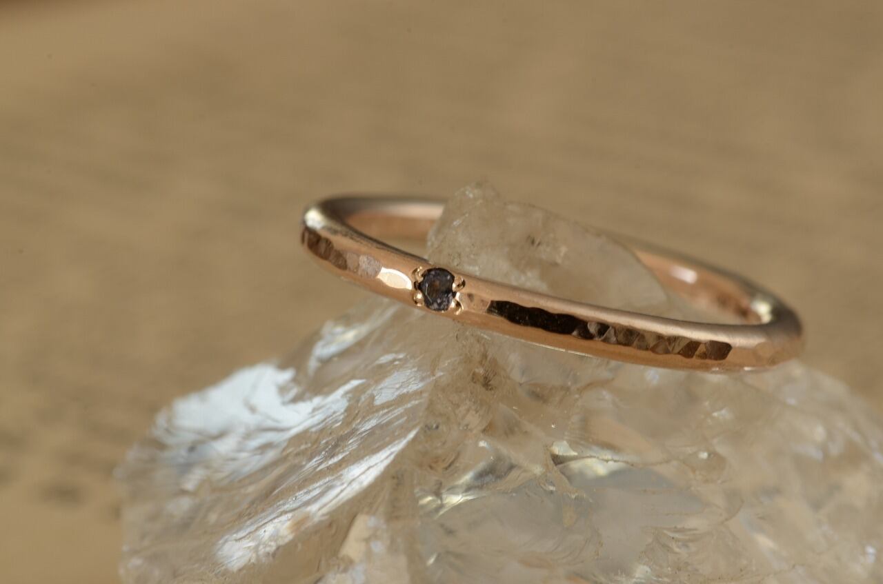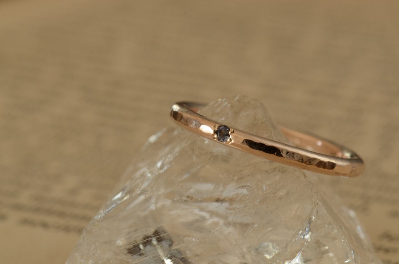 今までシルバー、真鍮と作ってきた作品シリーズですが今回は10金でも制作を行ってみました。シンプルであり肌なじみのいい美しい輝き、そこにタンザナイトの持つ美しくも幻想的な色を合わせて、場面を選ばず身につけられる作品に仕上げることができました。