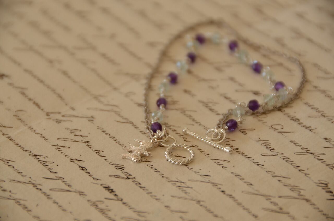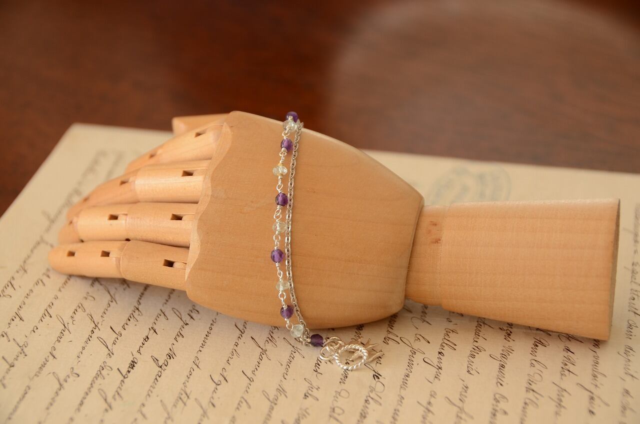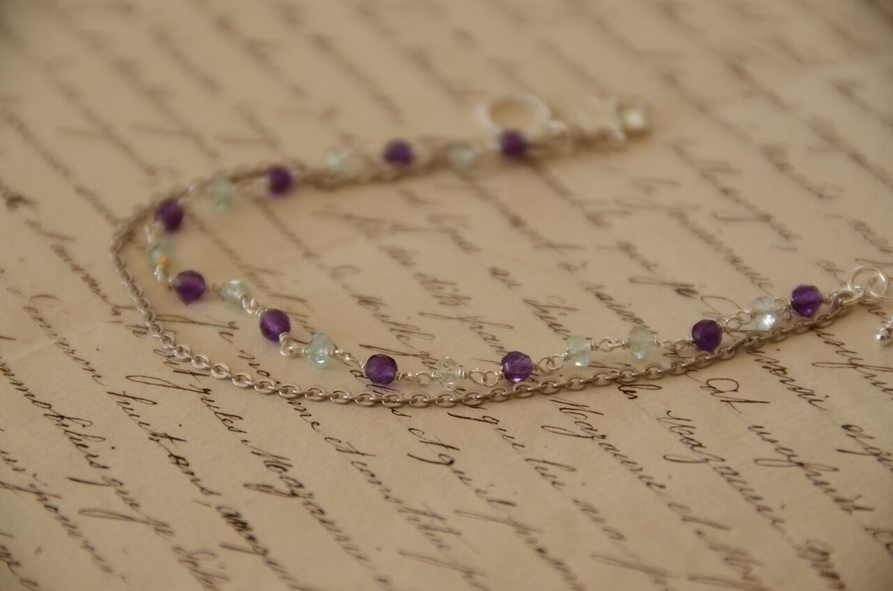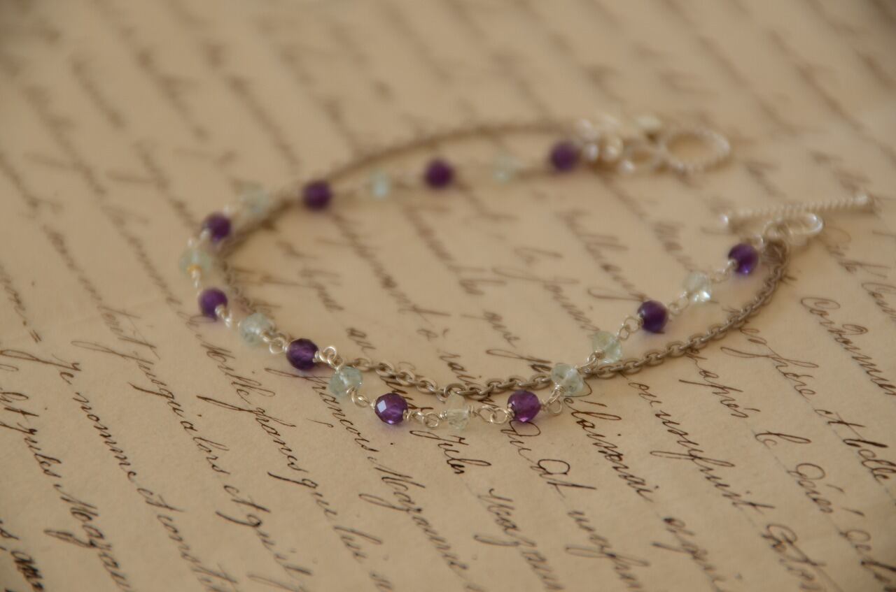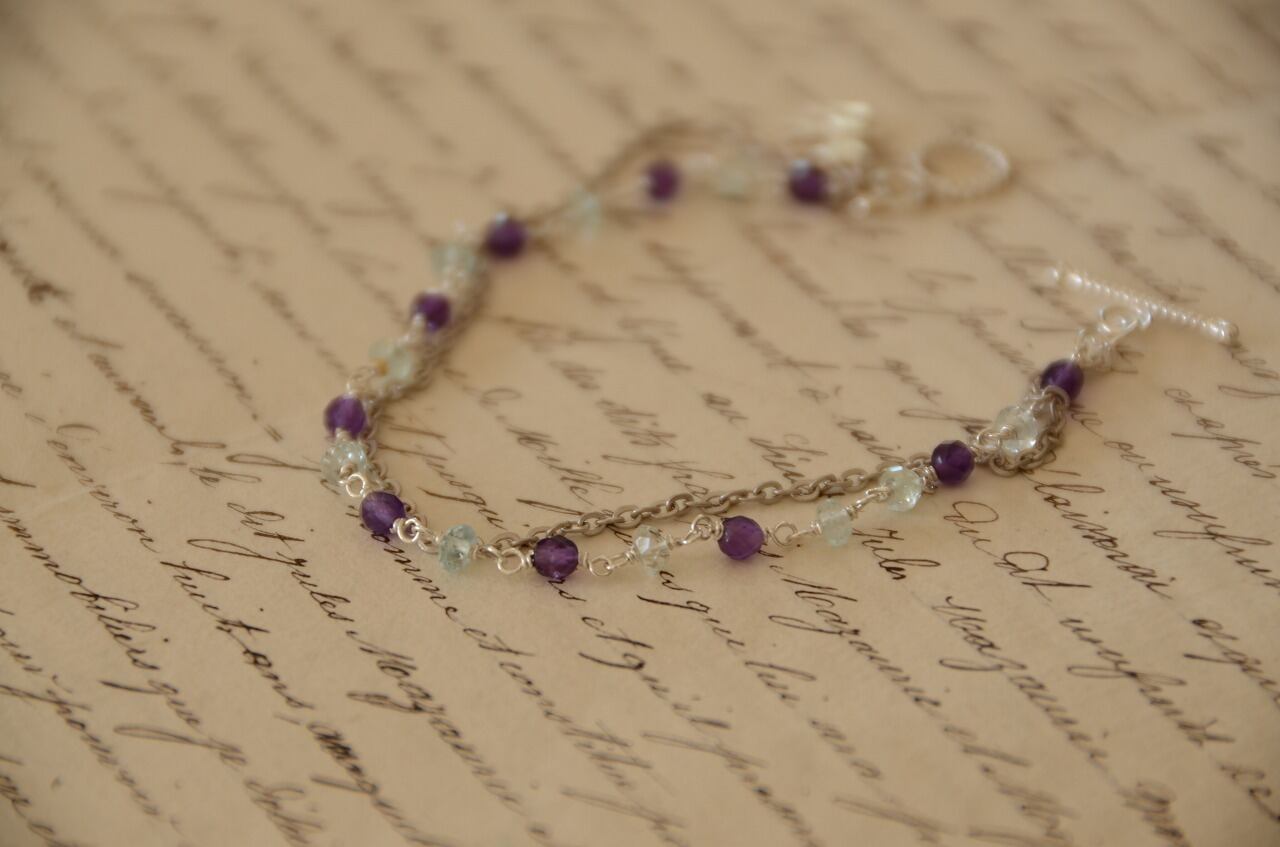 2月の誕生石であるアメジストはその透明な紫色の輝きが最大の特徴で、古来、エジプトやユダヤ教、キリスト教世界などで装飾品などに使われ、特にキリスト教世界では司教の石といわれ全員がこの指輪をはめていたといわれています。石の効力は調和と調整と統合の力がつよく、人の精神状態を安定の方向へ導き自分自身の内面的調和と統合だけでなく他人との調和をとるのにも大きな効力を発揮します。古くから「酔わない」と伝えれれていますが、酒に酔わないというよりも、感情の乱れに流されないという側面が強いような気がします。