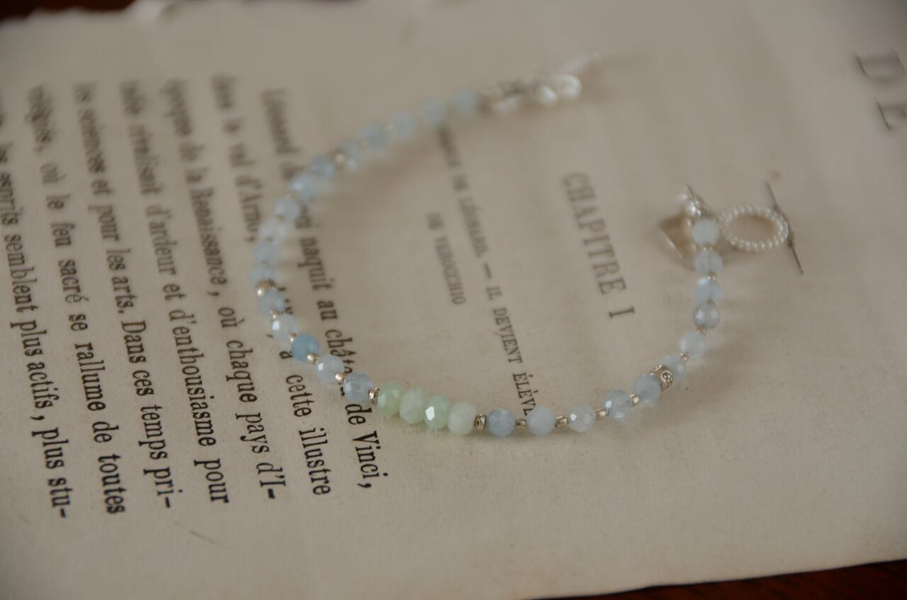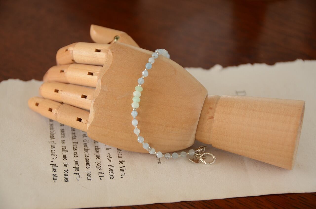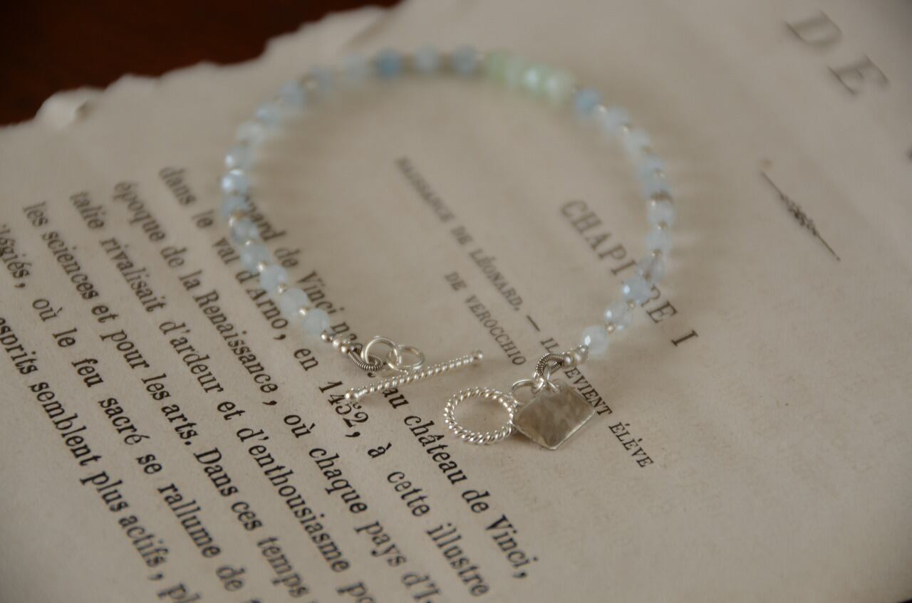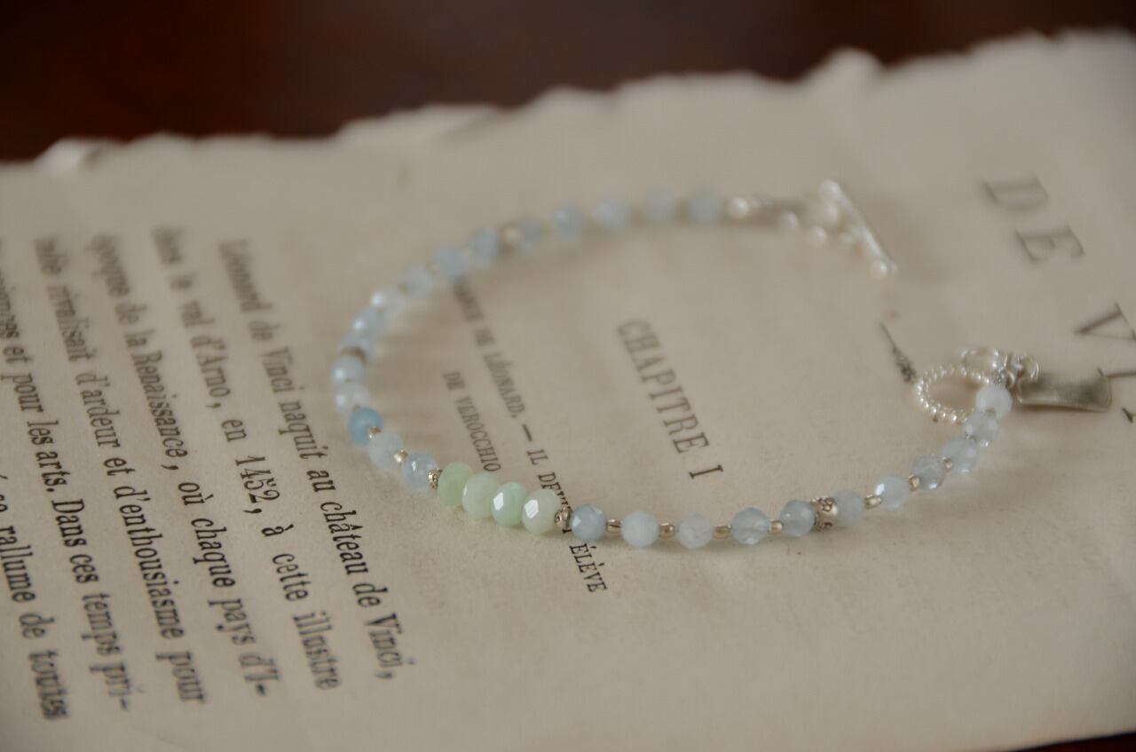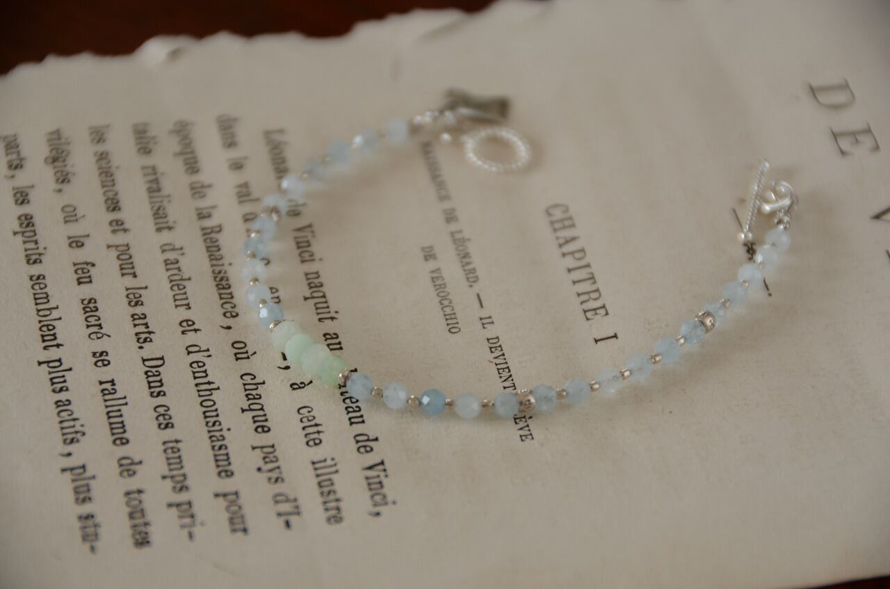 今回は不透明ながらもとっても優しい気持ちにさせてくれるアクアマリンとグリーンオパールの二つの石を使って制作を行いました、シルバーのパーツを使い少しひんやりとした雰囲気を感じながらも、石たちのおかげで温もりも感じられるそんな作品に仕上がったと思っております。