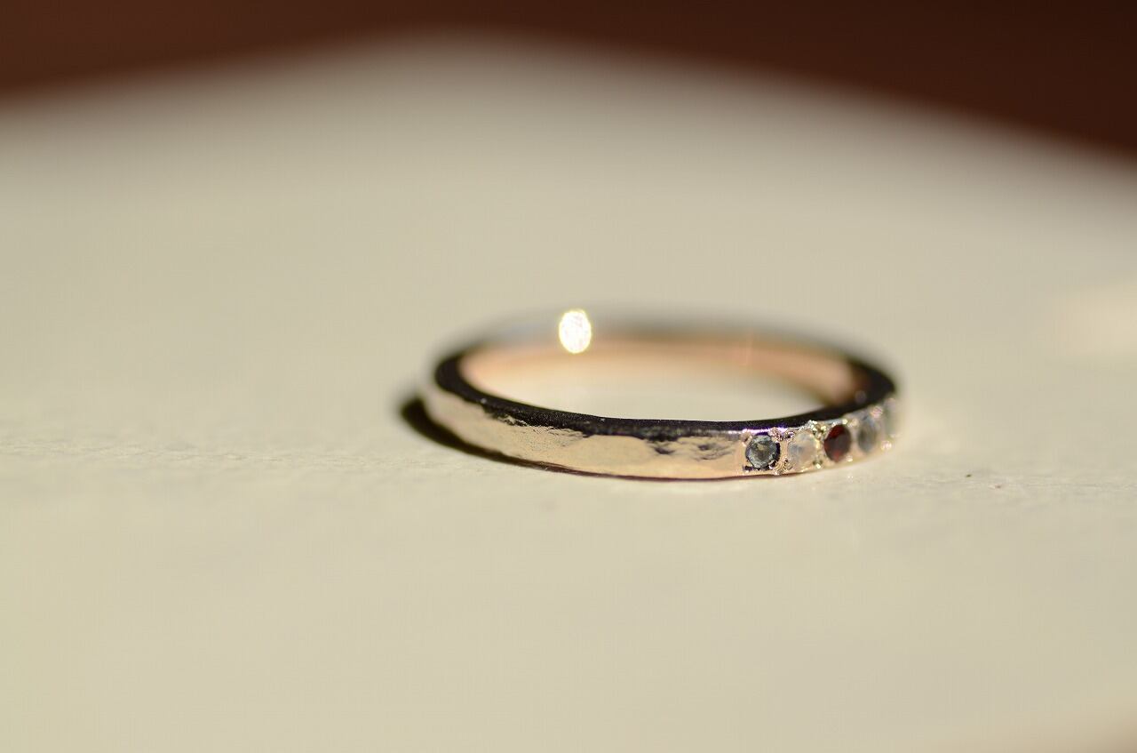 ゴールドで作るとまた雰囲気が違って、気品のようなものを感じやすいとおもったので今回は3種類の石で制作を行いました。