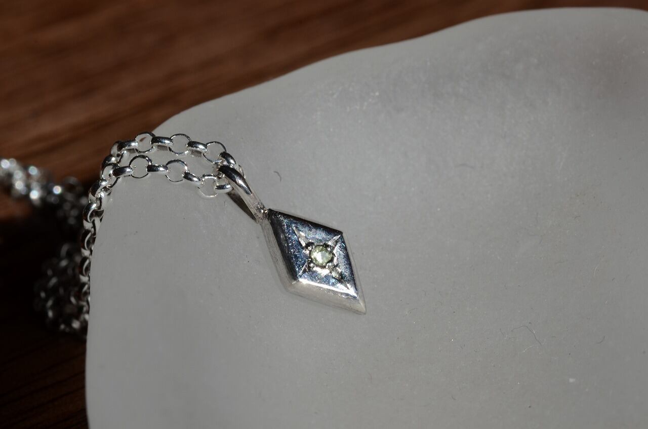 シルバーで制作を行い、一粒留める石は新緑色の美しいペリドット