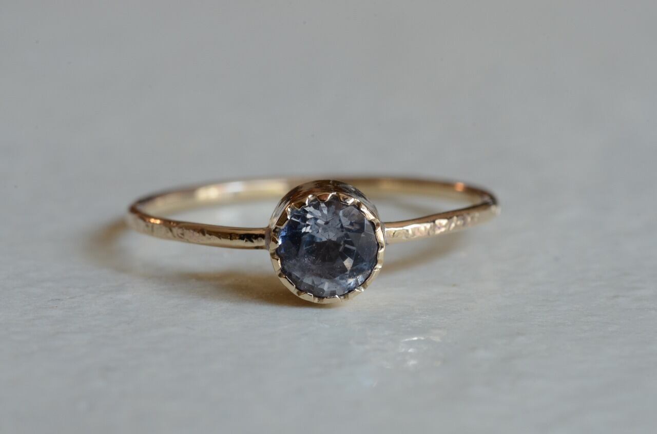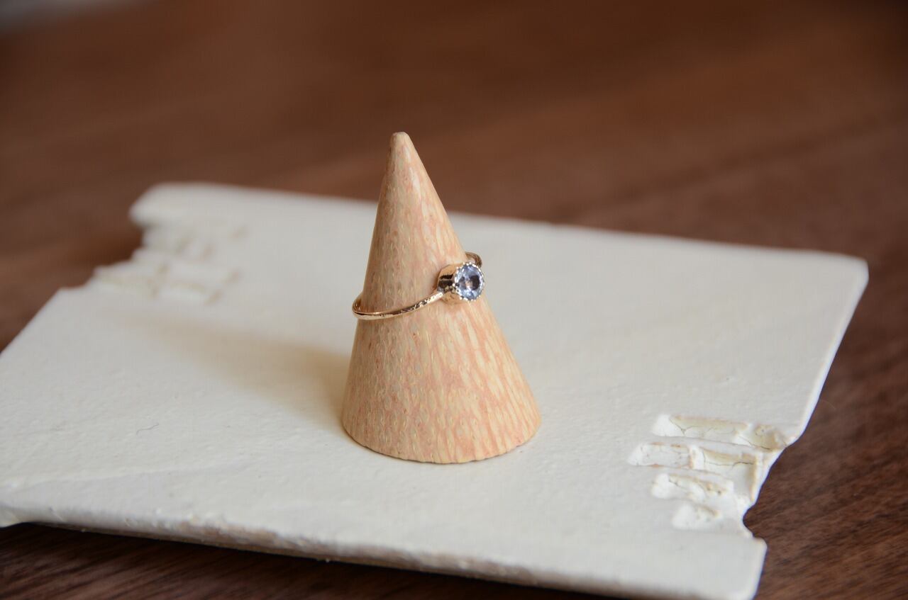 美しいスピネルの輝きと10金の組み合わせ、リング部分の仕上げは落ち着いた感じに仕上げて