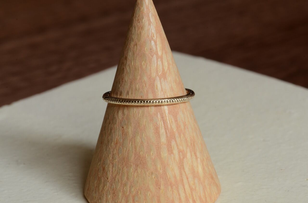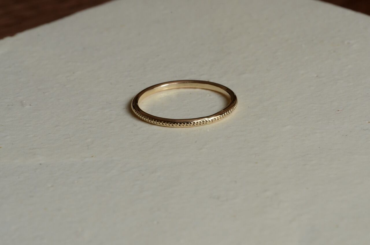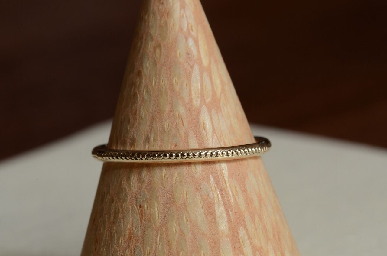 今回は「千の光の物語・III」よりほんの少し太めのリングに『ミル打ち』加工をリングの全周に行っております