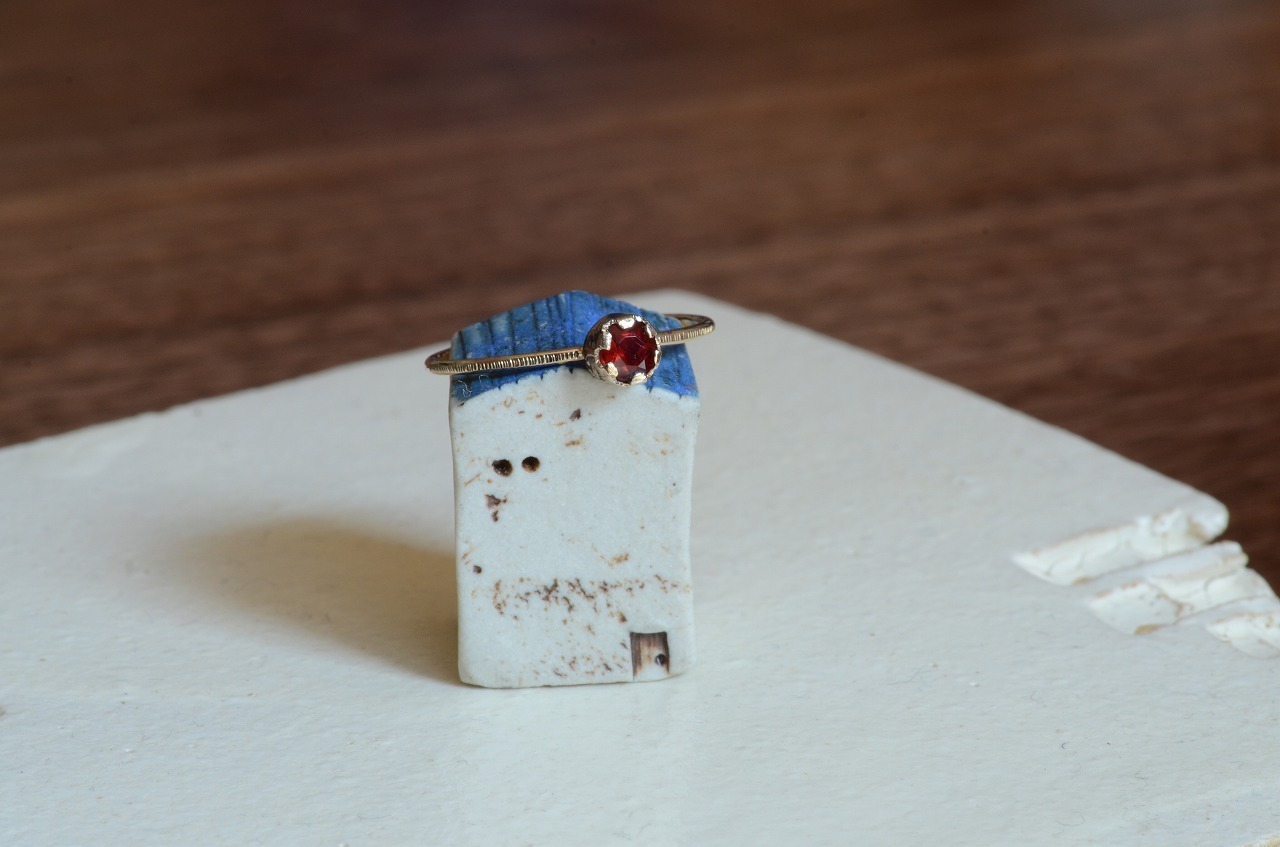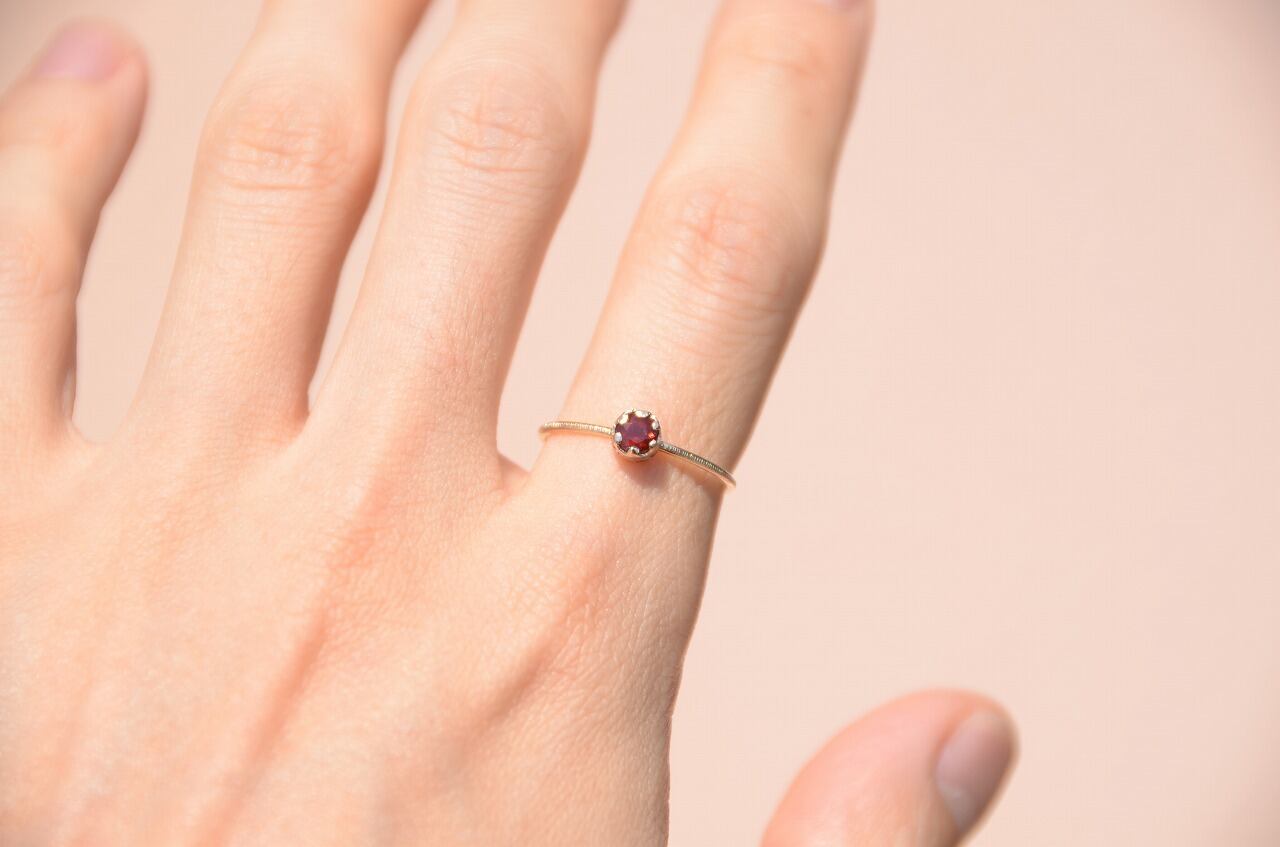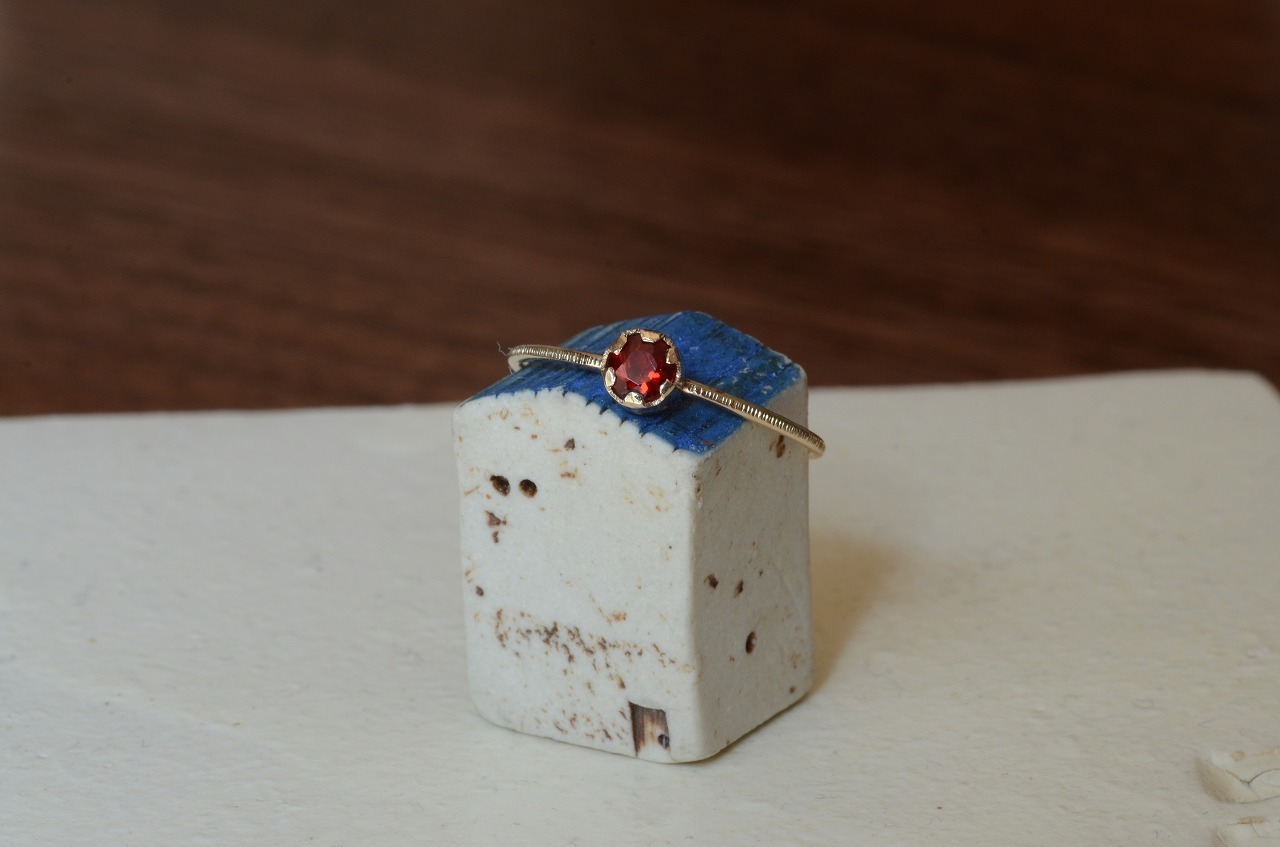 美しい真紅のアンデシンと今回はゴールドの組み合わせさりげない大きさでありながらしっかりとした存在感も感じられる気品ある作品に仕上げることができたと思っております。