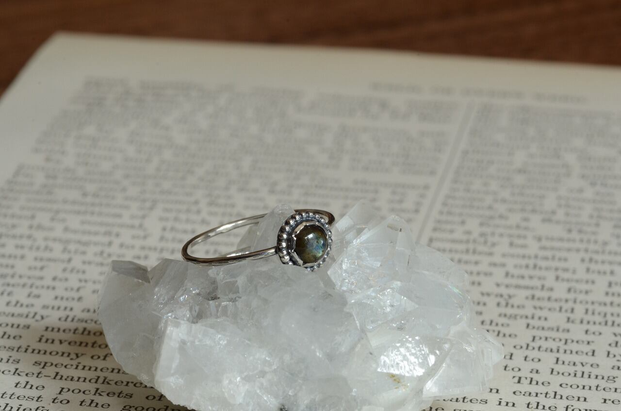 1770年にカナダのラブラトル沿岸のセントポール島で発見されたこの石は結晶の面に平行にいくつもの層が並んでいることで光の分解が生じてまるで虹のような光の模様を生み出す非常に美しい石です。その神秘的な輝きから宇宙の叡智を秘めた石といわれ、想像力を高めたりインスピレーションを高める効果があります。また、前世の記憶にアクセスしてその人本来が持つ潜在的な問題点を浮き彫りにするという一面もあるようです。