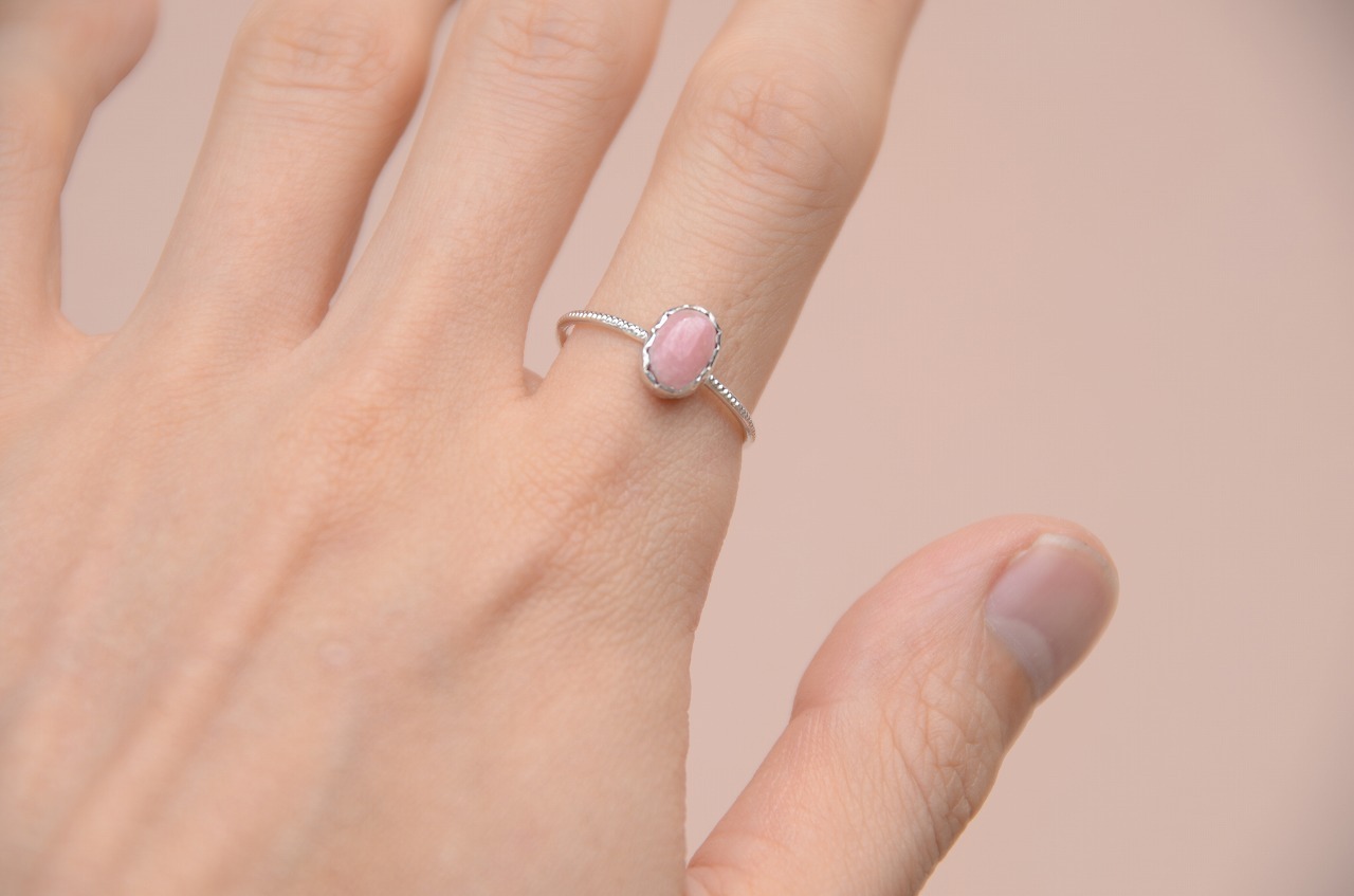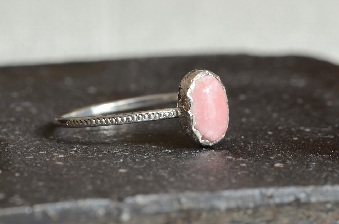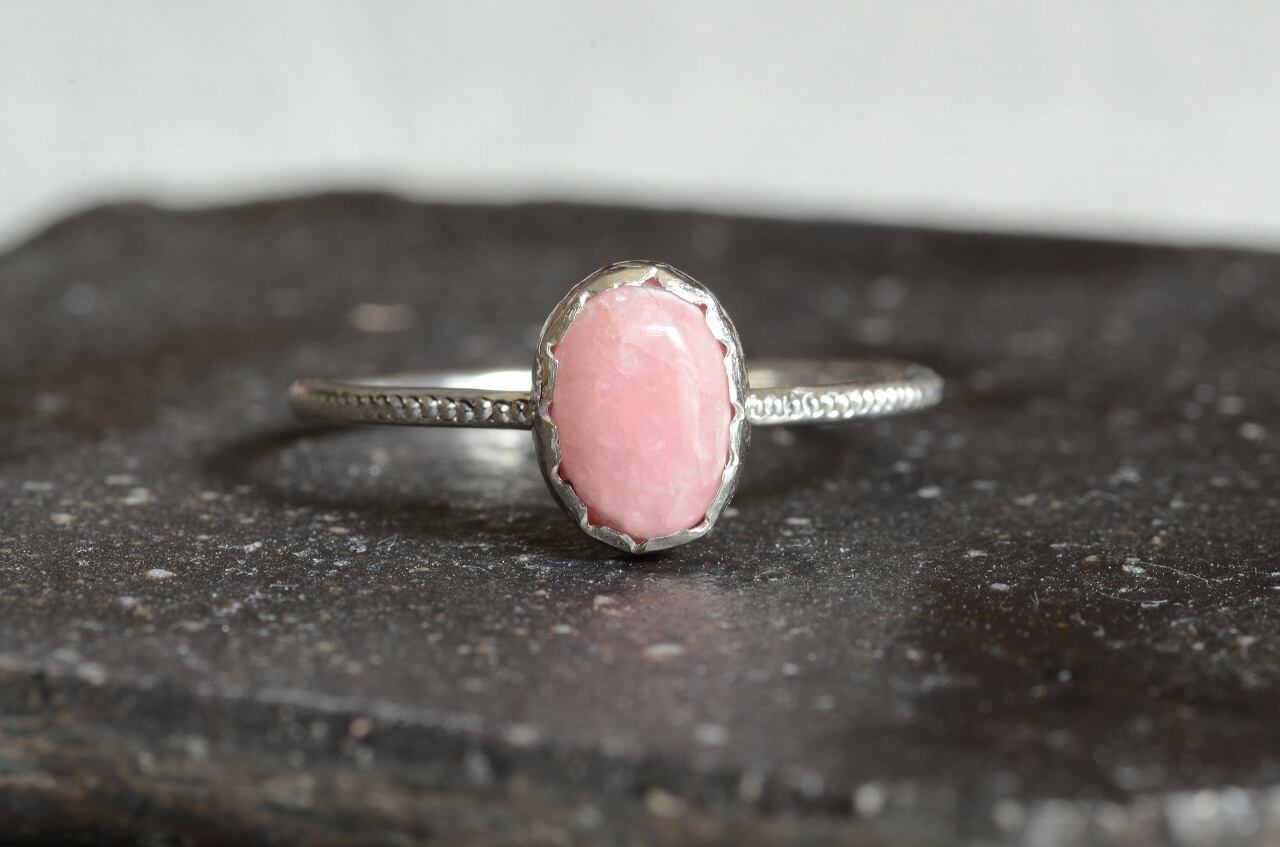 今回は人気の石である薔薇色のインカローズを使ってリングの制作を行いました。