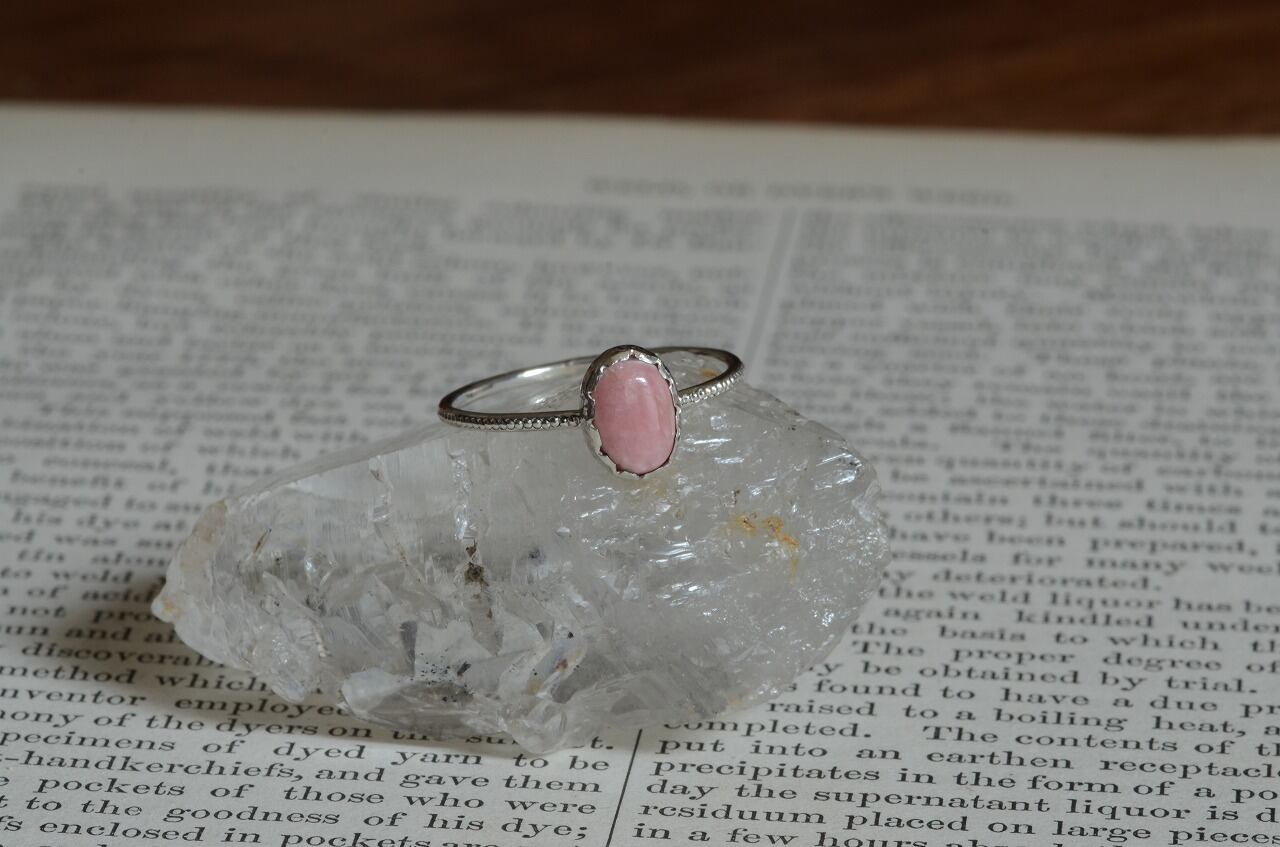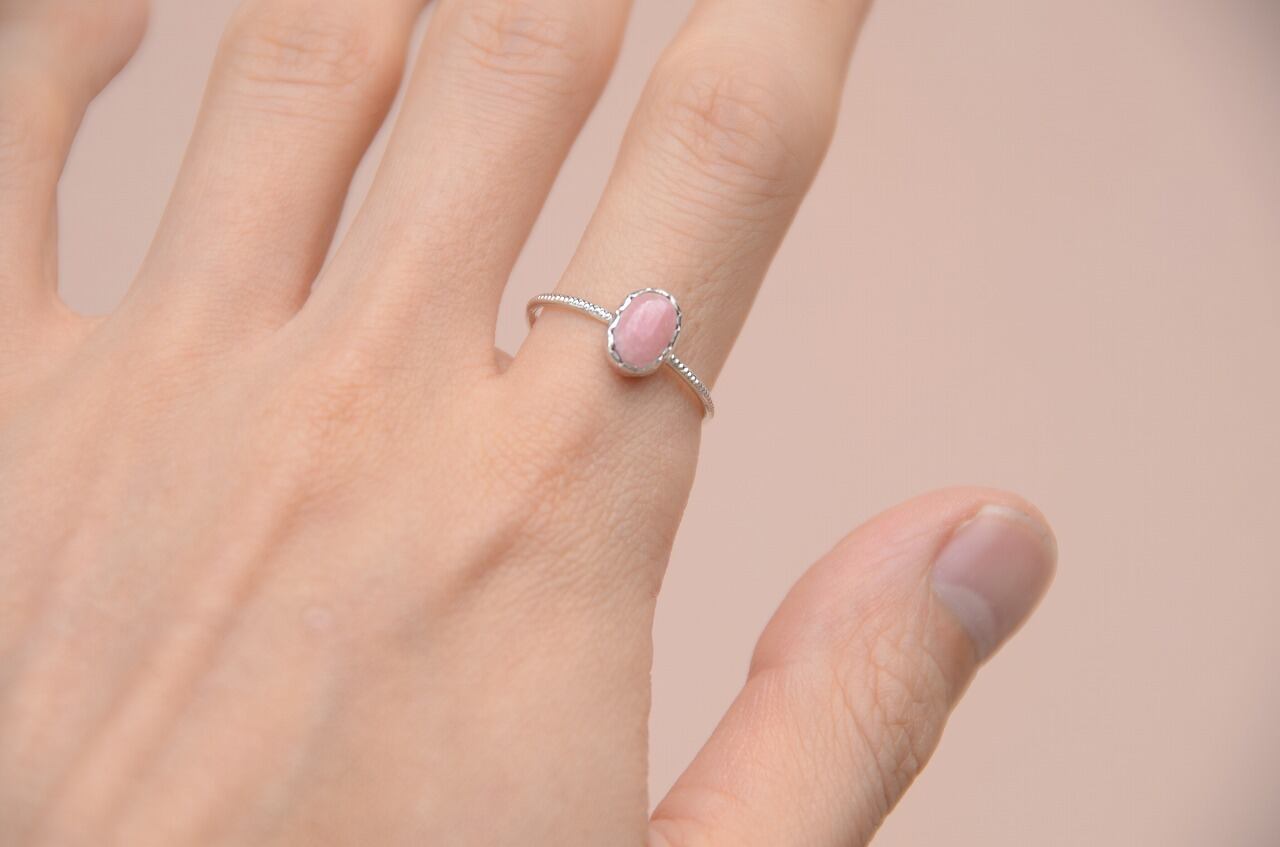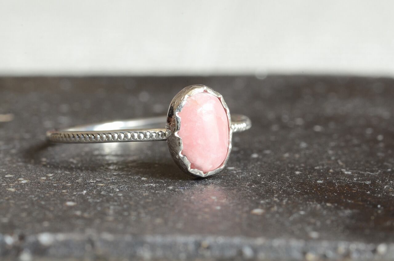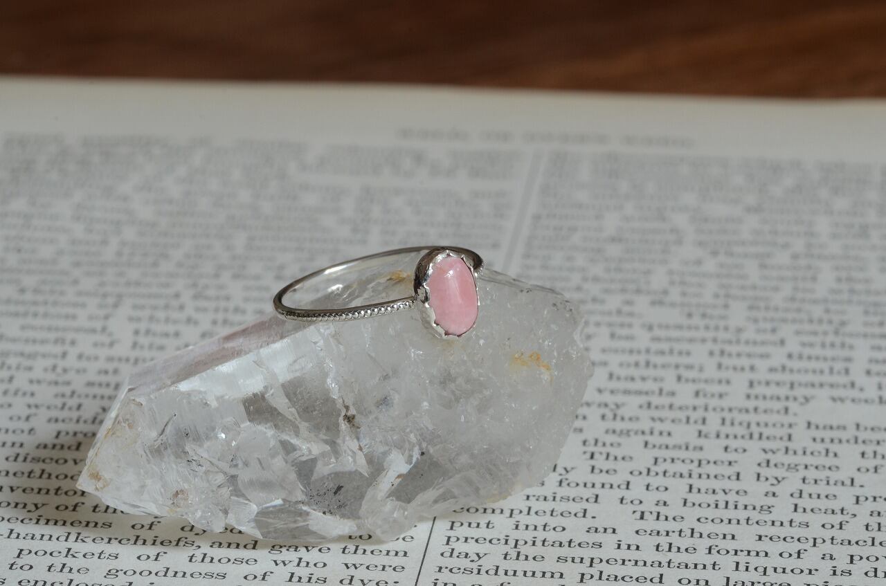 今回は人気の石である薔薇色のインカローズを使ってリングの制作を行いました。