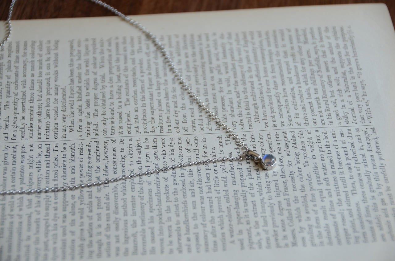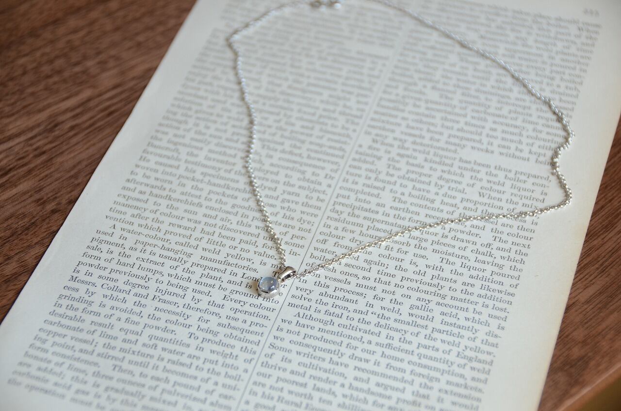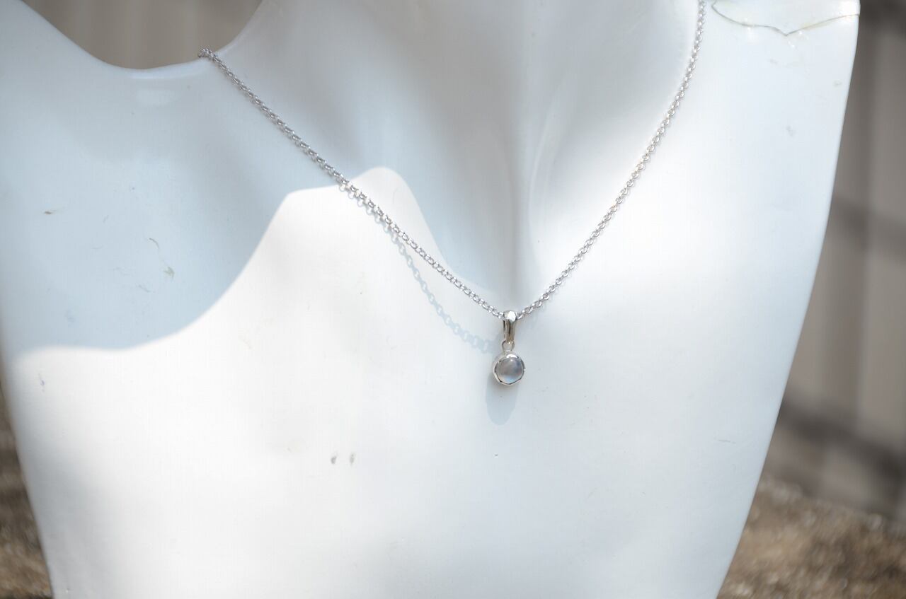 今回のMilky Wayは優しい光の色が素敵なレインボームーンストーンを使って制作を行いました。シンプルなカボションカットの石をさらにシンプルにシルバーで留めてみました。