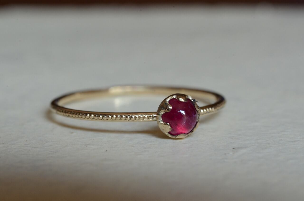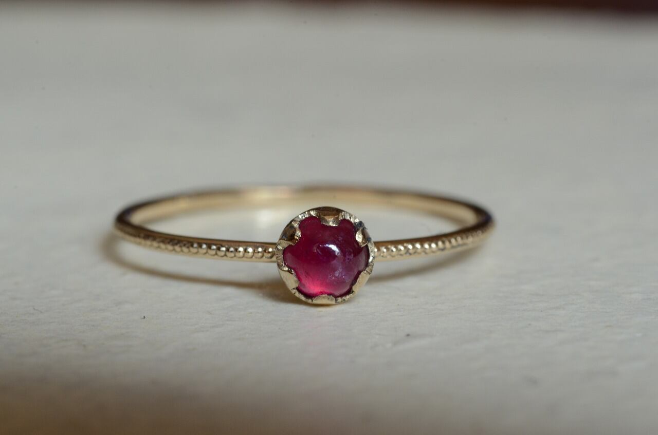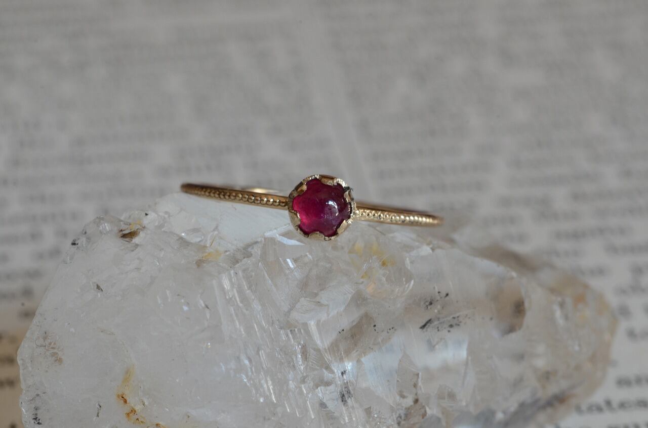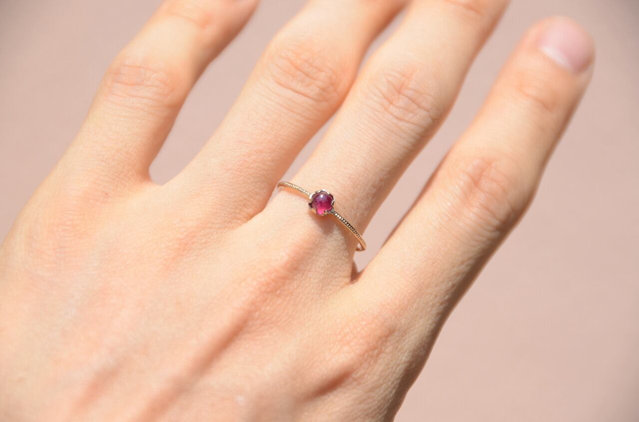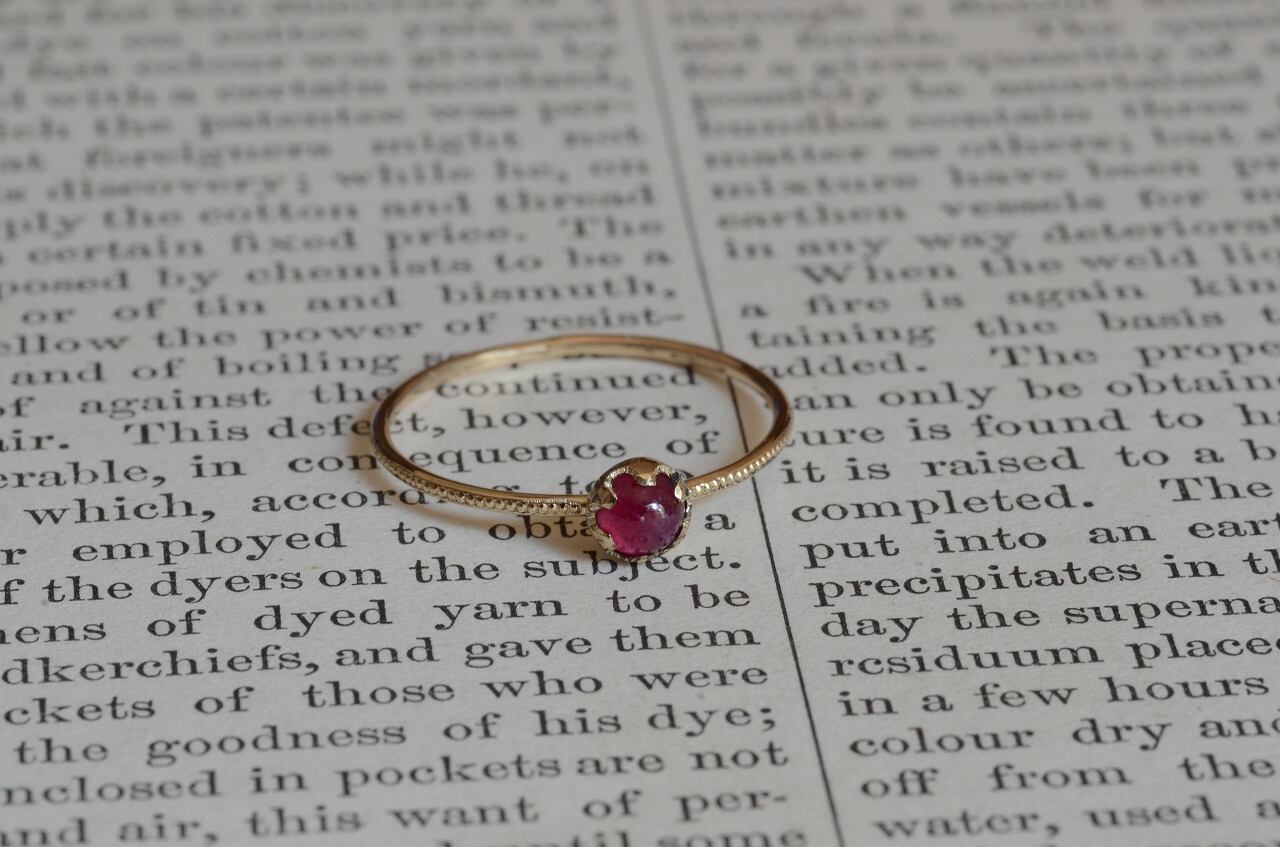今回はツルンとしたカボションカットのルビーとK10の組み合わせミルを打ったK10のリングおかげで少し華やかな印象を与えてくれるリングに仕上がったと思います。