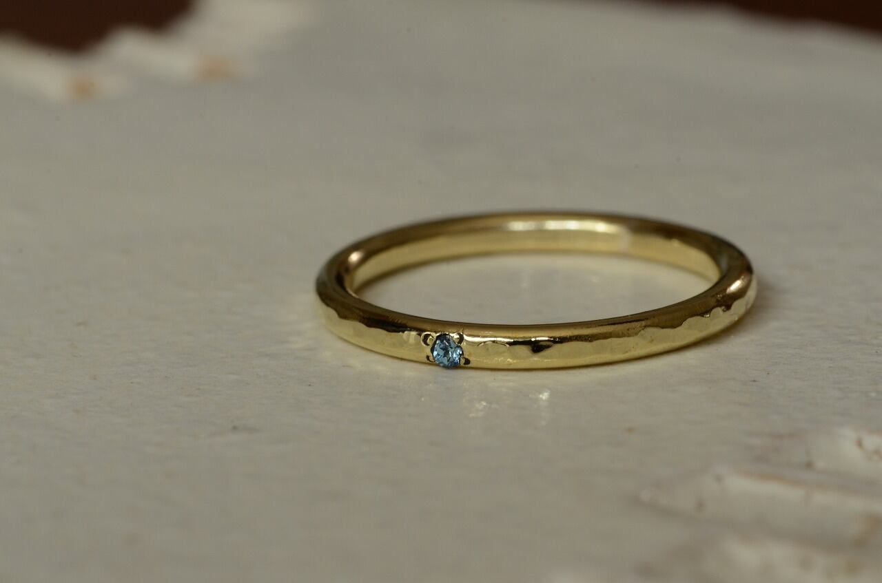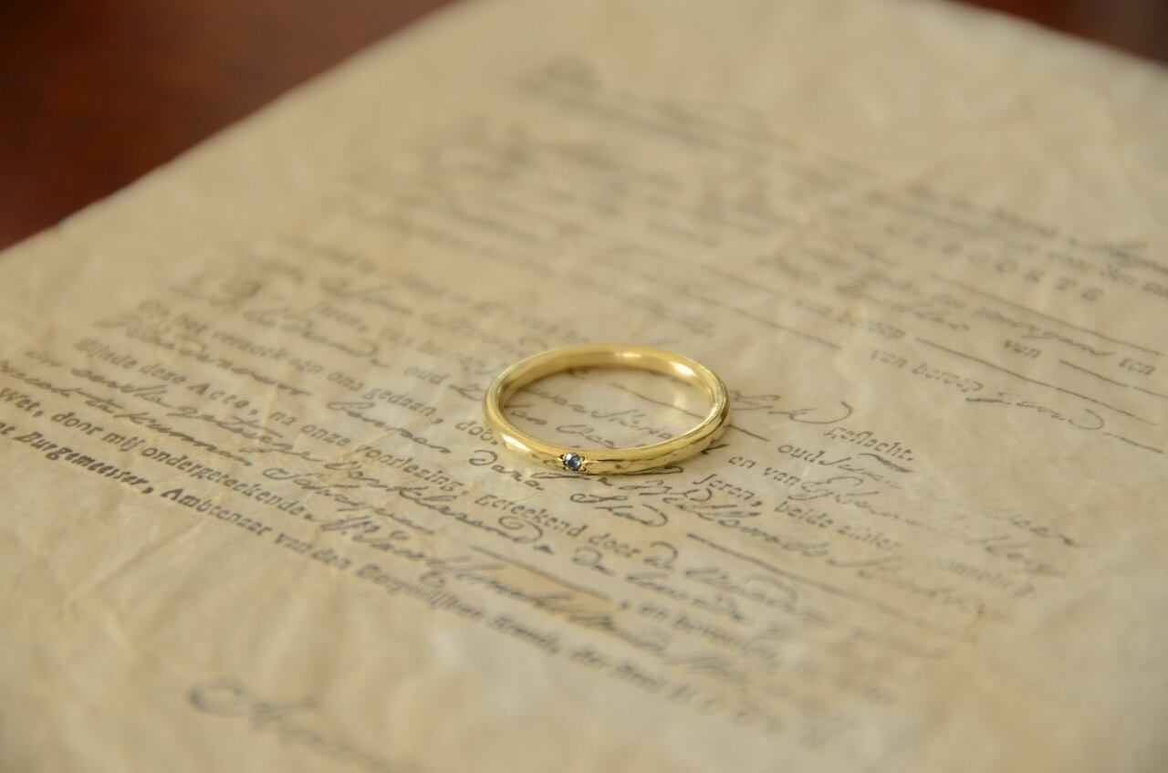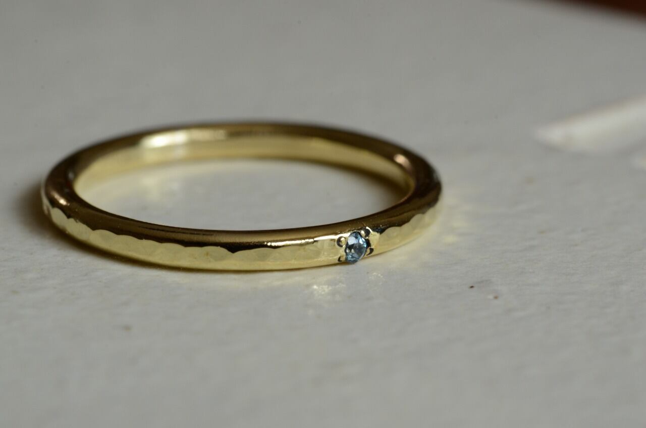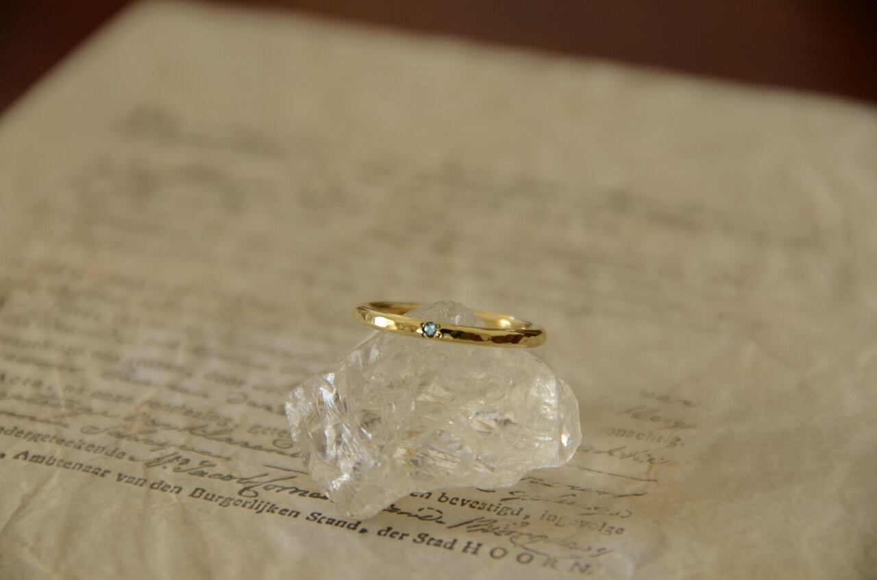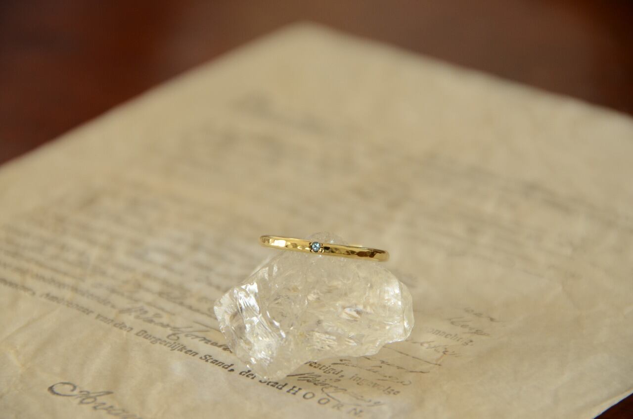 真鍮のリングで制作を行っている古き日々の物語を今回はブルートパーズで制作してみました。古いものを表現するのに最適な真鍮をつかい、ヨーロッパの旧市街から見るヨーロッパの空という作品テーマでこのリングを制作いたしました。