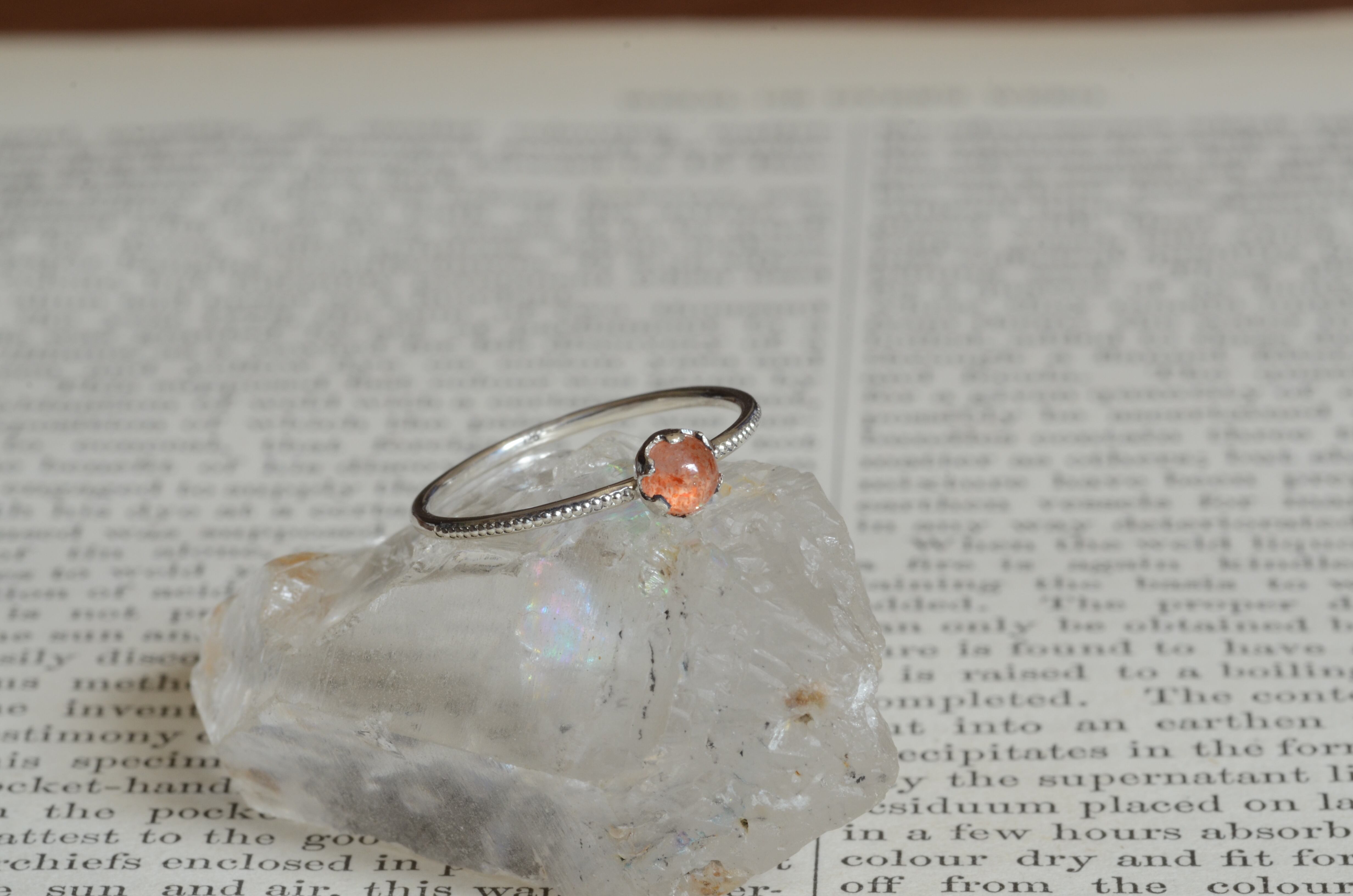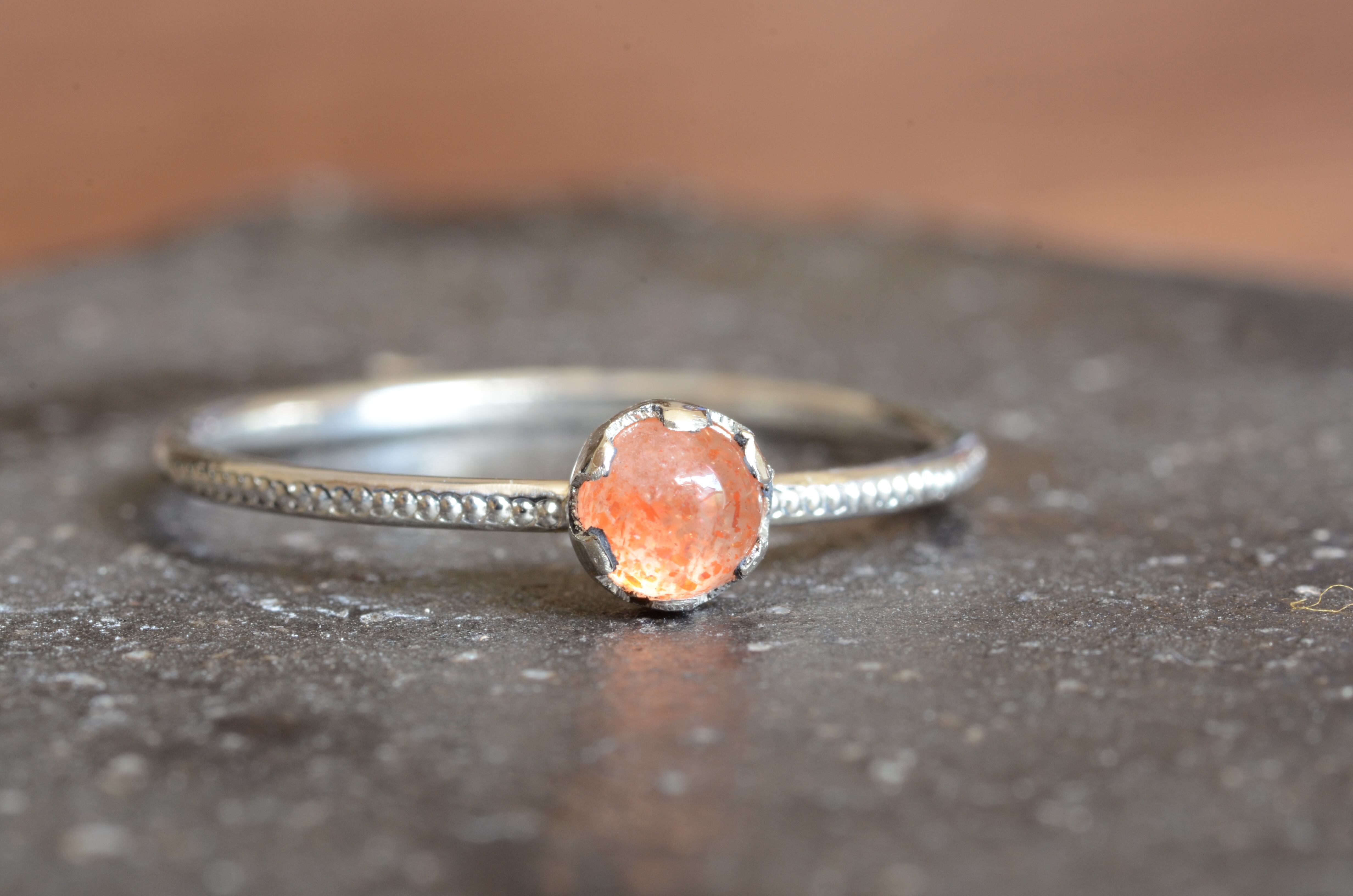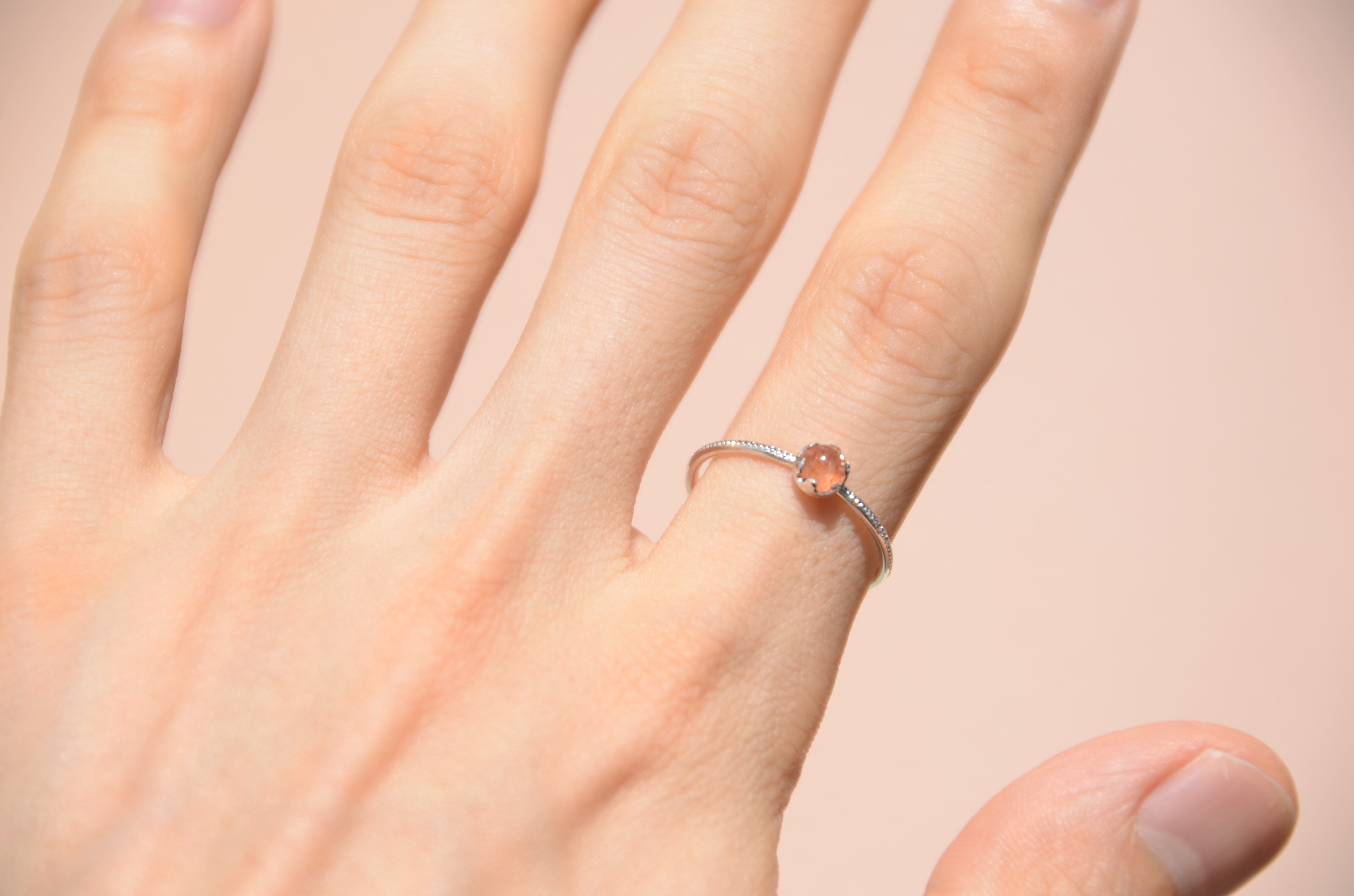 明るい色のサンストーンとシルバーの組み合わせは抜群の相性で私としてもとても気に入っております!リングにミル打ちを施すことでキラキラとした輝きをより楽しめるそんな作品に仕上げることができたと思っております。