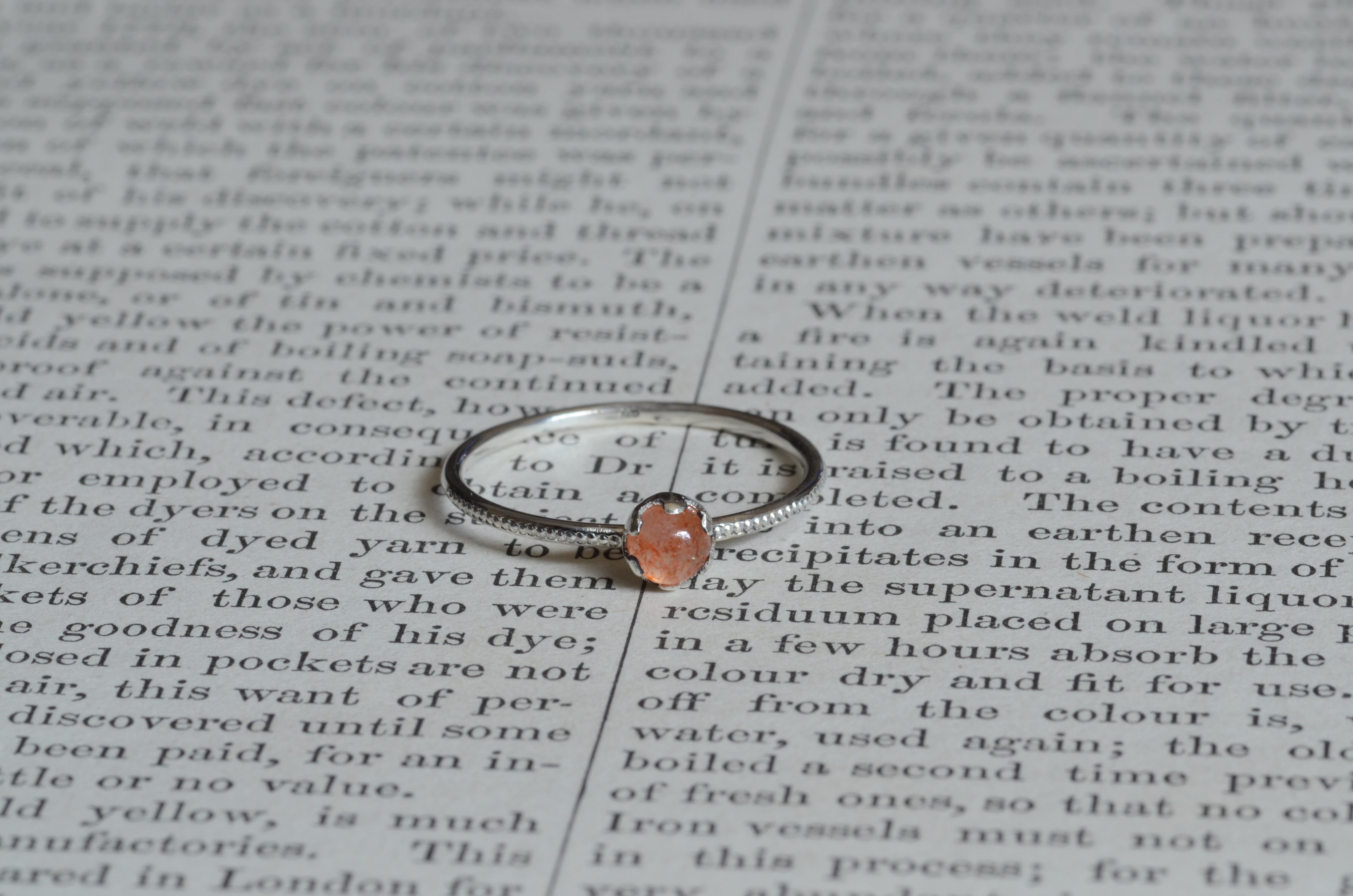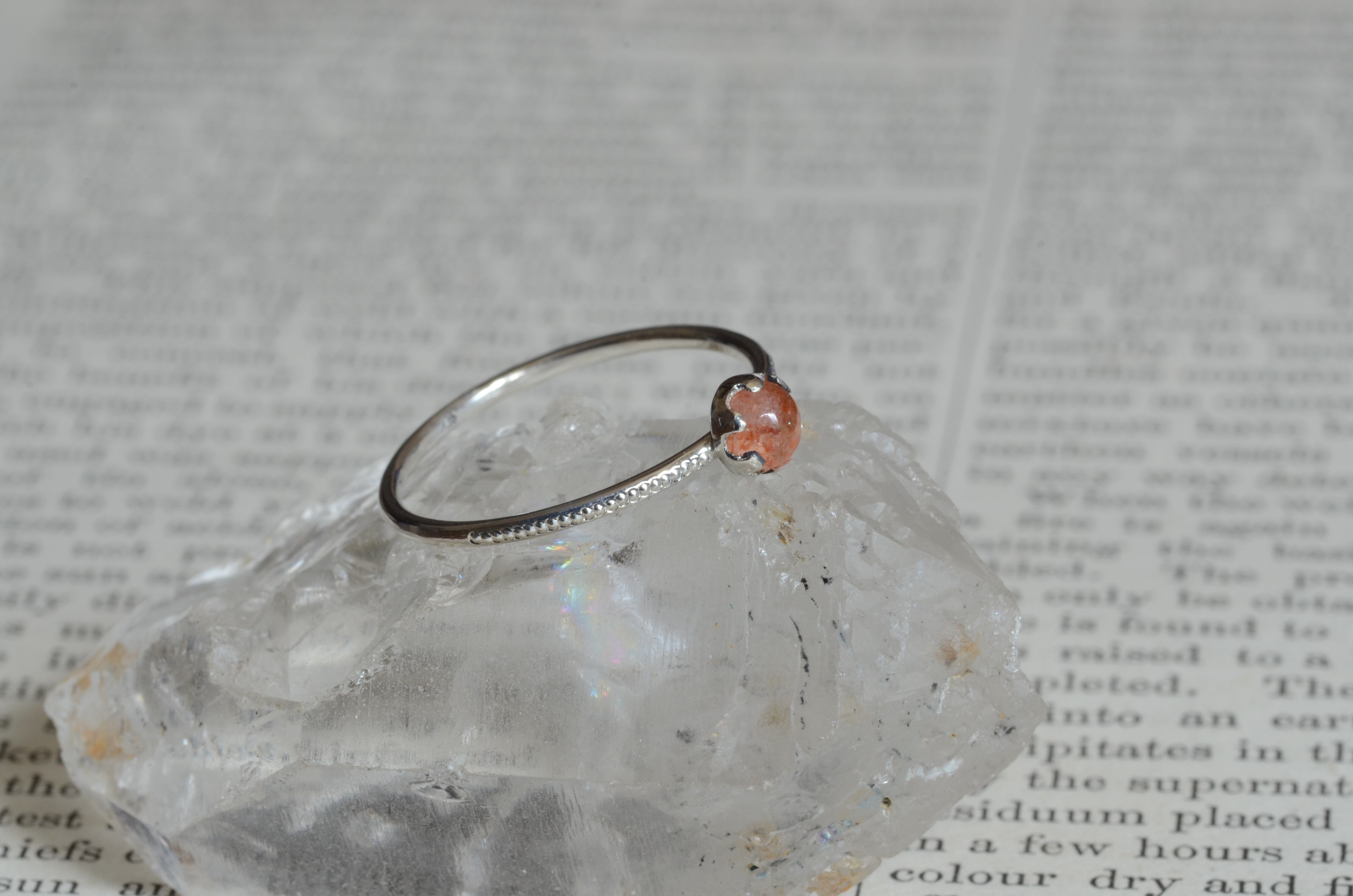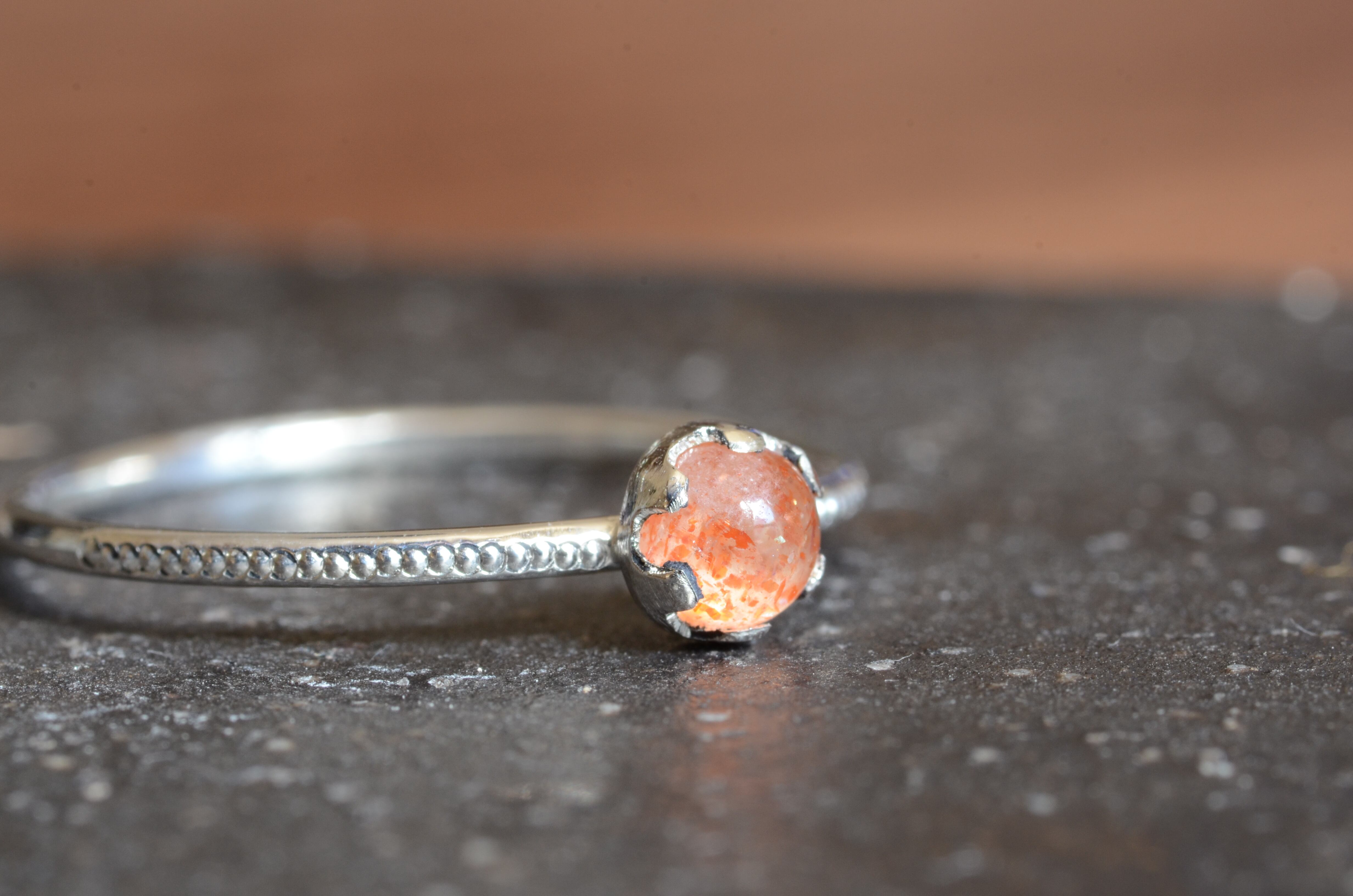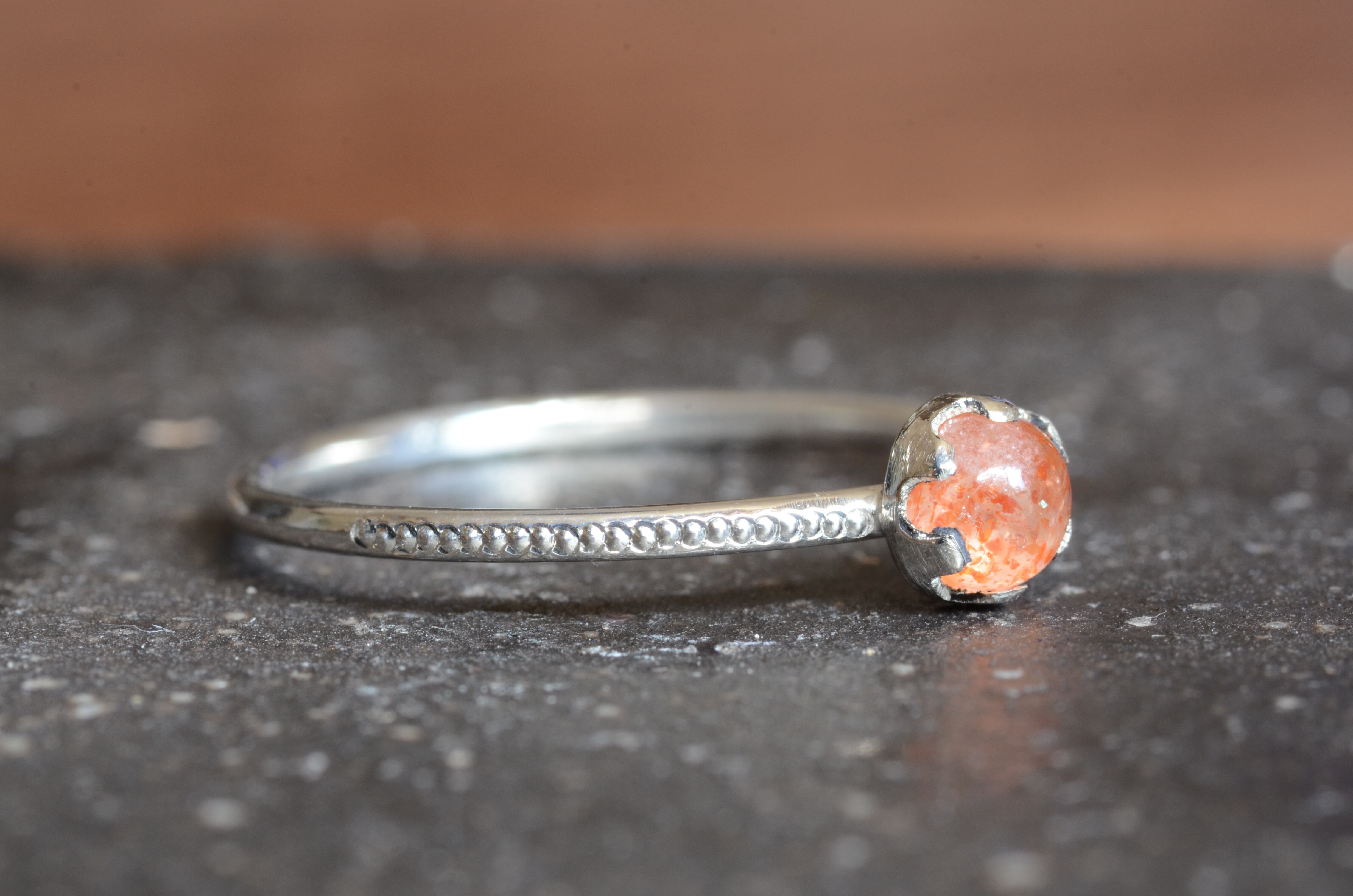 明るい色のサンストーンとシルバーの組み合わせは抜群の相性で私としてもとても気に入っております!リングにミル打ちを施すことでキラキラとした輝きをより楽しめるそんな作品に仕上げることができたと思っております。
