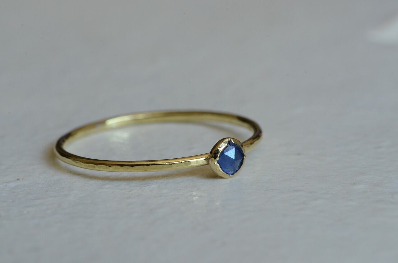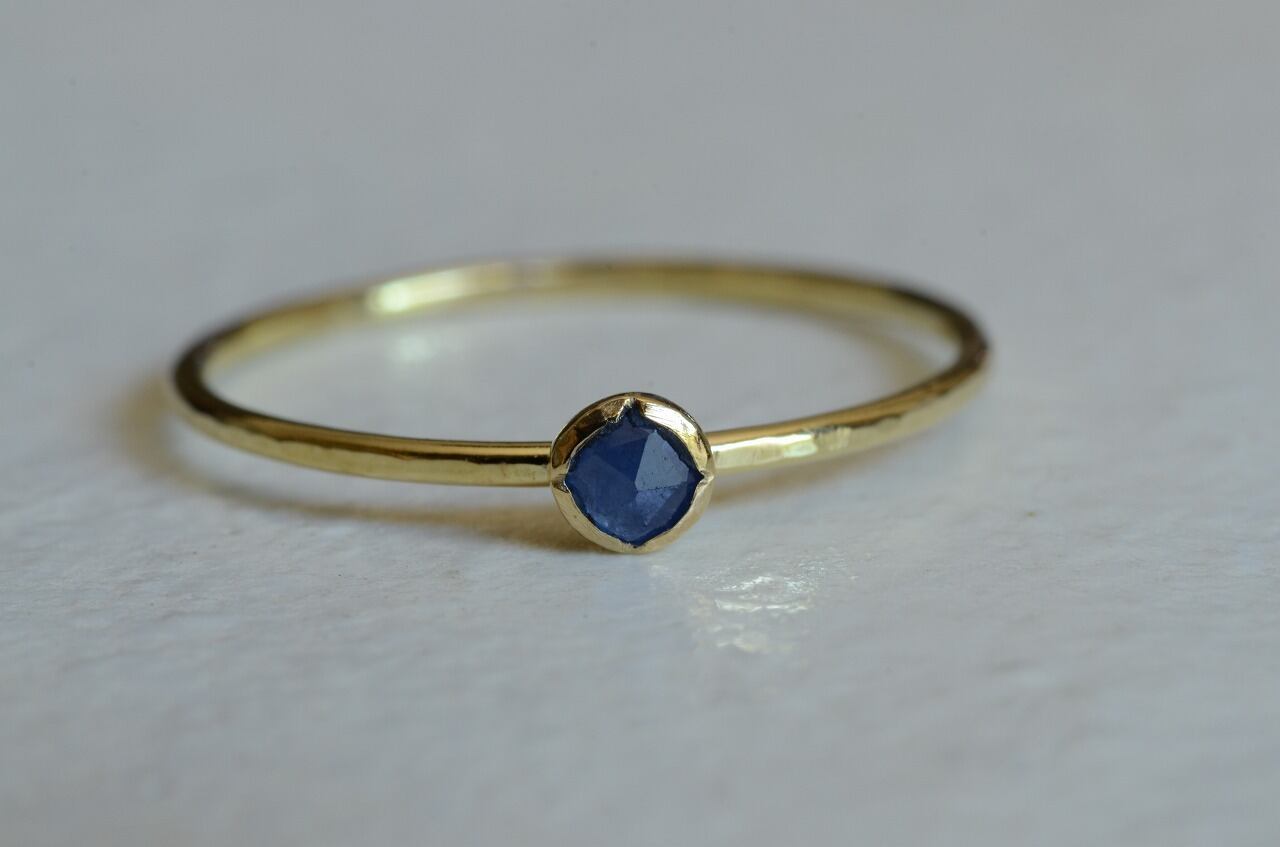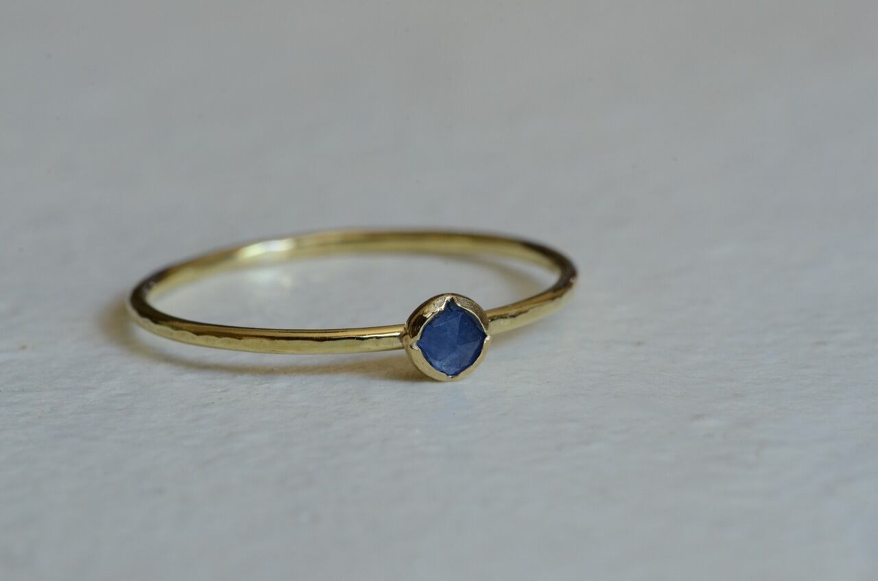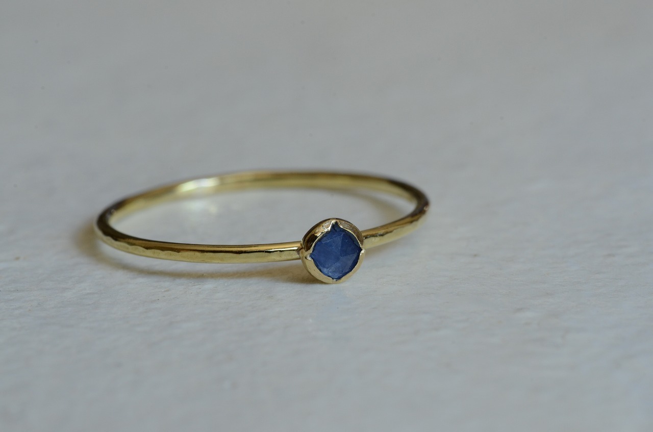 ローズカットの落ち着いた色のサファイア、あえて不透明な石を使うことで身近にそれでいて優しい印象を楽しめる作品に仕上げることができたと思っております。