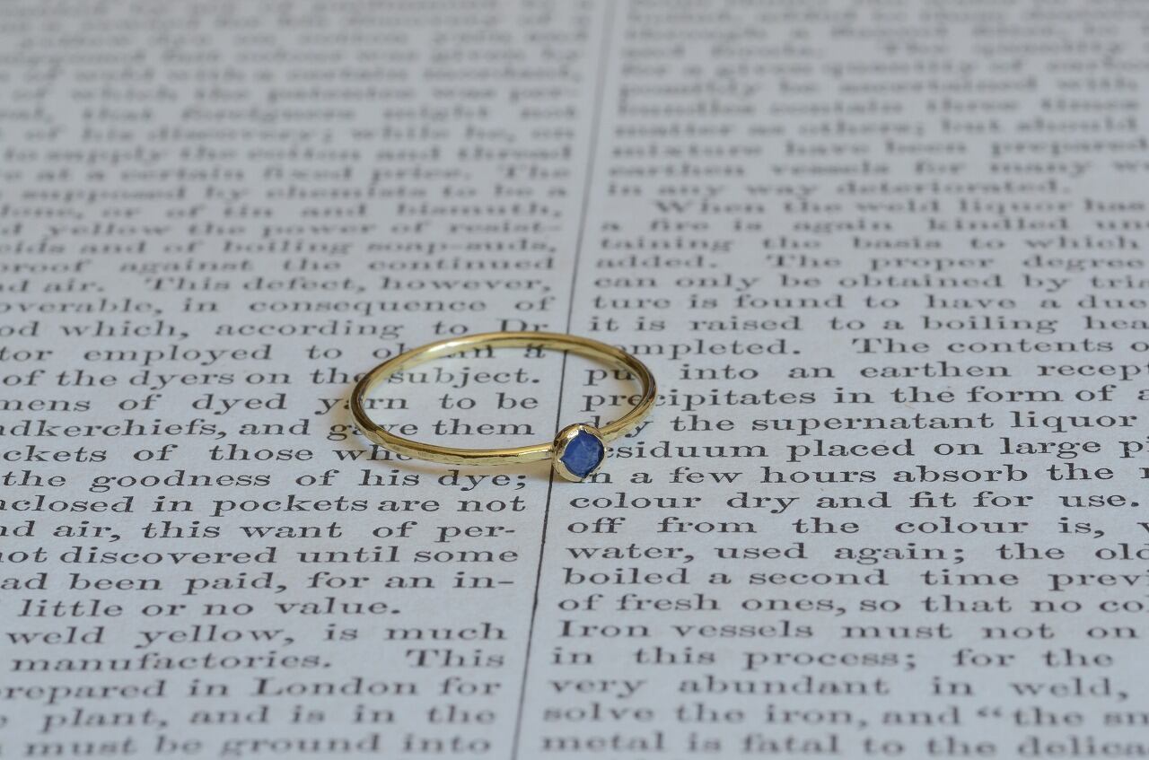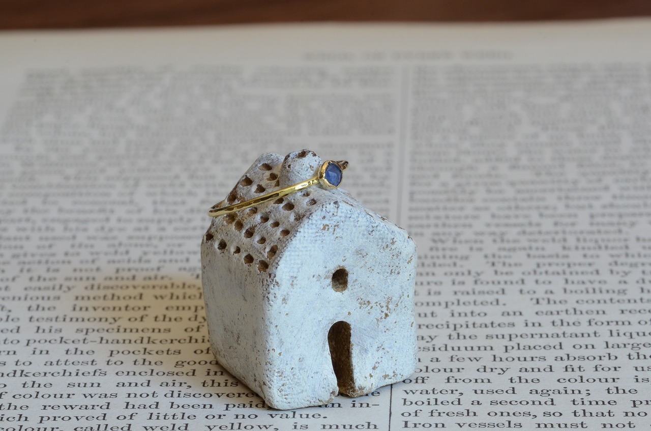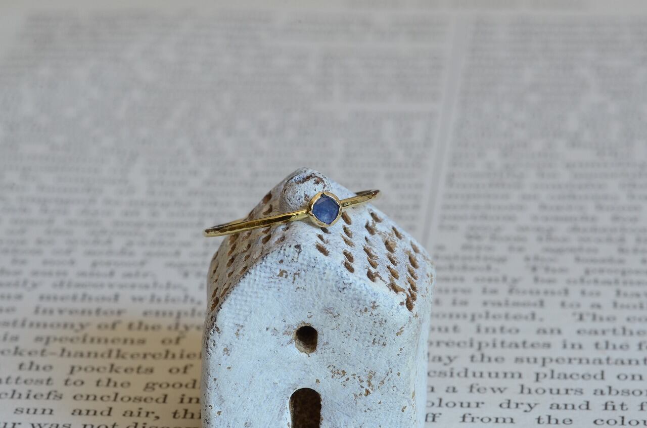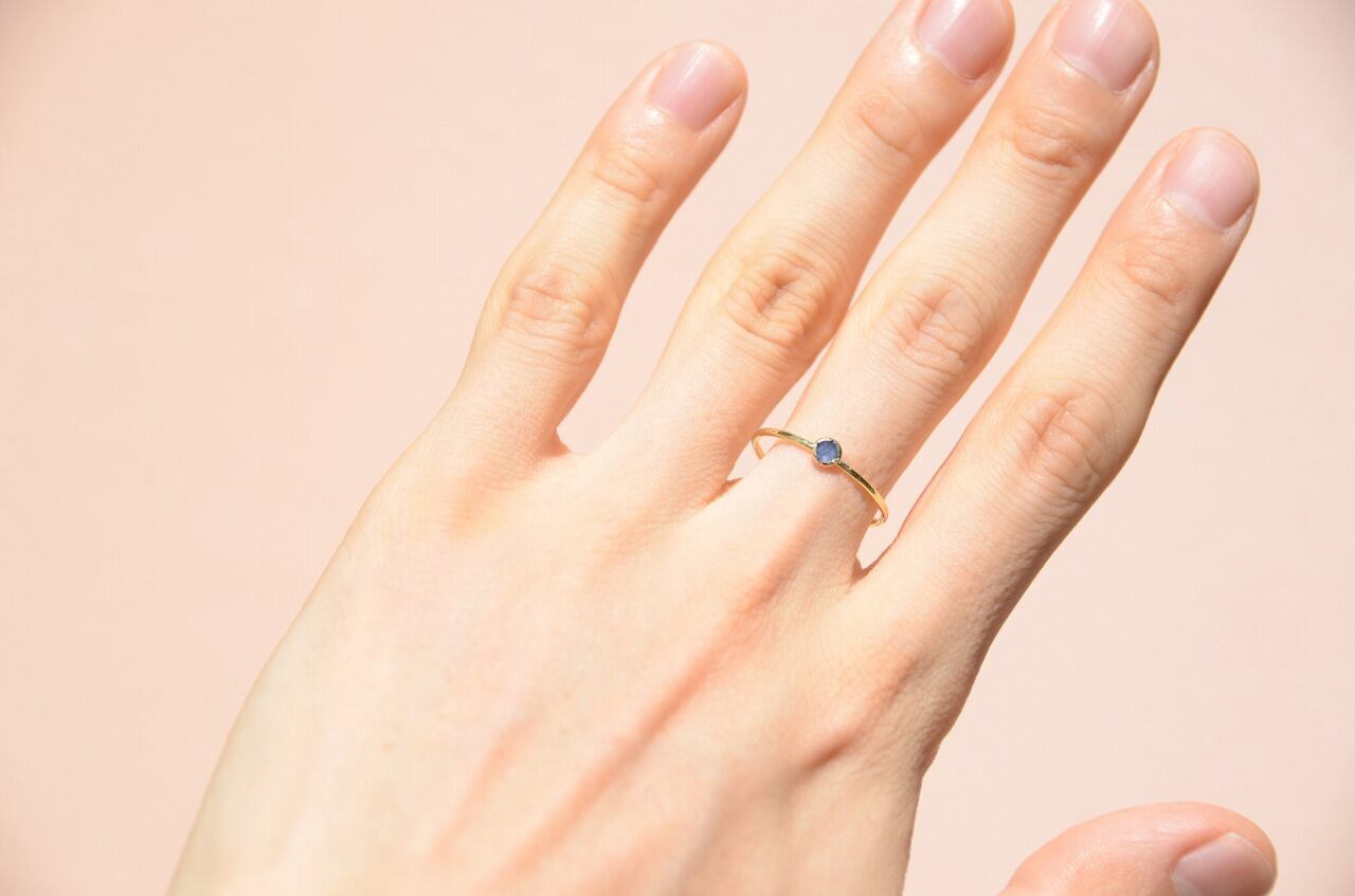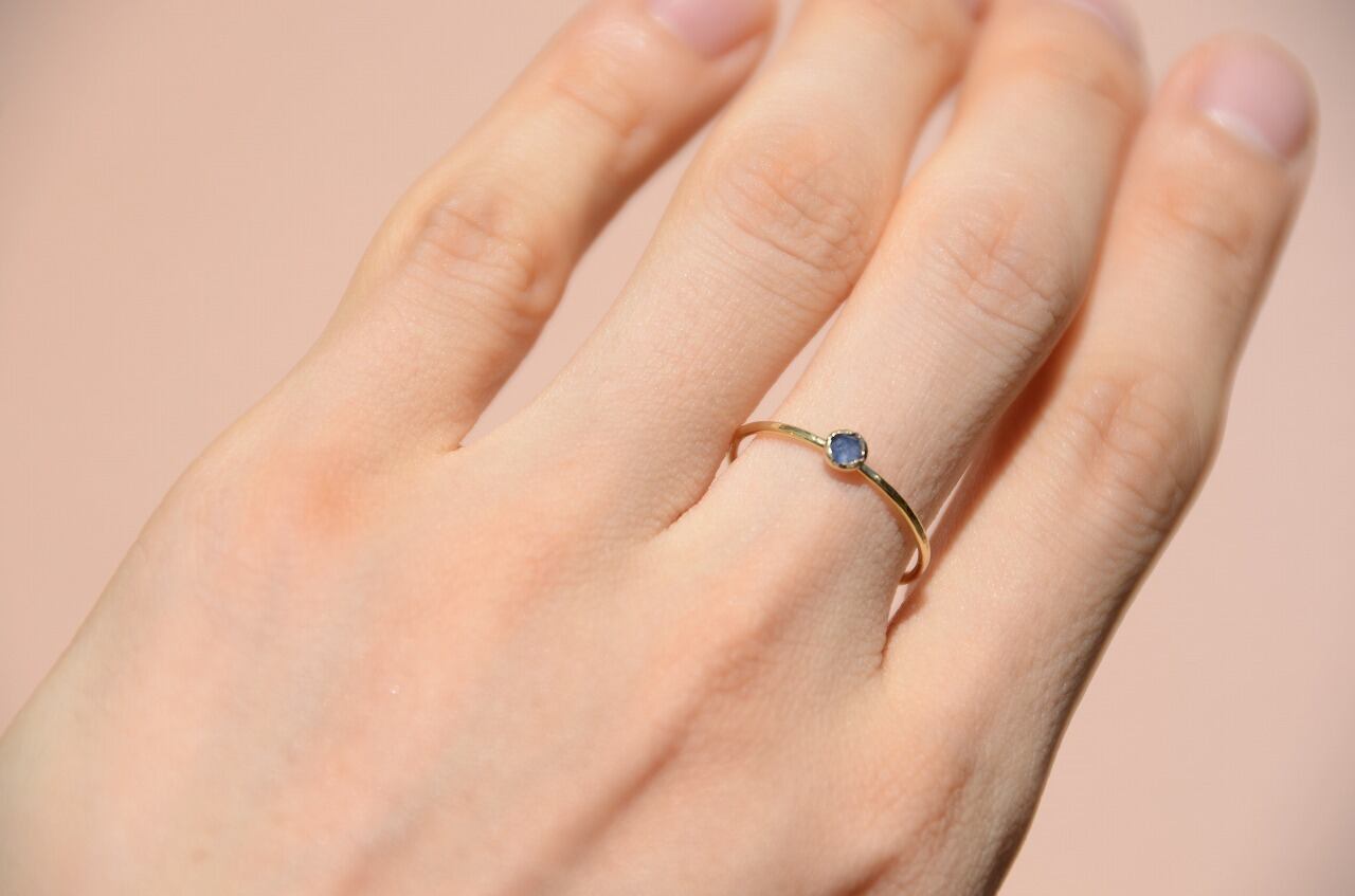 ローズカットの落ち着いた色のサファイア、あえて不透明な石を使うことで身近にそれでいて優しい印象を楽しめる作品に仕上げることができたと思っております。