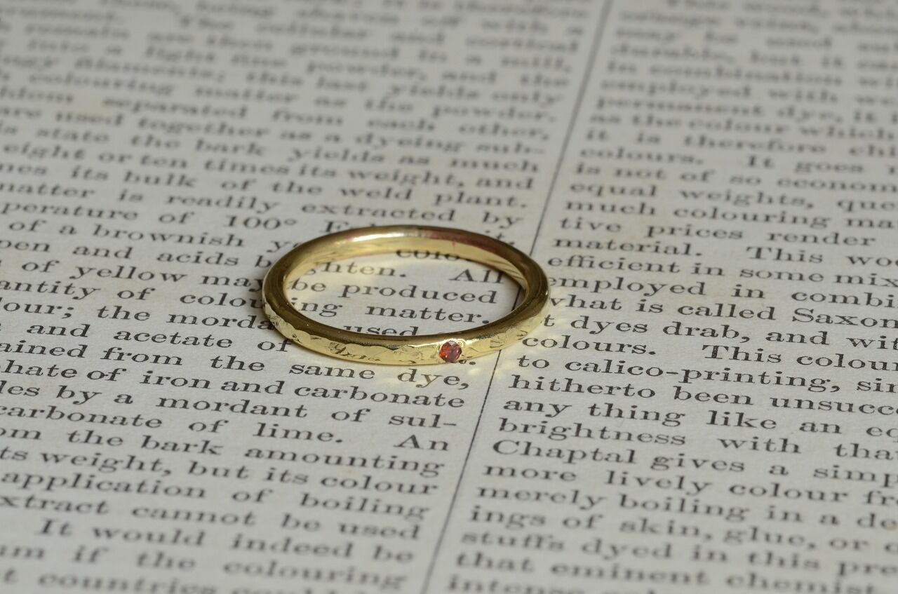 真鍮のリングで制作を行っている古き日々の物語を今回はガーネットで制作してみました。古いものを表現するのに最適な真鍮をつかい、ヨーロッパの旧市街の雰囲気などを楽しめる作品に仕上げることができたと思っております。