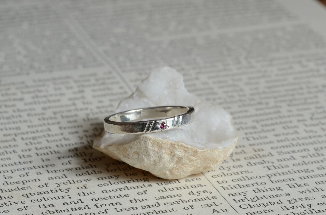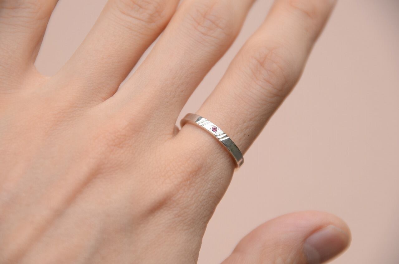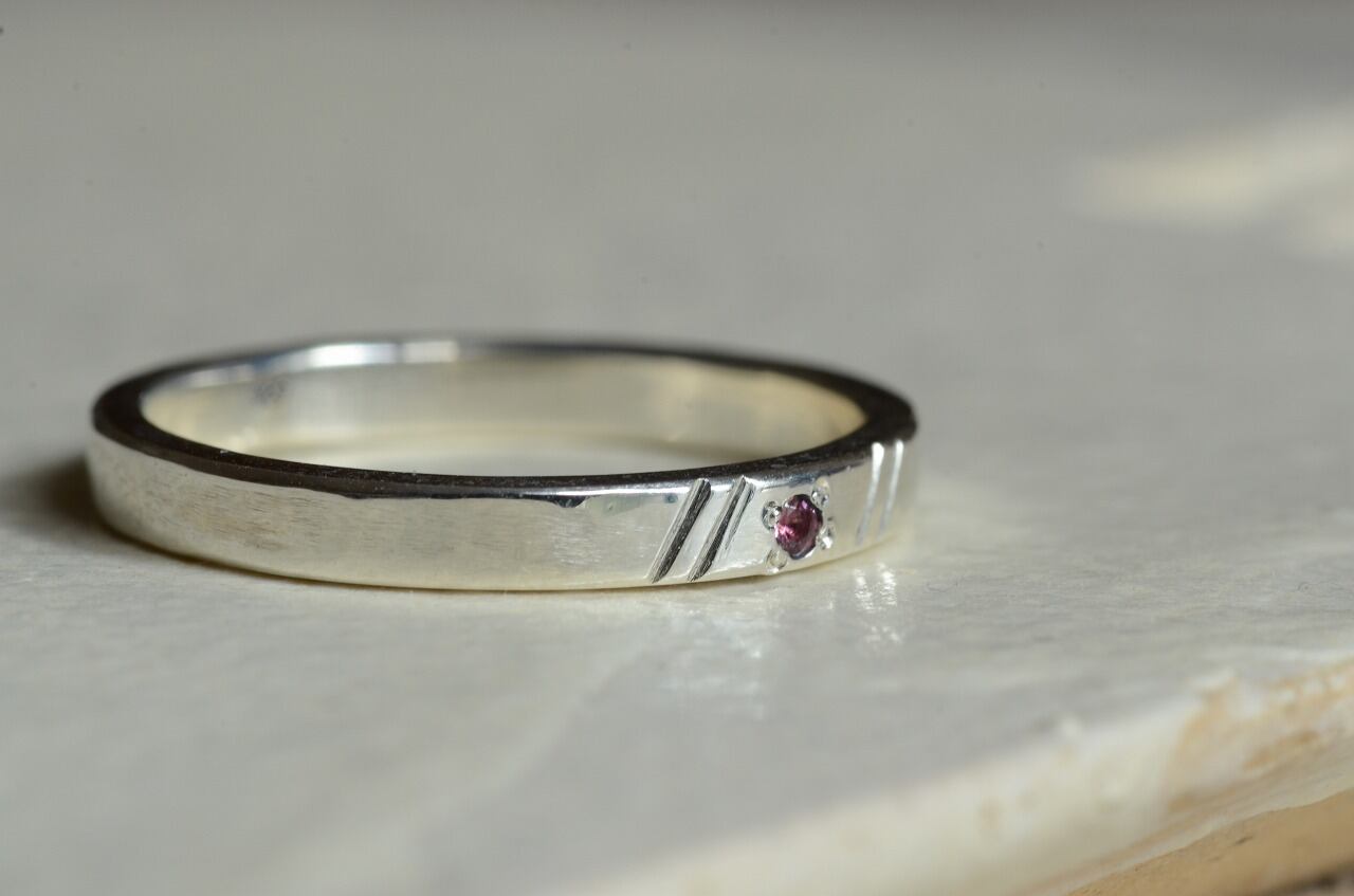 平打ちリングに手作業で線を入れて石を一粒留めてみる