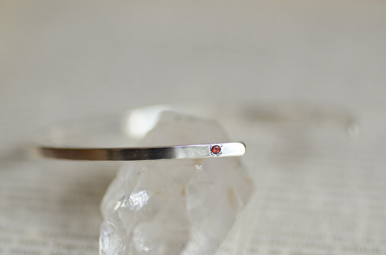 無地のシルバーの地金に一粒のガーネットを留めて・・・