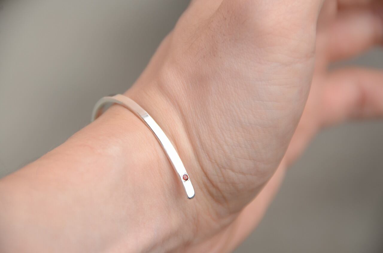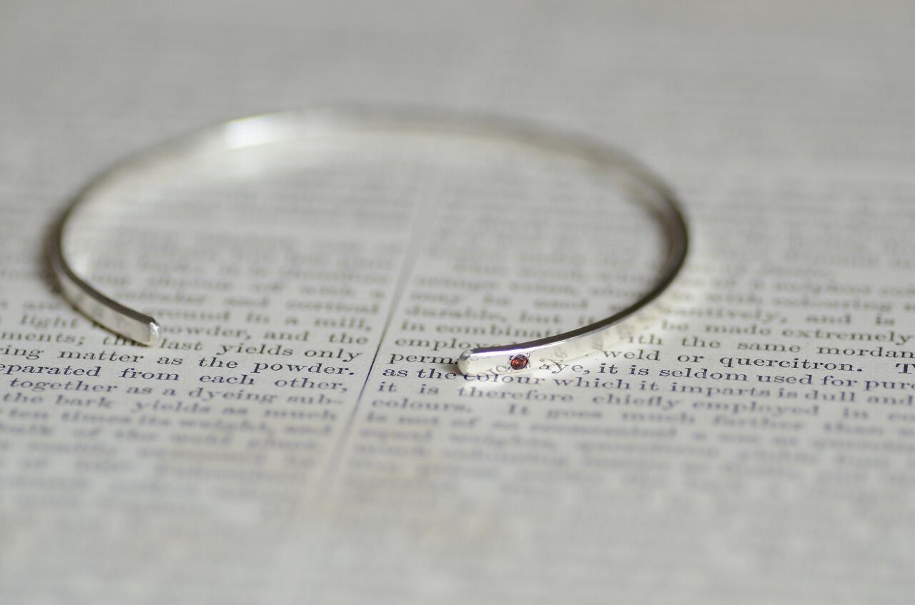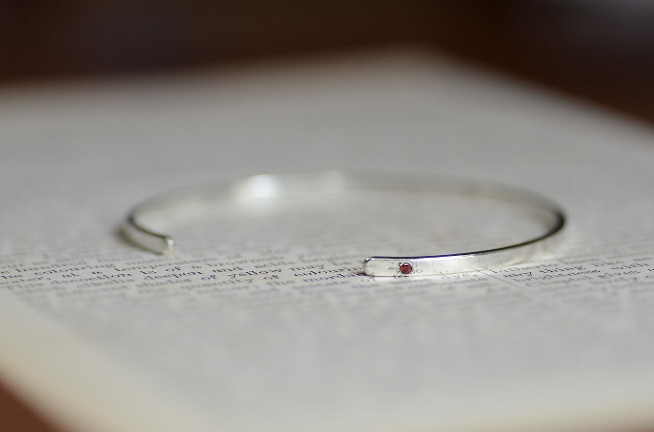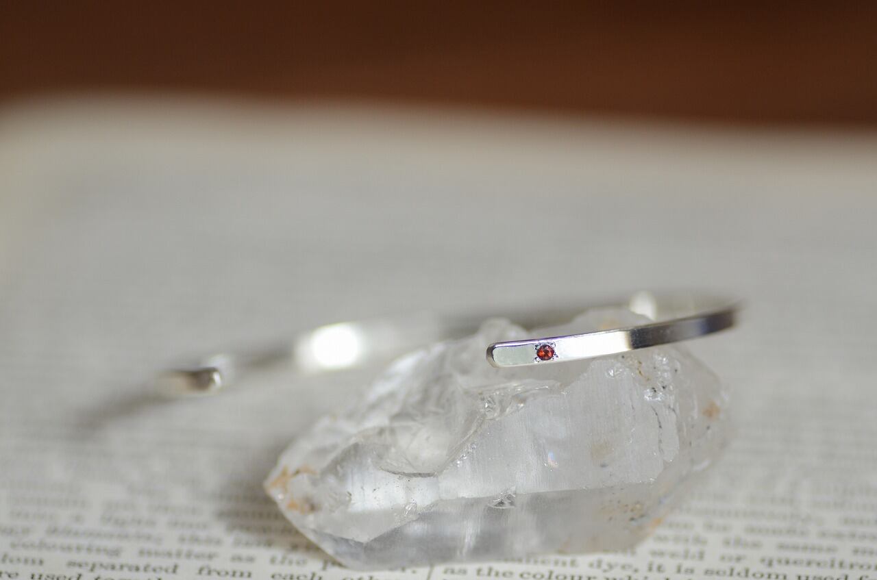 美しい輝きのガーネットとシルバーの組み合わせのバングル作品