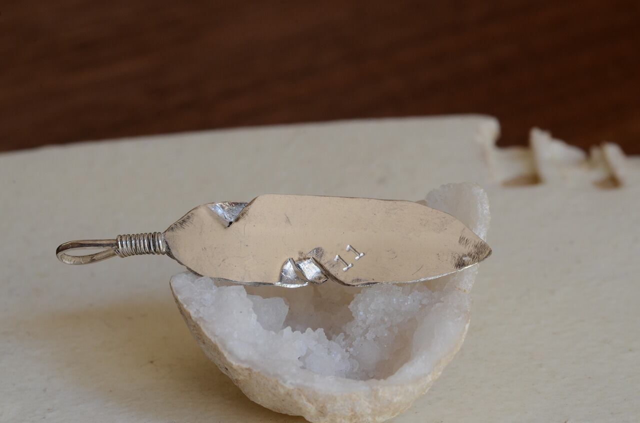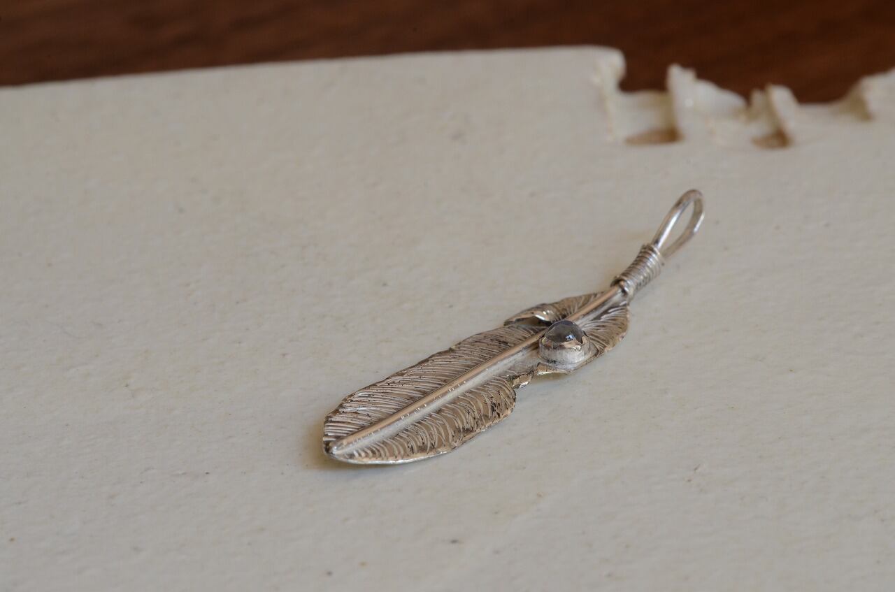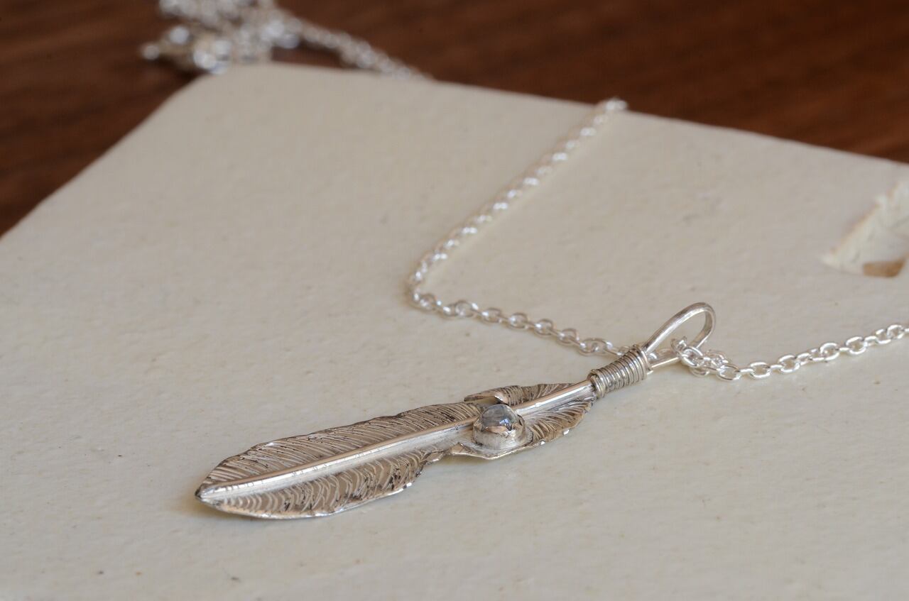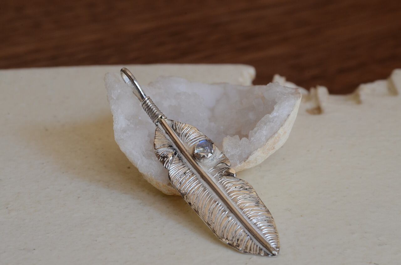 以前に制作を行った『青空と月』見た目はほぼ一緒ですが石をレインボームーンストーンに変えて制作を行いました。さらりとしたデザインのフェザーモチーフそこに一粒石を留めてみました。