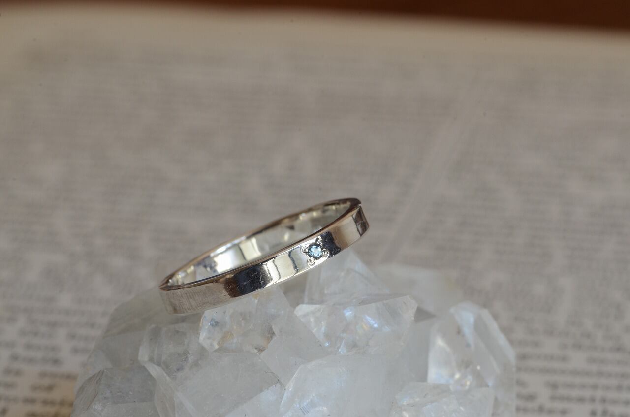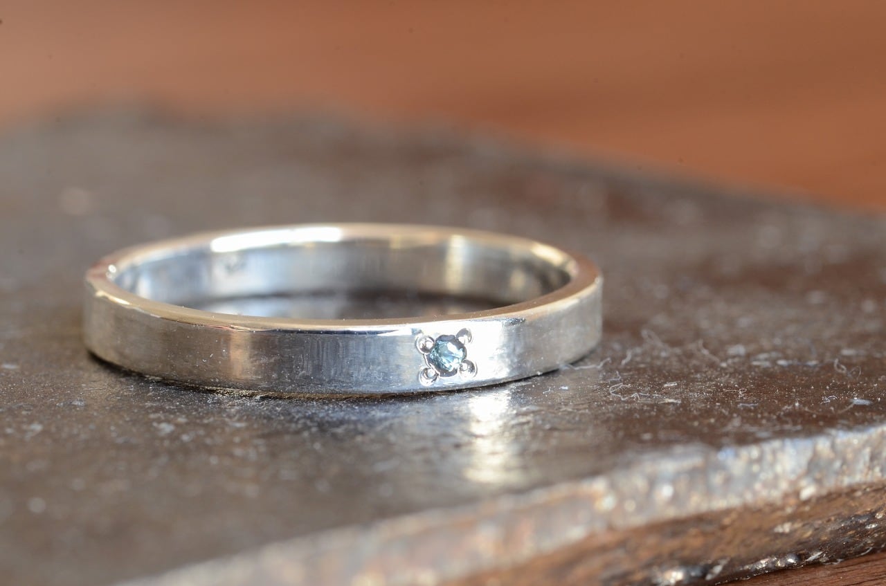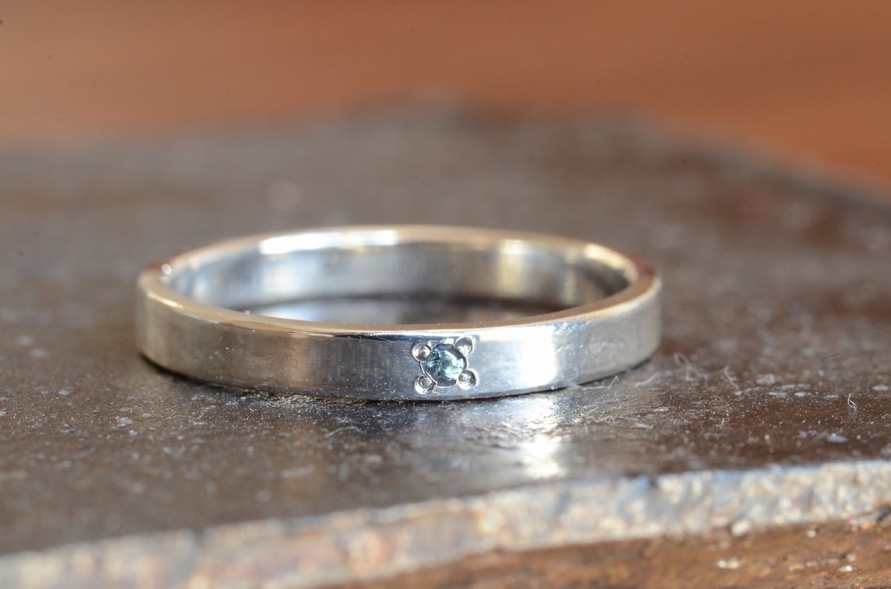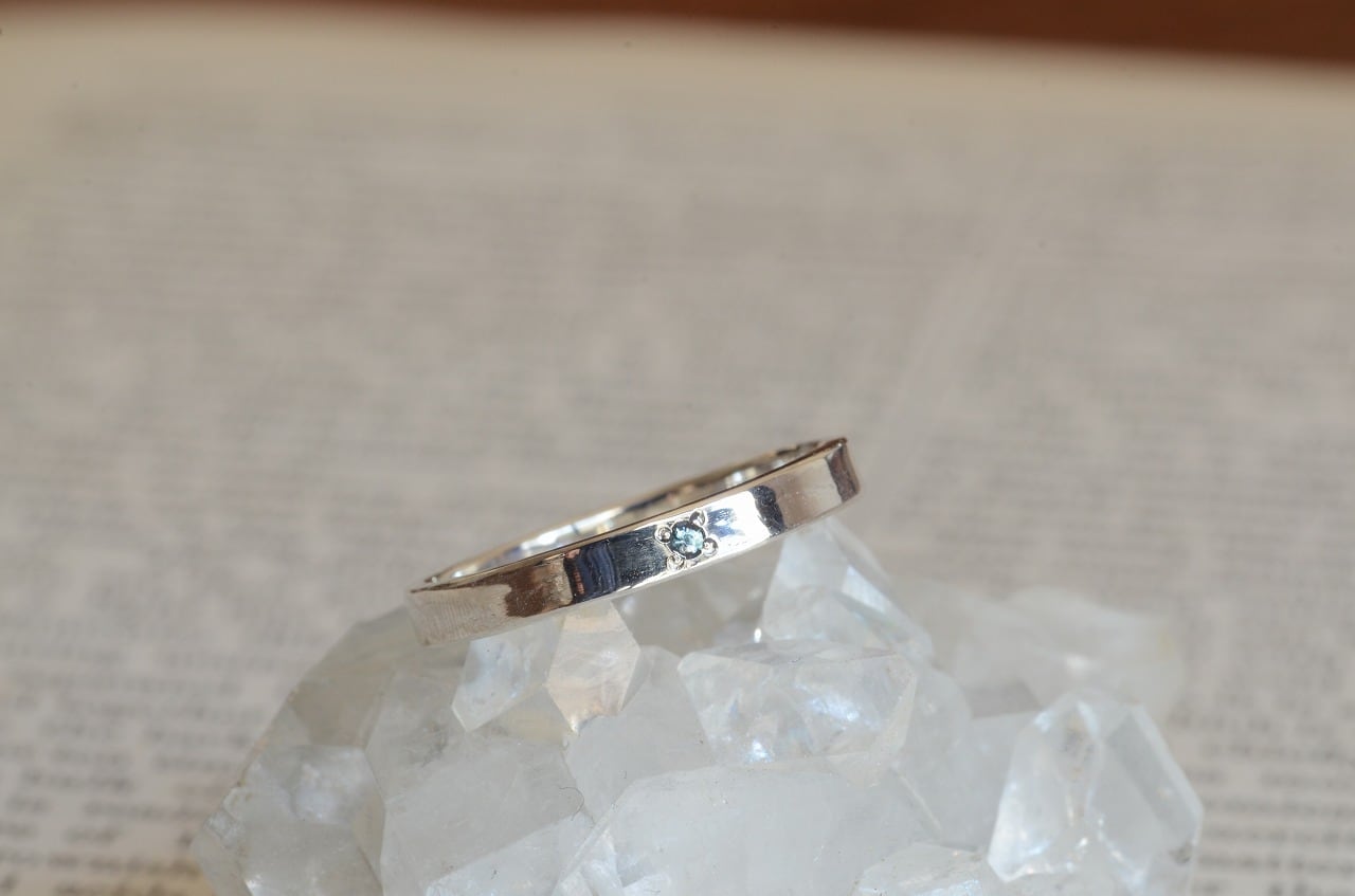 おもえばシンプルなリングを作り続けているアトリエ Le Tourですが平打ちリングに石を一粒だけ留めたリングは制作したことがないなと思いまして制作を行いました