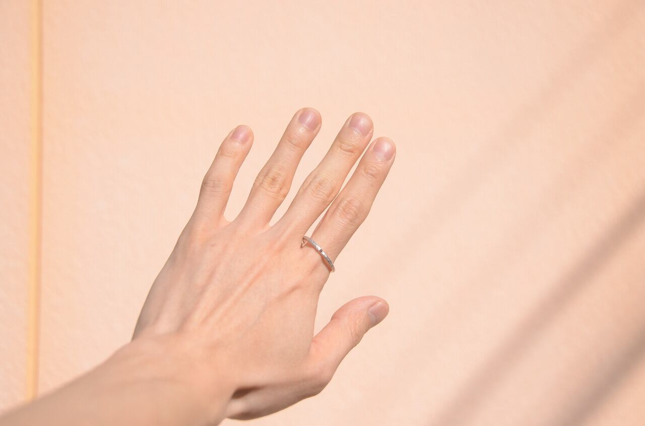 シンプルにだけど特別感を感じたい、一つ一つ手作業で制作するからこそのリングの質感を手に取って楽しんでもらえたらうれしいです。