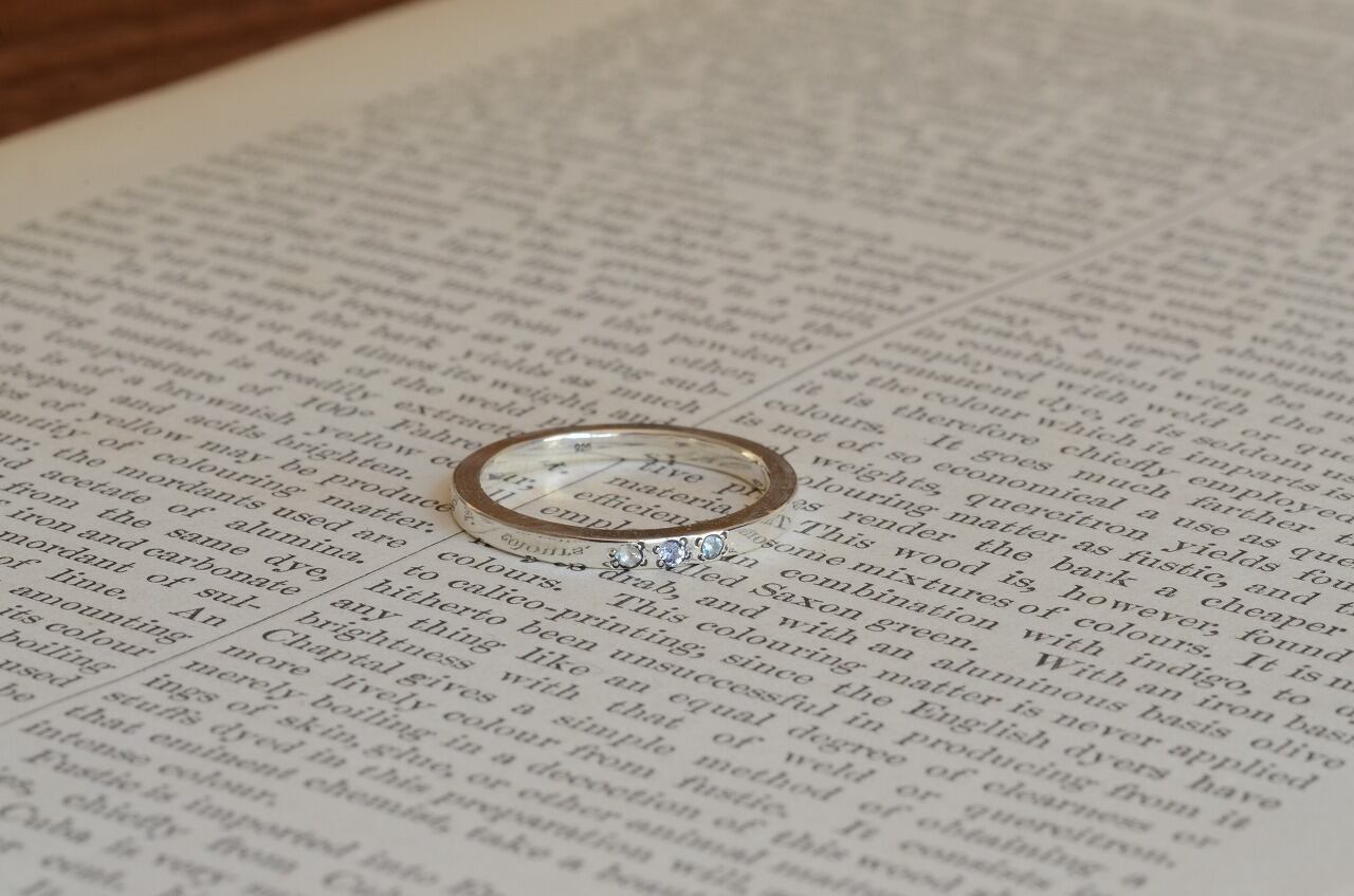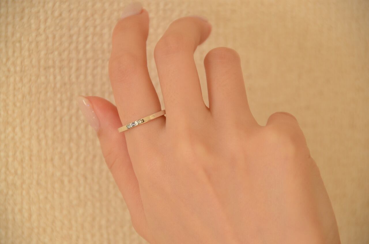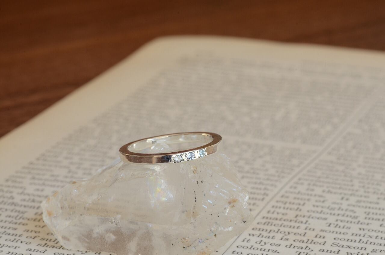 ほんの少し厚みを持たせたシンプルなリングに石を三つほど留めて制作を行いました