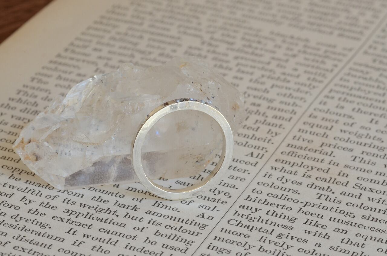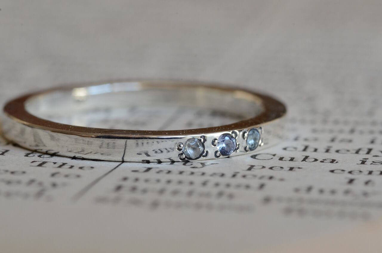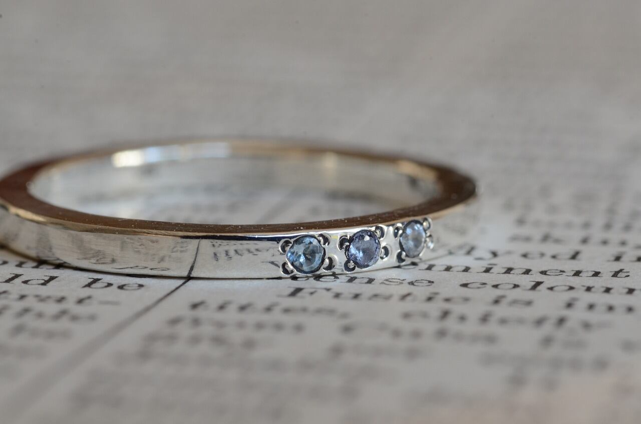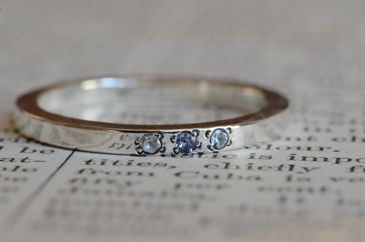 ほんの少し厚みを持たせたシンプルなリングに石を三つほど留めて制作を行いました