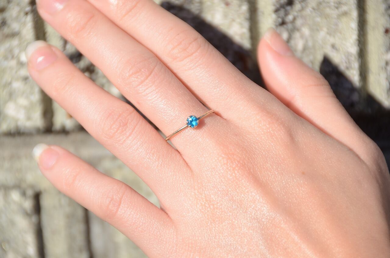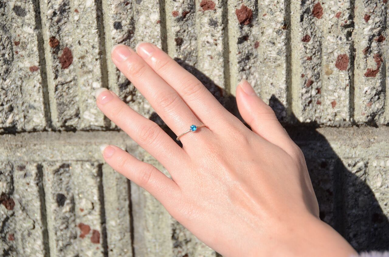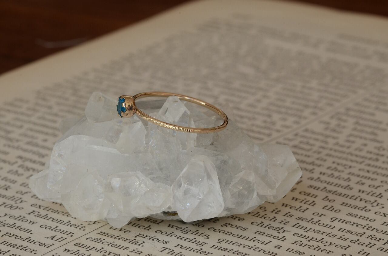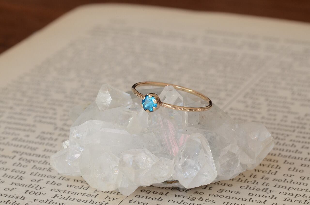 今回はブルーアパタイトとK10の組み合わせのリングです。ネオンブルーのような美しい青がとっても素敵ですね。