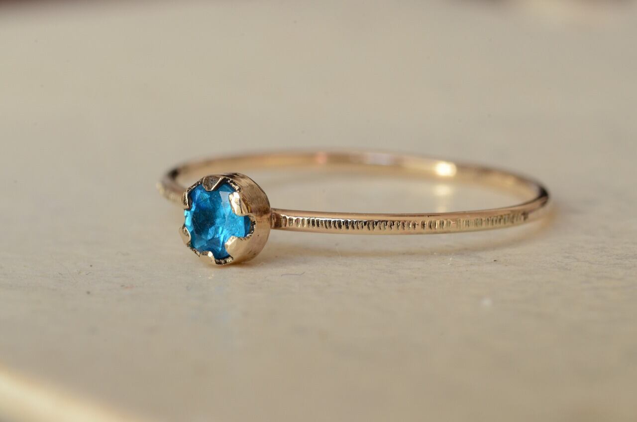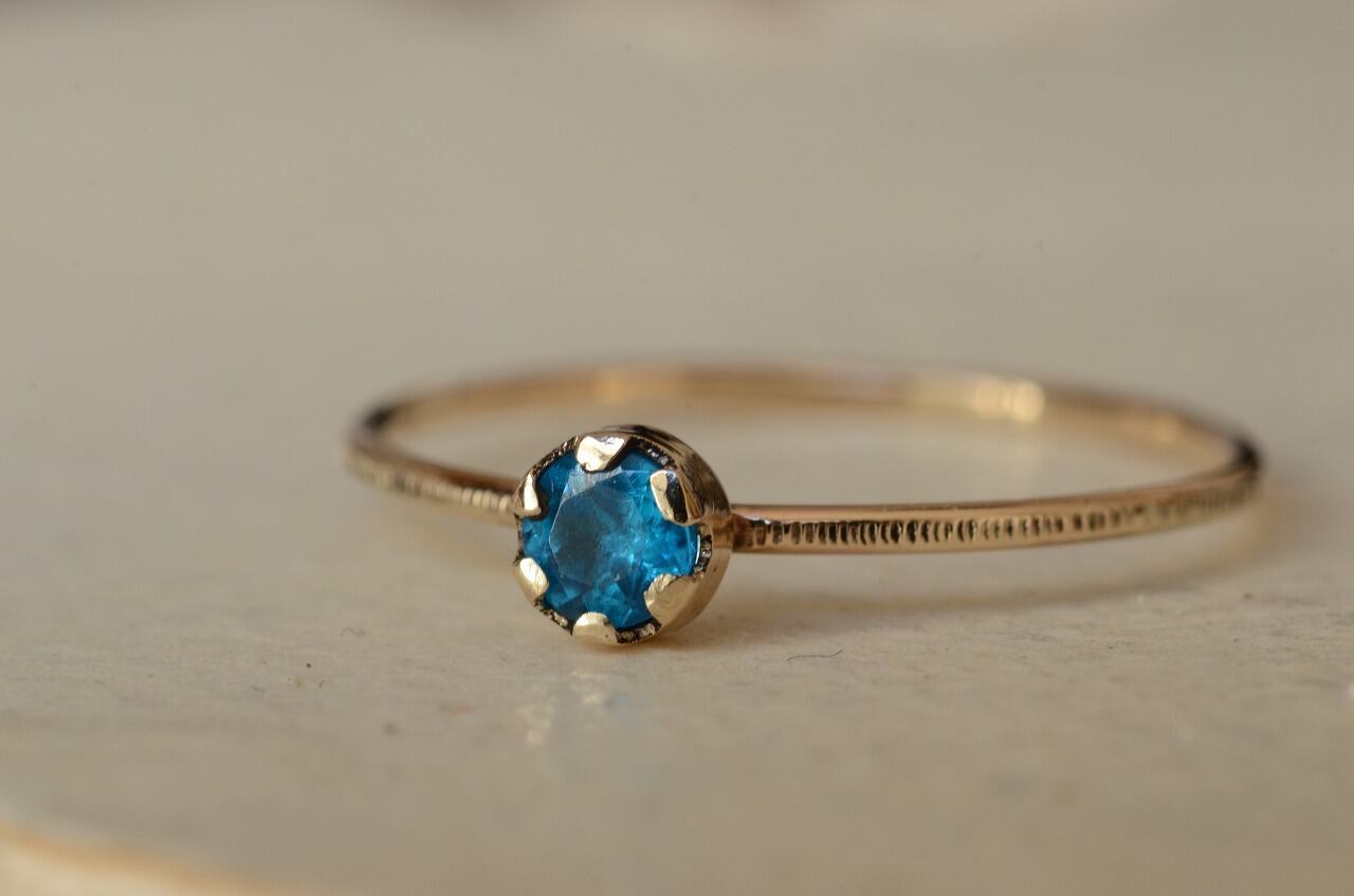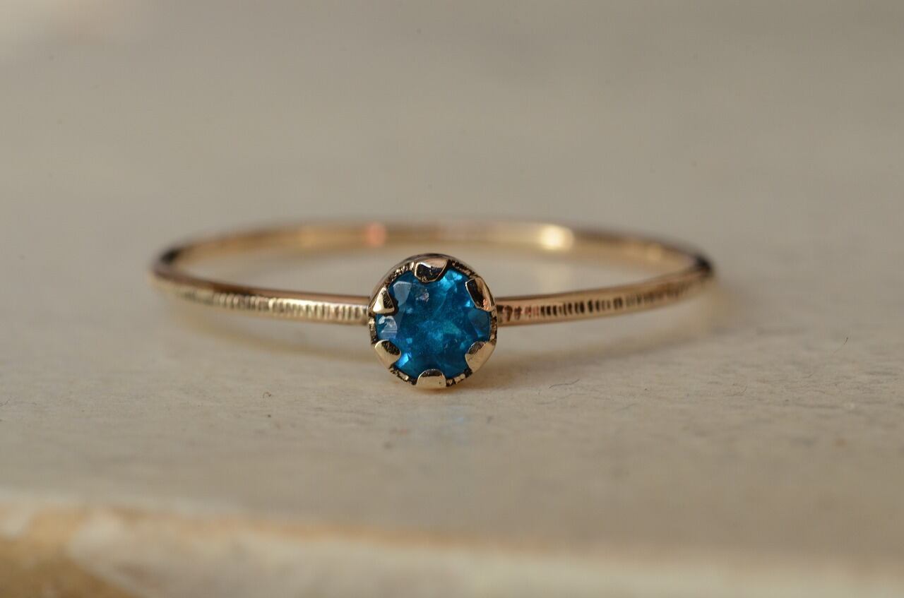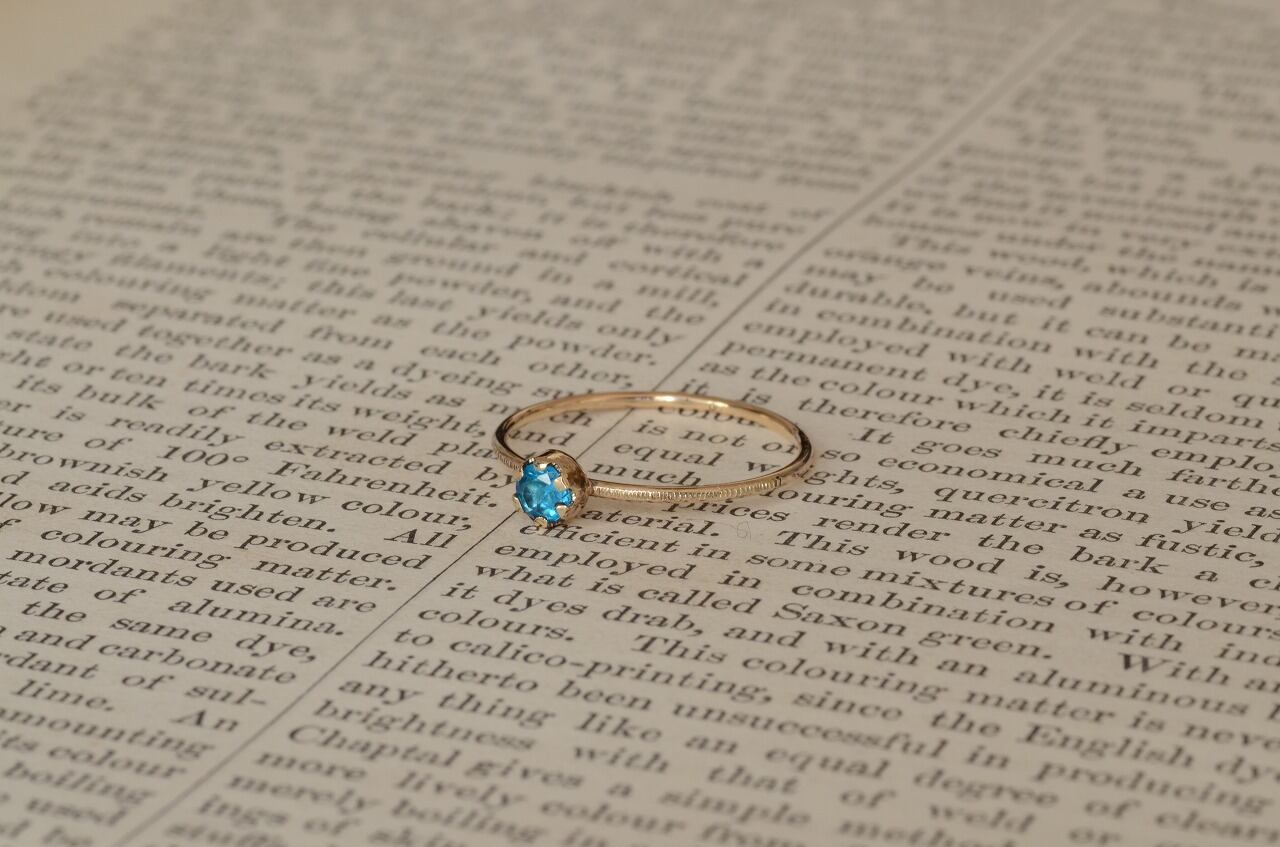 今回はブルーアパタイトとK10の組み合わせのリングです。ネオンブルーのような美しい青がとっても素敵ですね。