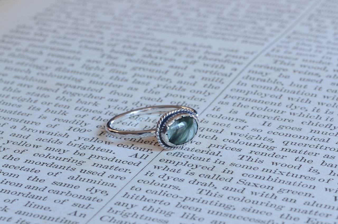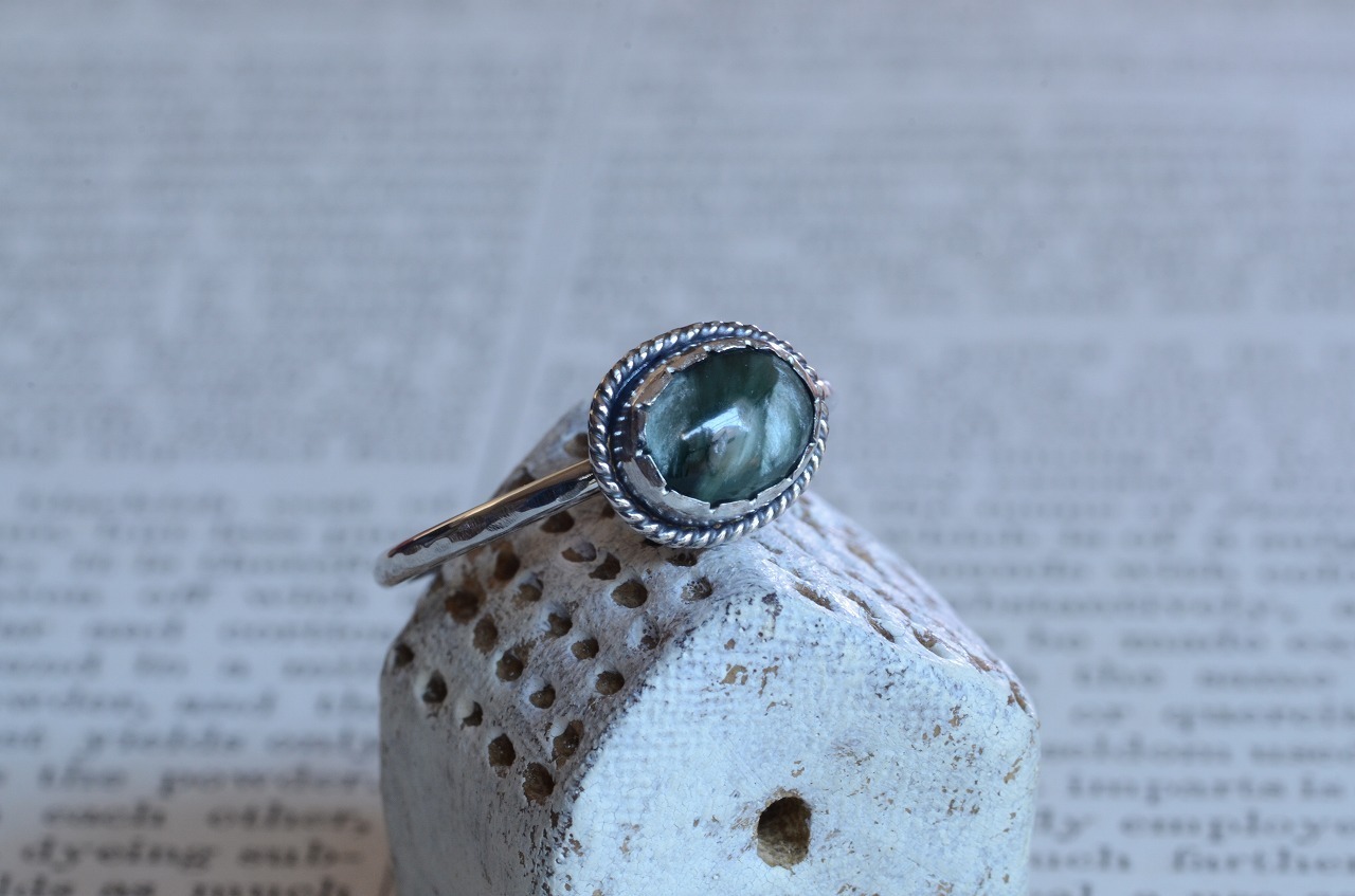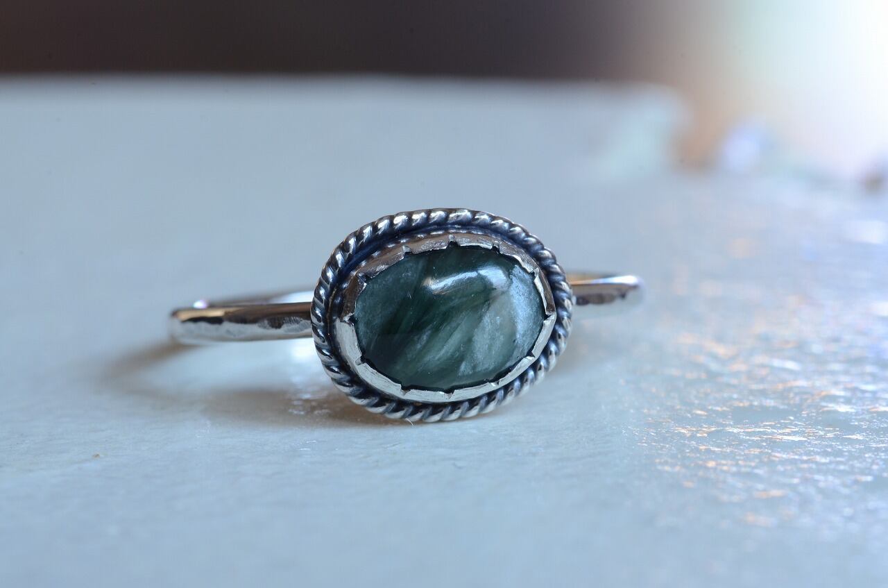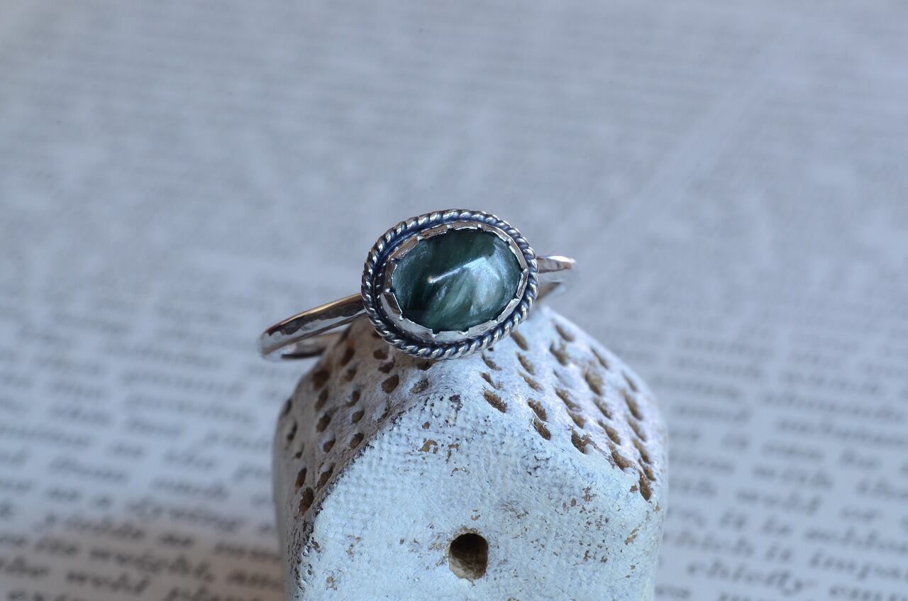 ロシアのバイカル湖付近で採れる石で最高位の天使、セラフィムを語源とする石でグリーンの地の色の中に天使の羽を思わせるようなシルキーな模様が浮かぶ石で正式にはクリノクロアという鉱物です。石の効力はとても繊細のエネルギーを持ち、持ち主に深い安心感を与え、平穏をもたらし、優しい癒し、リラックスした状態に導いてくれ、静かで平穏に暮らし、自分を休ませたい方に最適の効力を発揮してくれます。