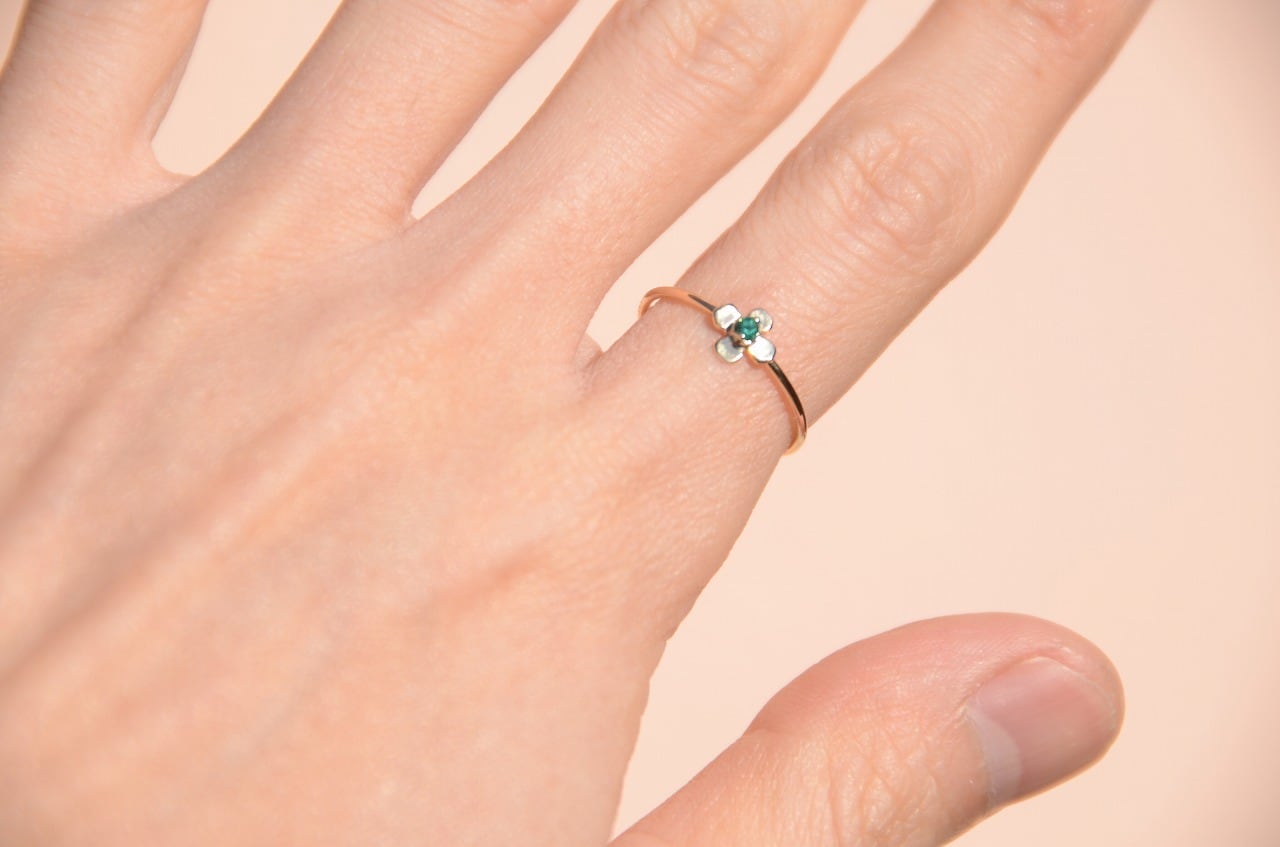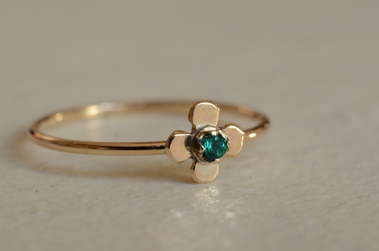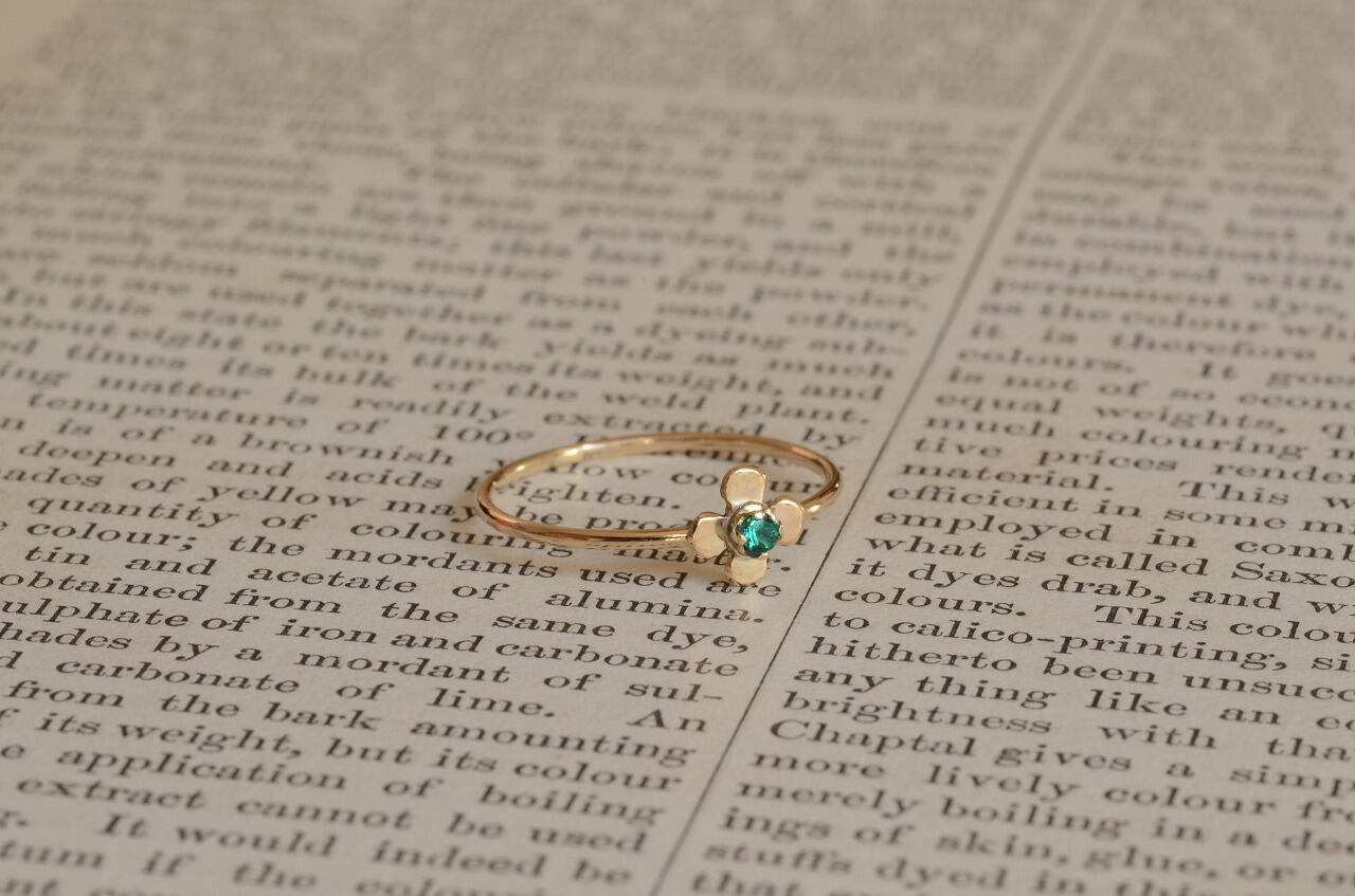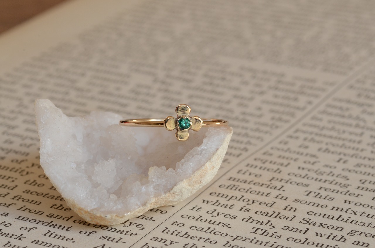 今回はエメラルドを使ってまるで花のようなデザインのリングに仕上げてみました
