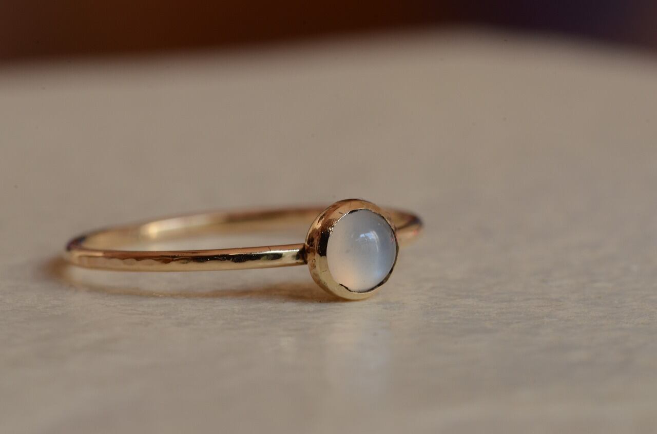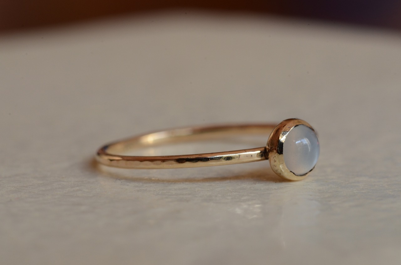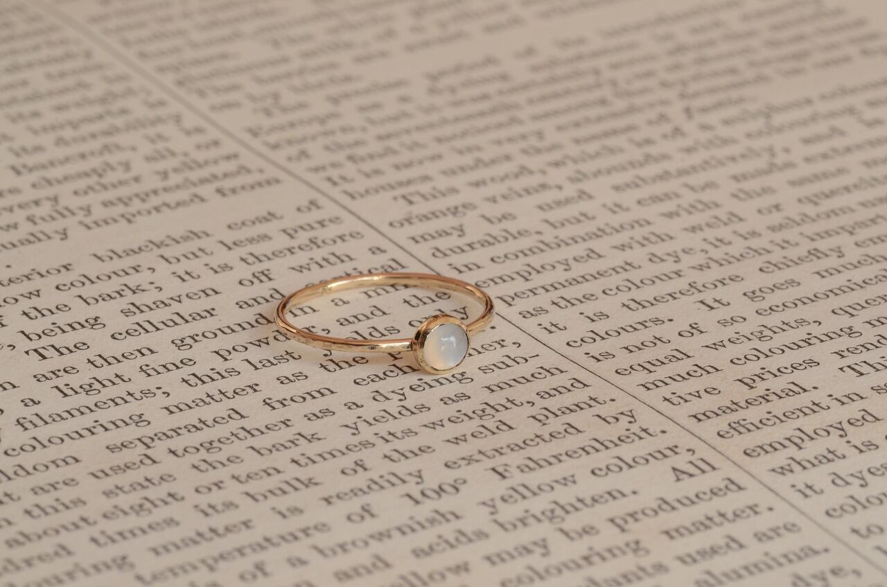 今回はオーソドックスなデザインの作品ということでムーンストーンと10金の組み合わせで制作を行いました、キラキラと優しく輝く10金の輝きとムーンストーンの落ち着きつつも優しい色合いをじっくりと楽しんでもらえら幸いです