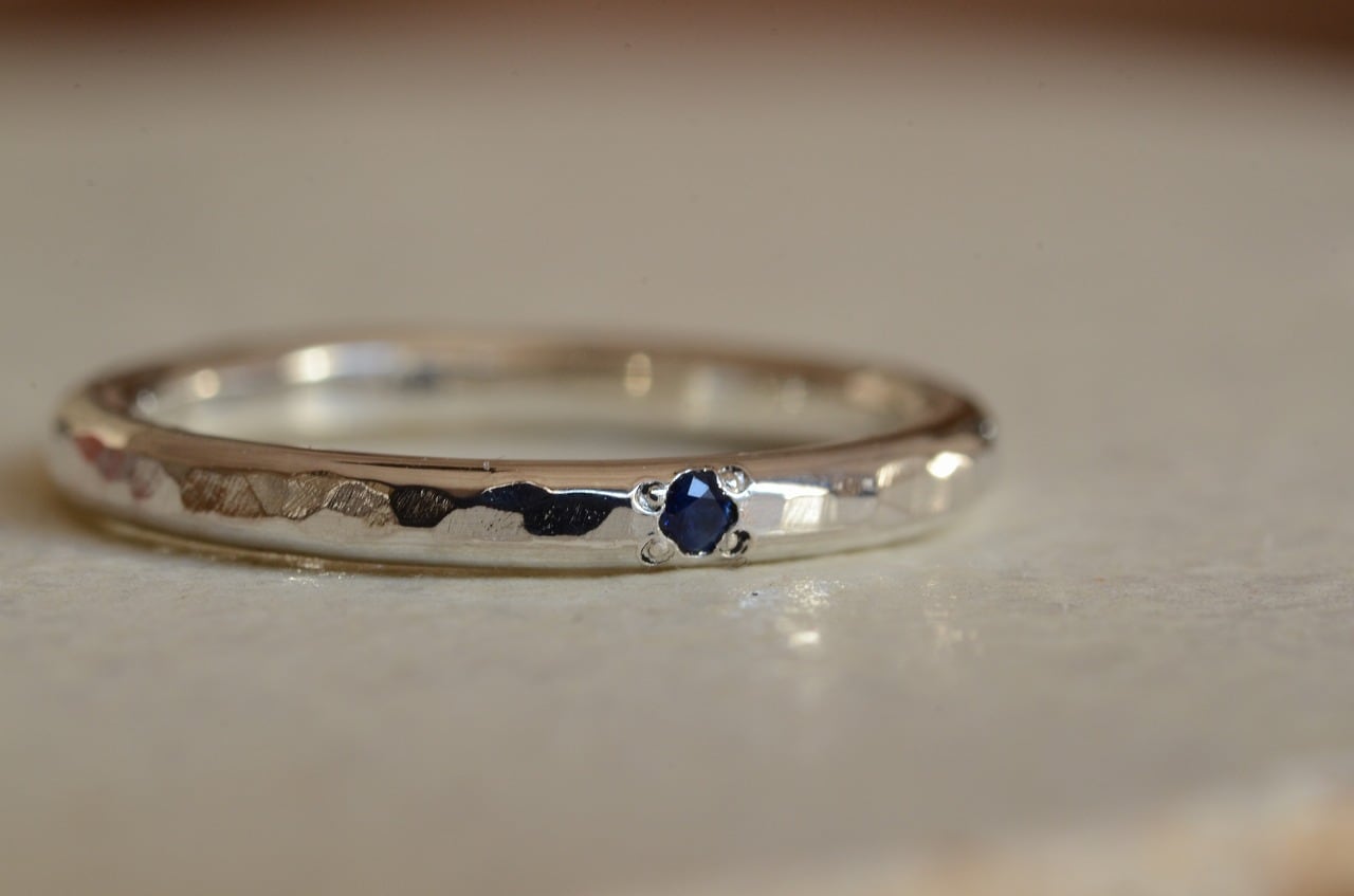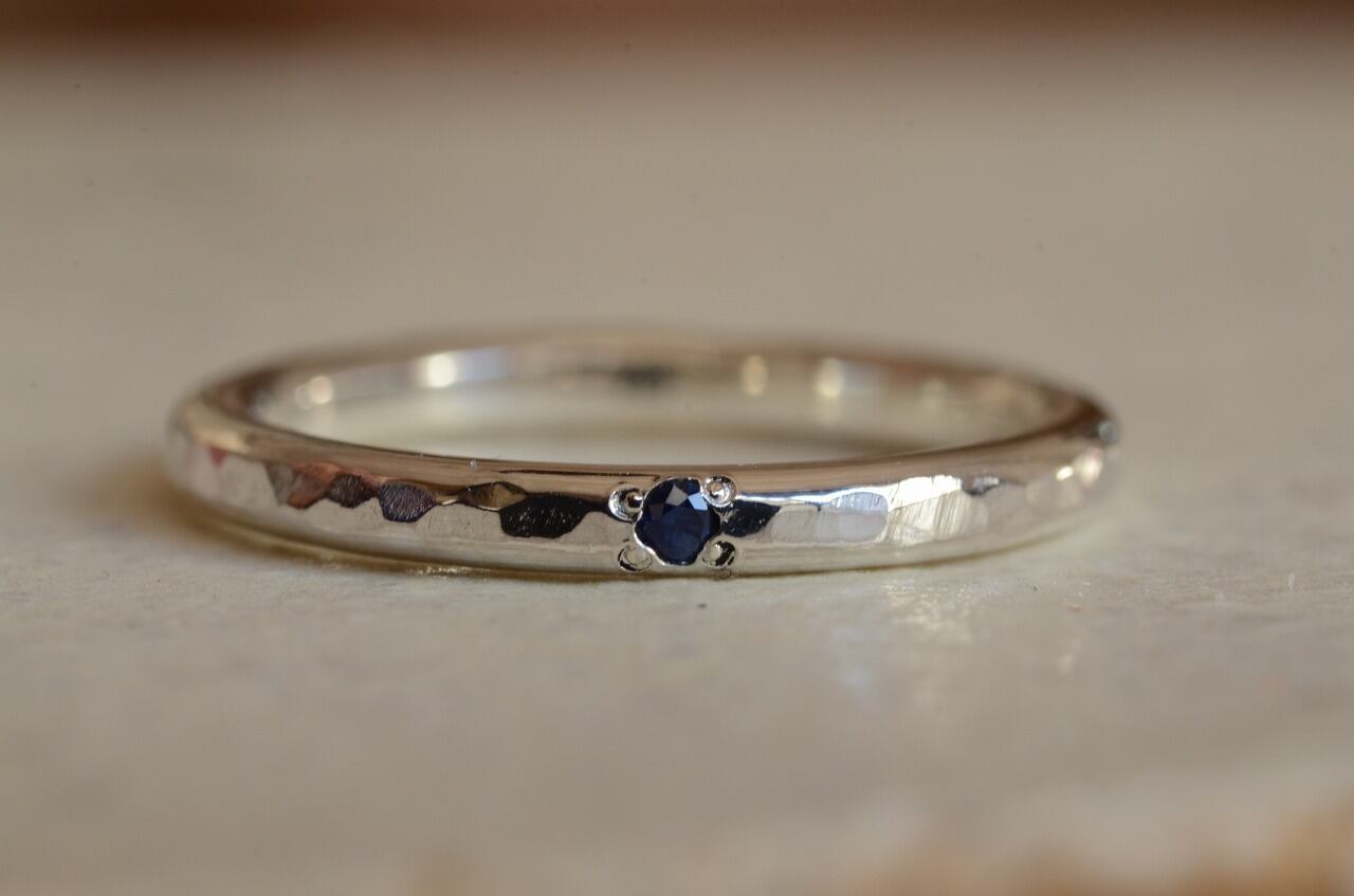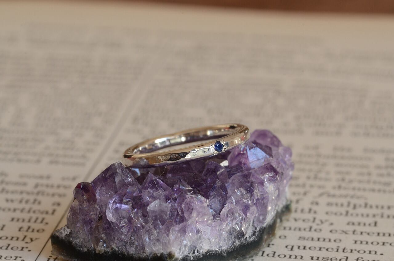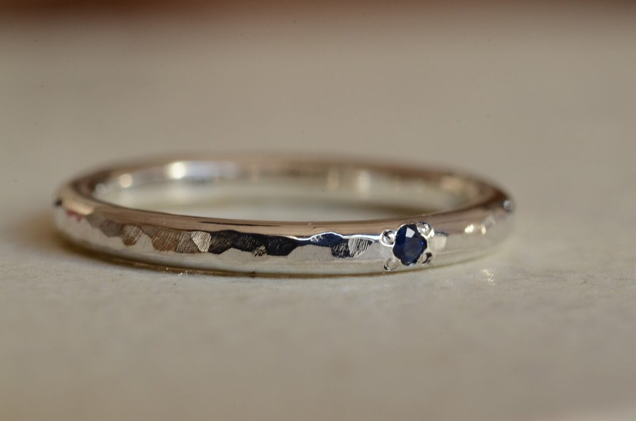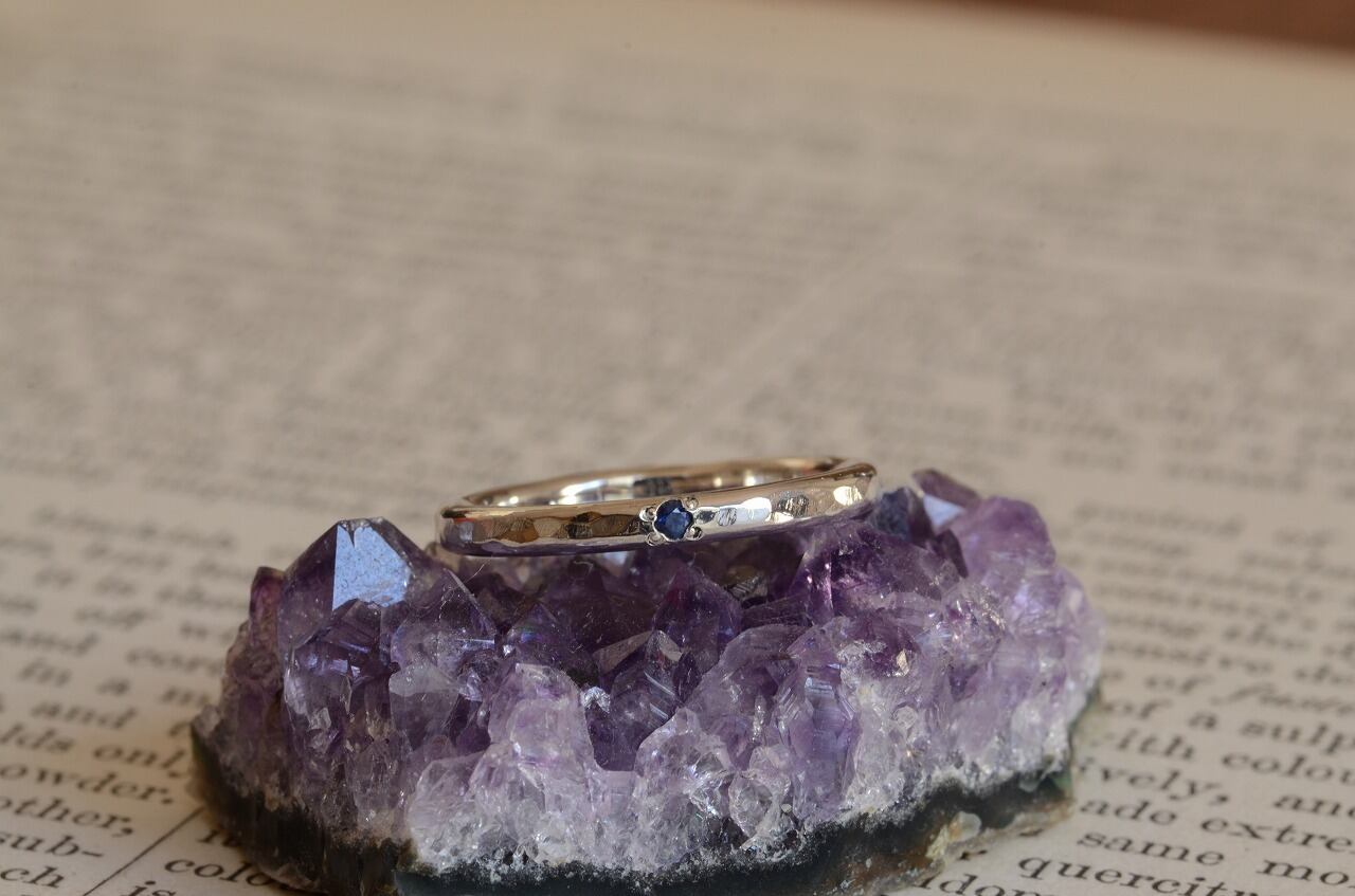 深い青色のサファイアとシルバーの組み合わせの相性は抜群ですね