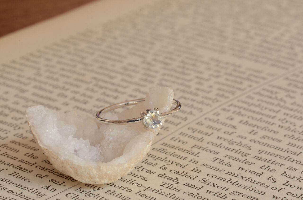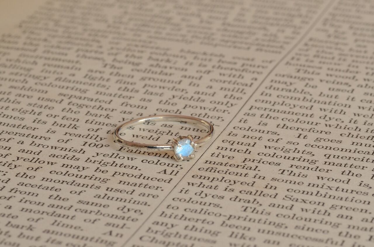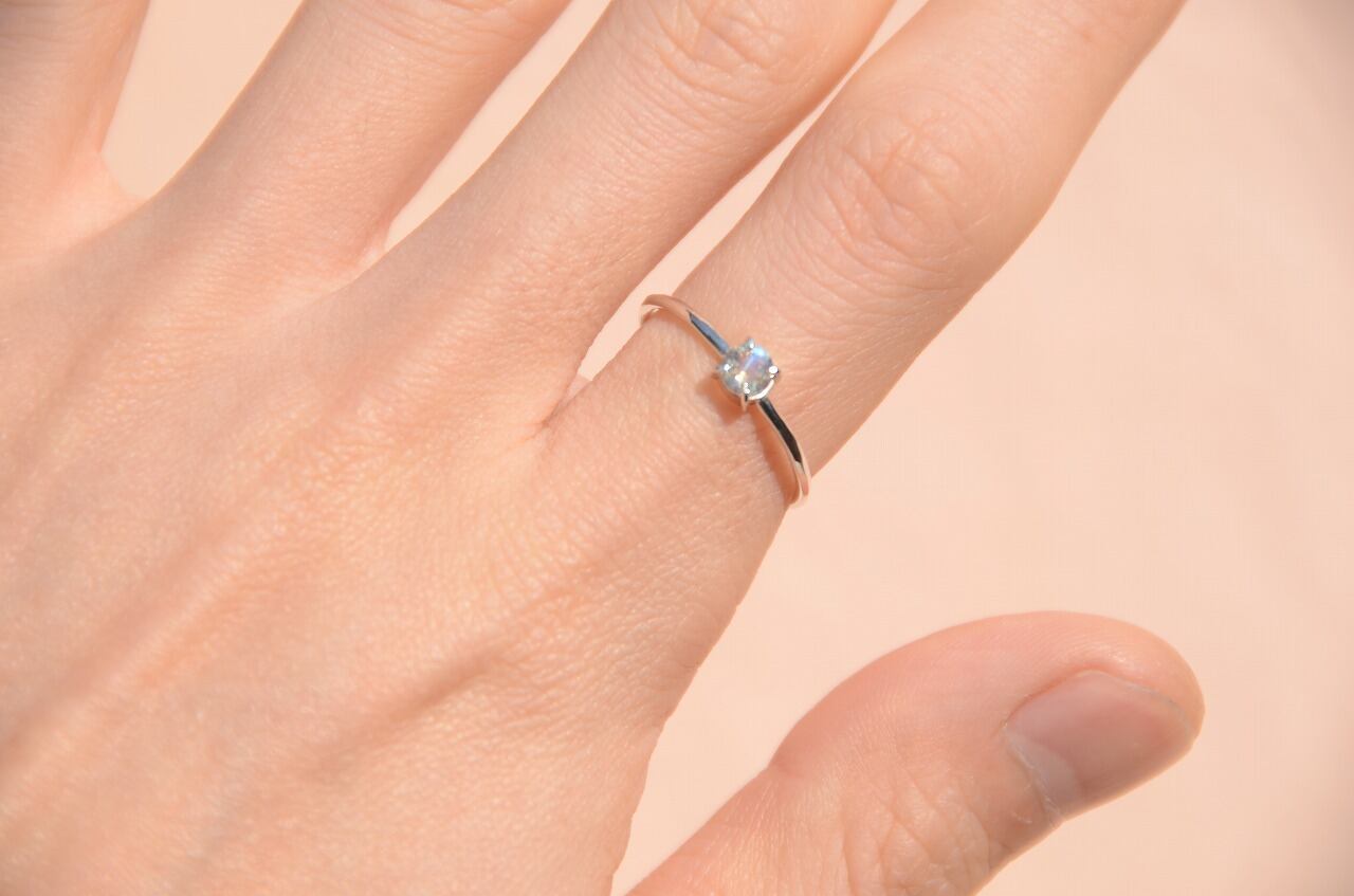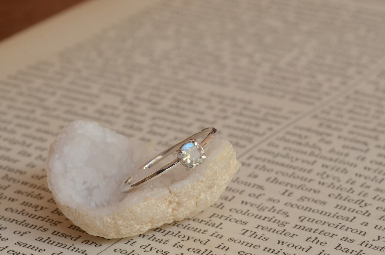 少し珍しいファセットカットのラブラドライトにシルバーを合わせて、オーソドックスなシンプルデザインのリングにしてみました。石の輝きや煌きシルバーの色の変化など時間をかけて楽しんでもらえたら幸いです。