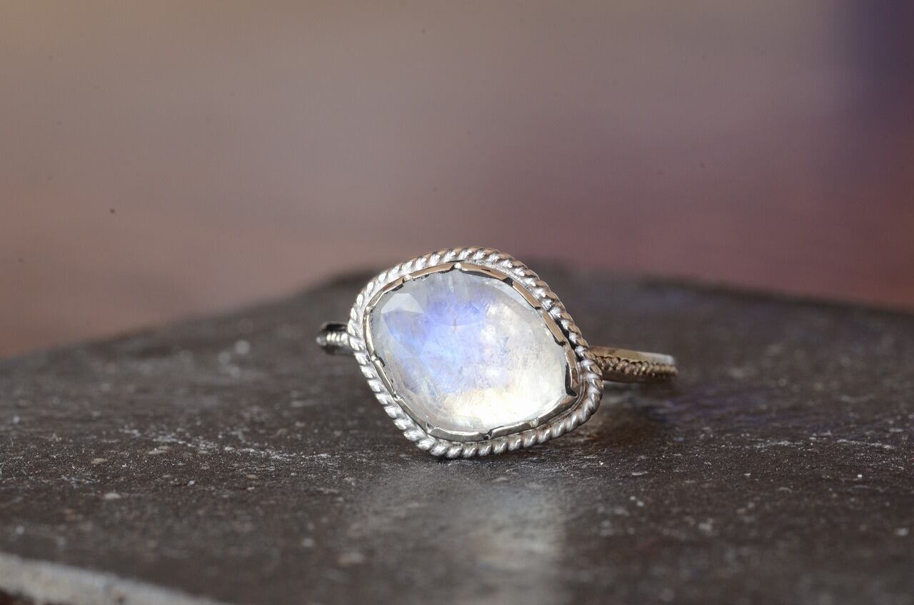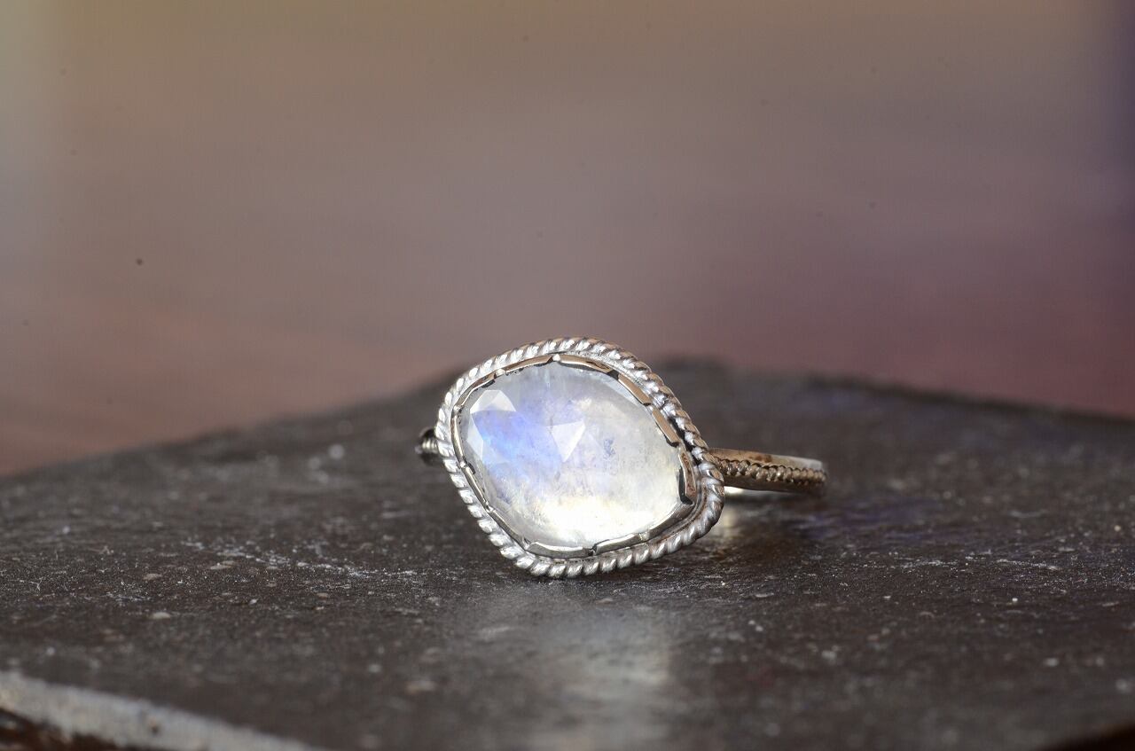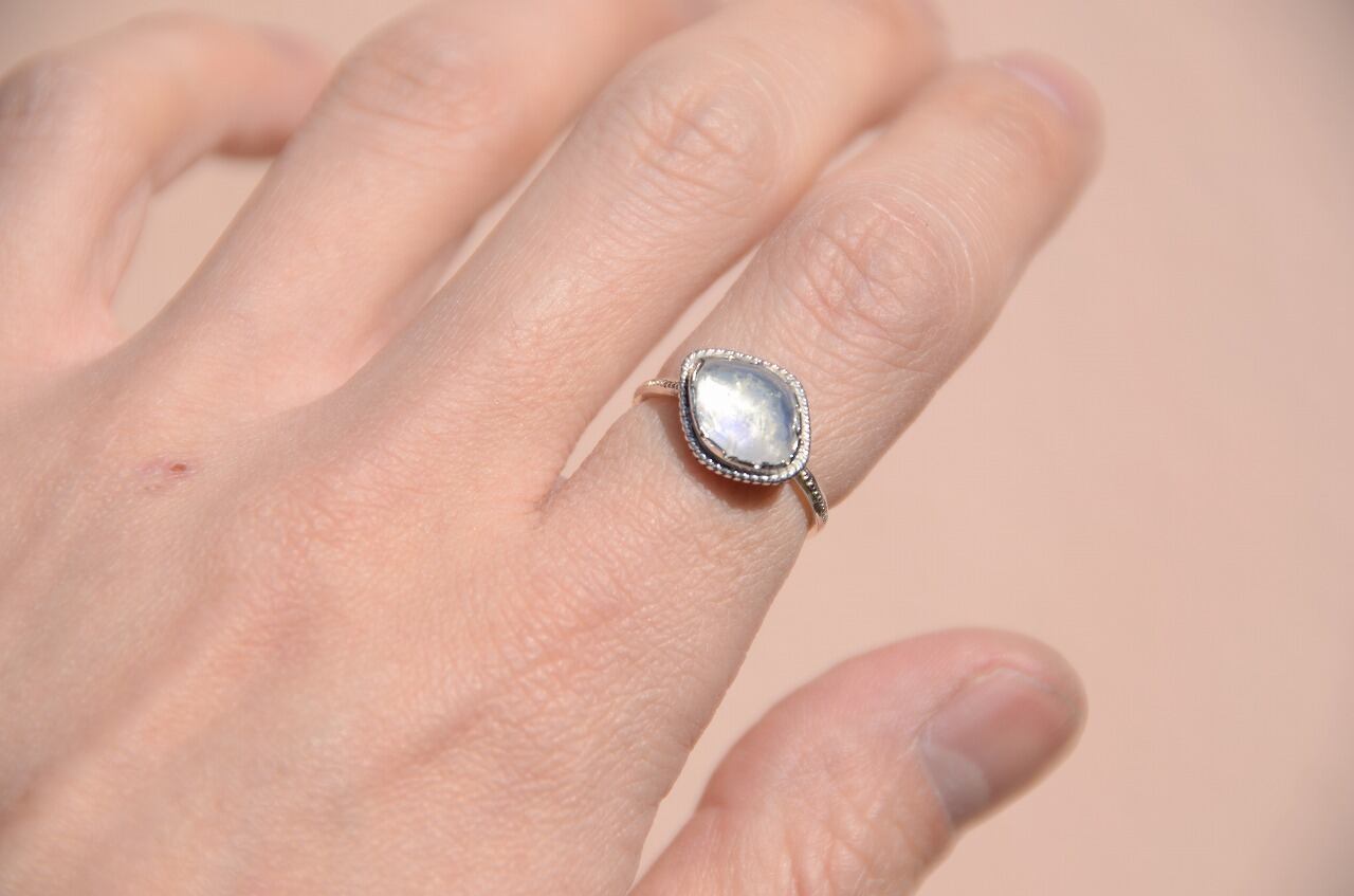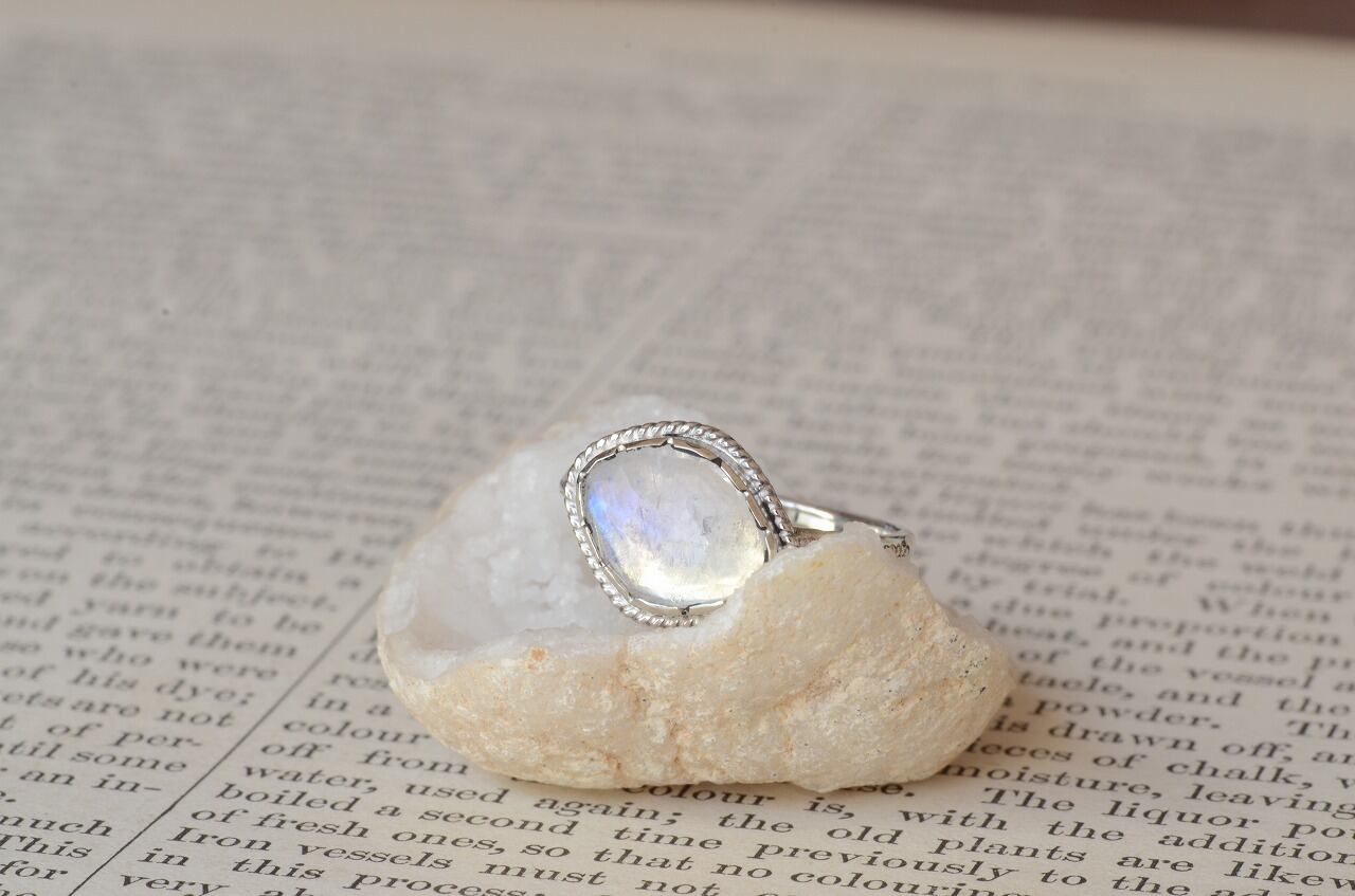 クリスマス時期に限定作品として制作を行った『聖なる物語』をベースにオーダーを頂き今回の制作を行わせてもらいました。美しい一点物のレインボームーンストーンとシルバーの組み合わせ、他にはない質感や表情をじっくりと楽しんでもらえたら幸いです