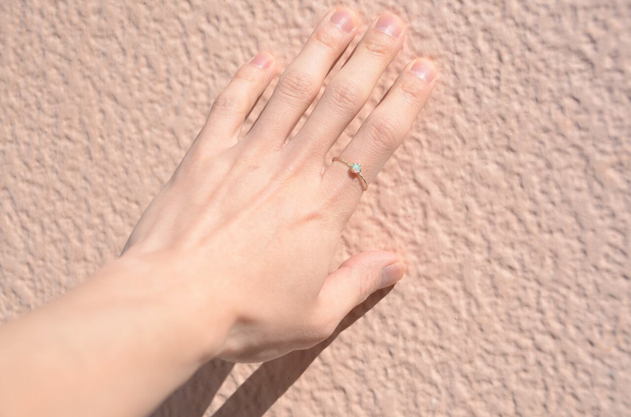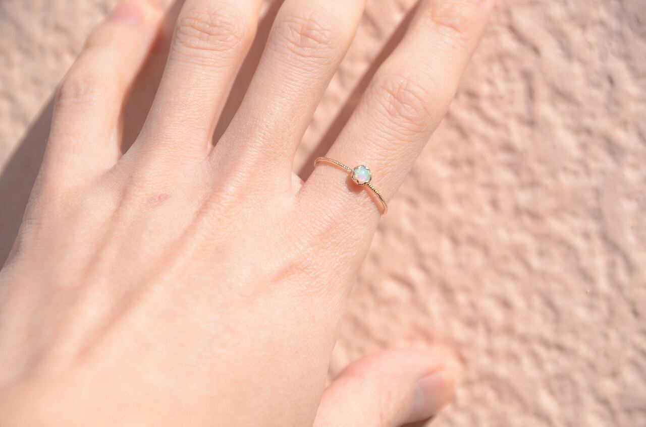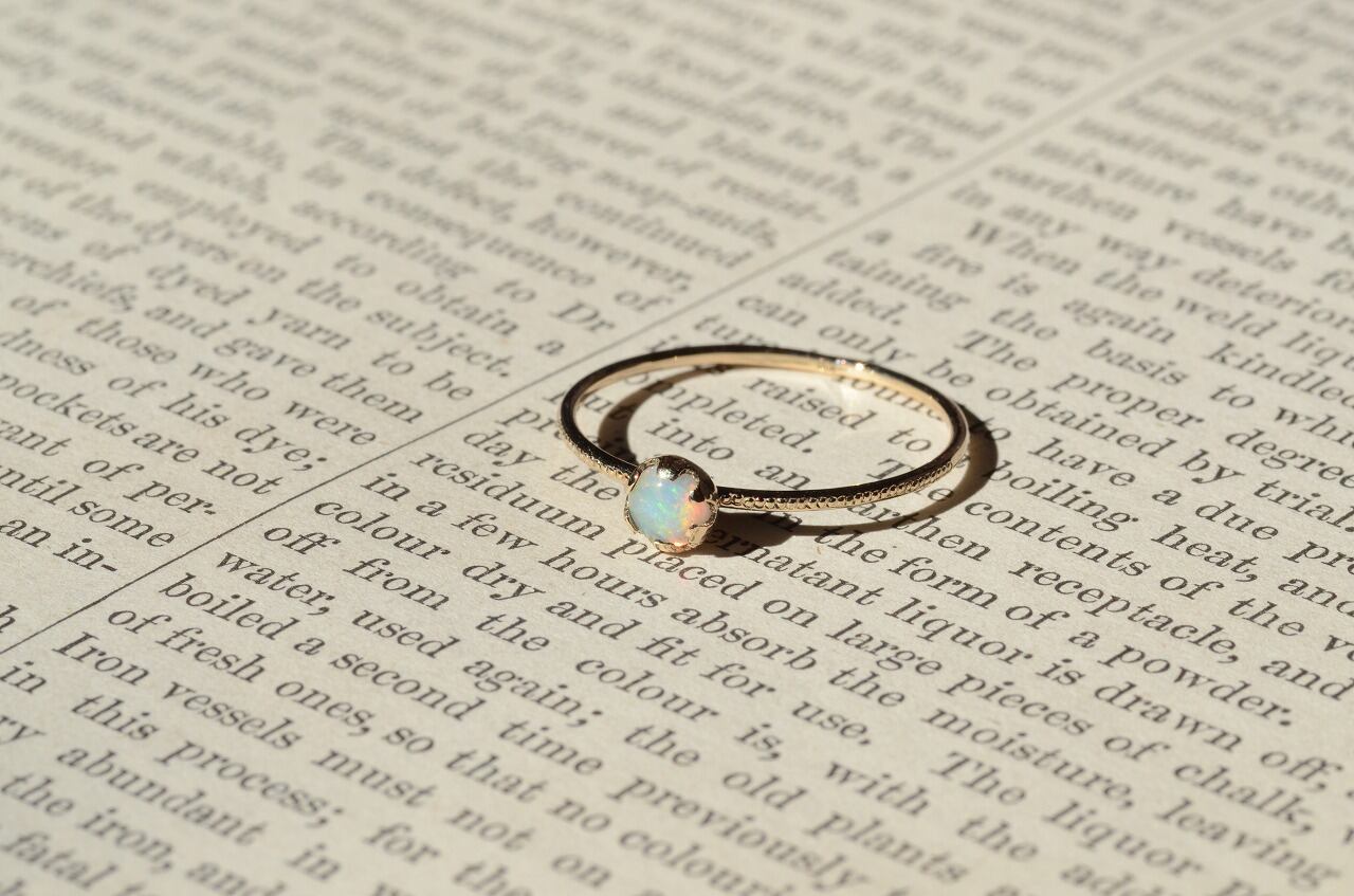 水晶と同じケイ素をメインとする鉱物でその成り立ちから水分が多く高度の柔らかい石です。見る角度によって虹色に輝く遊色効果のあるものをプレシャスオパール、きらめかないものをコモンオパールと呼んでいます。数ある石の中でもとくに明るいエネルギーを持つ石といわれ、自由なエネルギーを象徴し、想像力を高め、内面の隠れた才能を引き出す効果もあるようです。直射日光に弱いので取扱いに少しだけ注意が必要です。