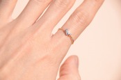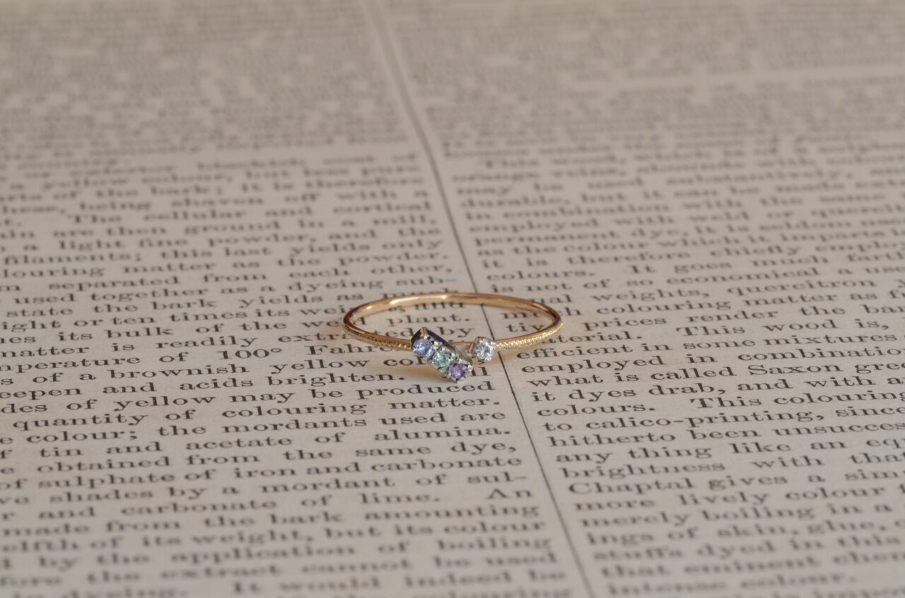 『光跡・Ⅰ』という2本のリングで一つの作品という作品のうち一本を単独でも制作してみたのが今回の作品です。4つの石と特別感を感じられる少し変わったデザイン