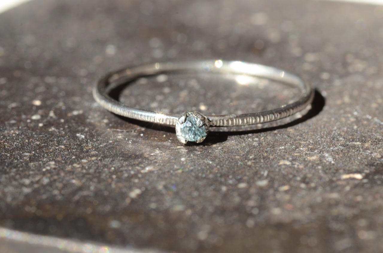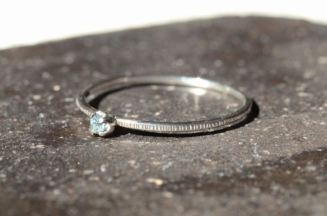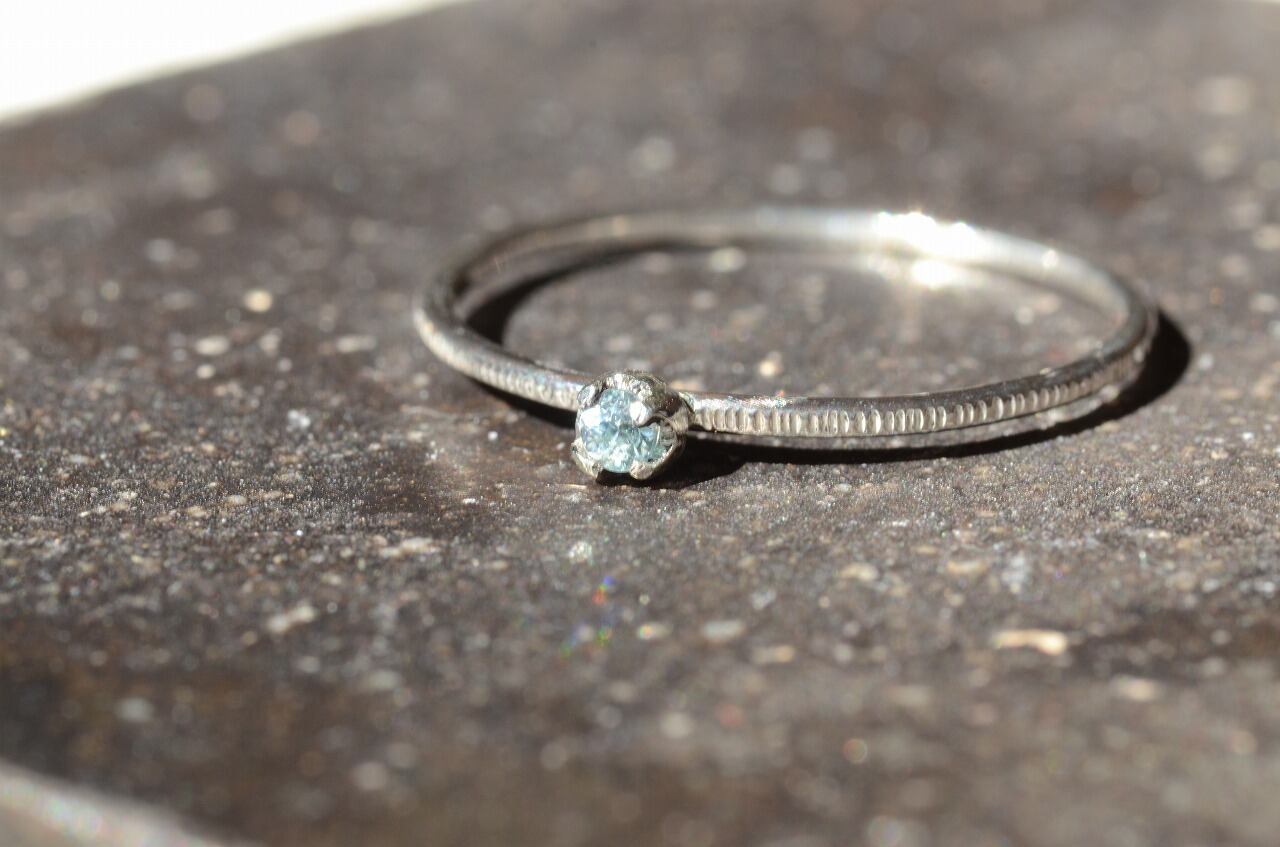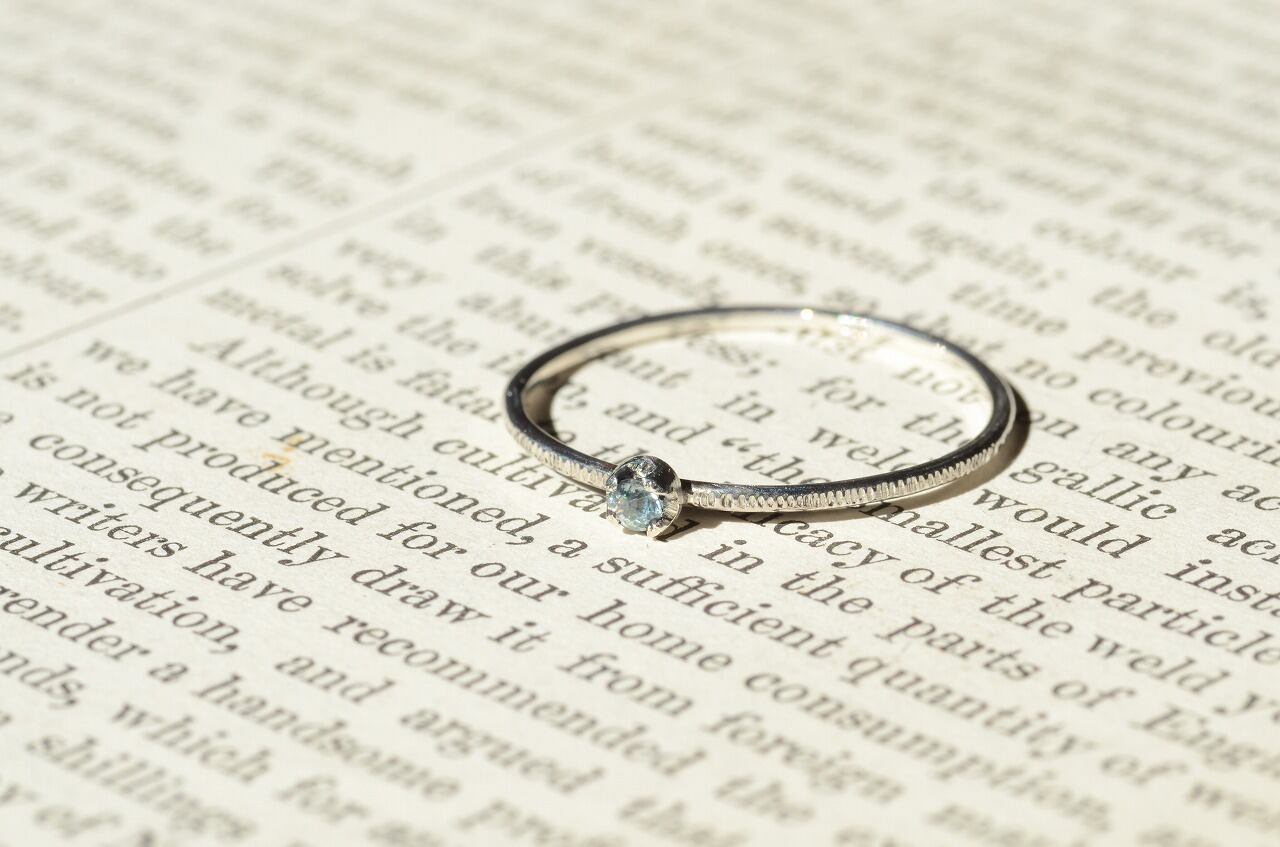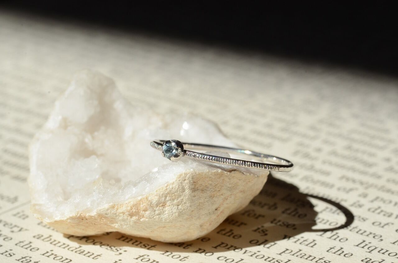 今回はブルージルコンとシルバーの組み合わせのリングです。