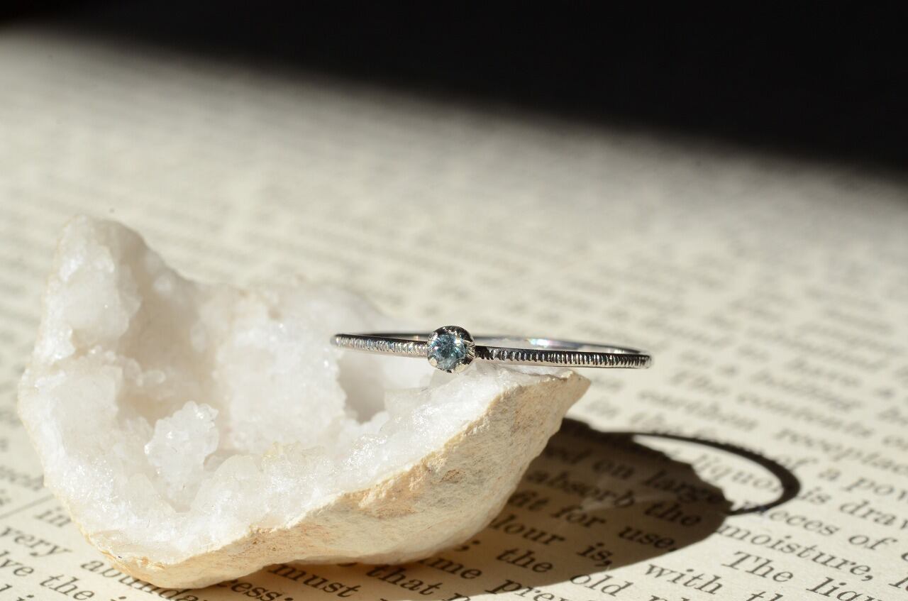 さらりと身につけられるリングでありながらダイヤモンドに劣らない美しい輝きを持つブルージルコンの輝きを楽しむことで特別感も感じられる。そんな作品になりました