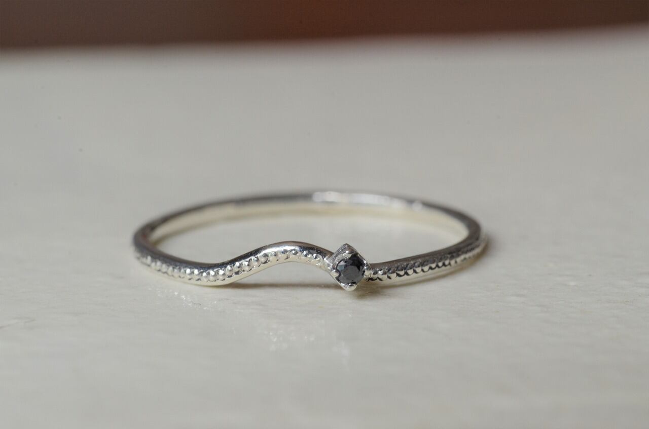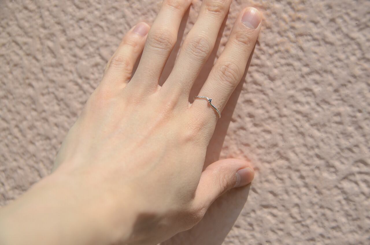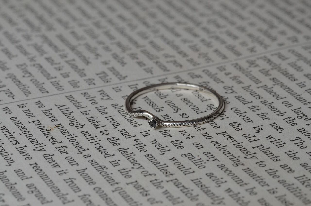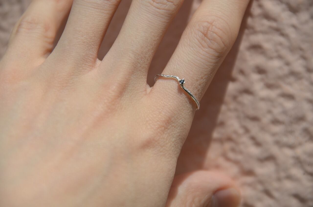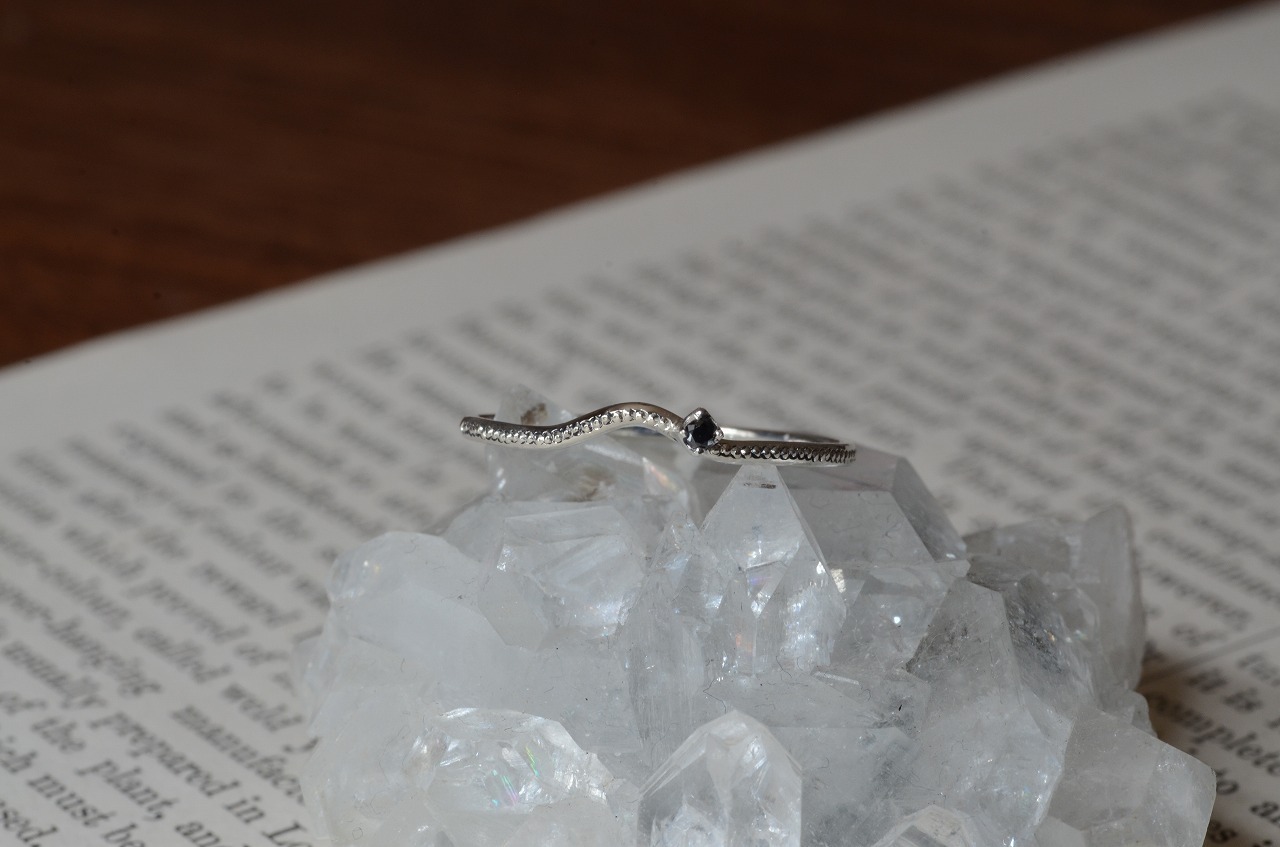 今回は最近制作をよく行う曲げを行ったリングにミルを打ってそこに一粒石を留めた作品になります。ブラックダイヤモンドとシルバーの組み合わせはやっぱり相性が良くて、重ね着けなども楽しめる作品に仕上げることができたと思っております。
