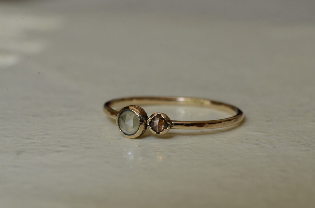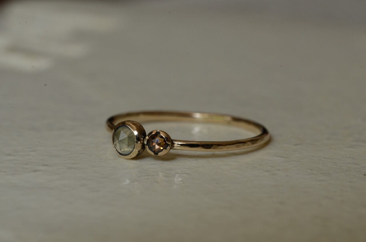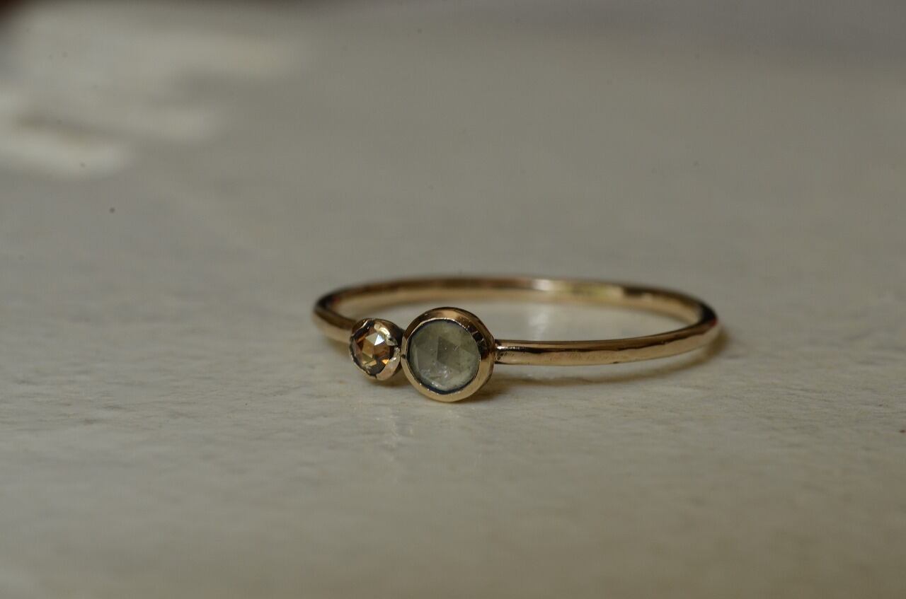 オーダーをいただきまして制作をさせていただいた今回の作品とっても素敵なイエローダイヤモンドとブラウンダイヤモンドを並べて美しい輝きをじっくりと楽しんでもらえたら幸いです。
