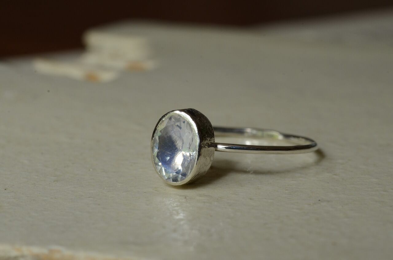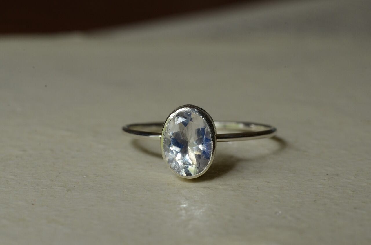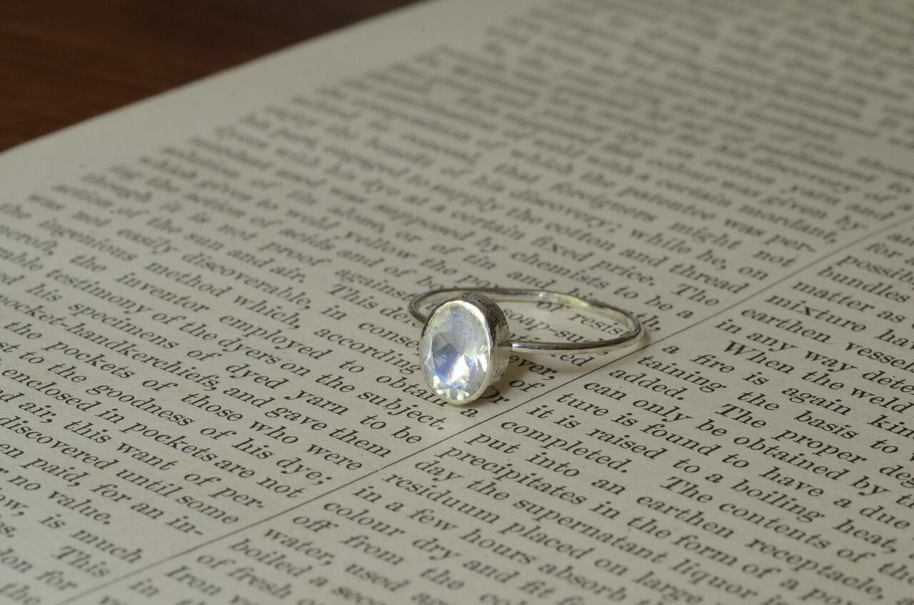 透明感がありながらほんのりと青白い光を感じられるシルバーとブルームーンストーンの組み合わせのリングです。