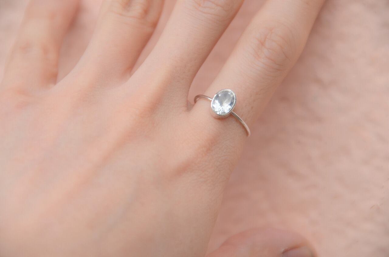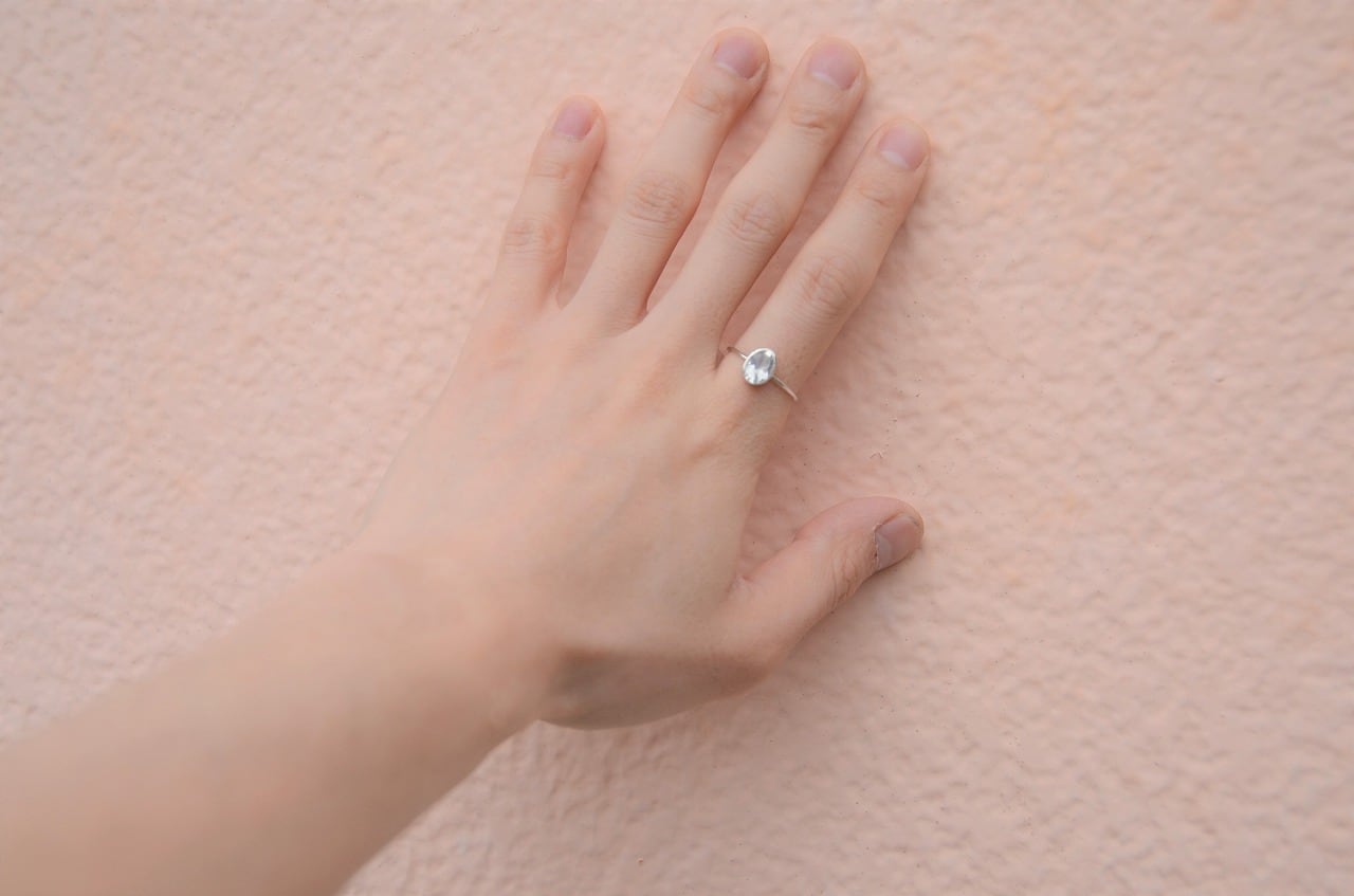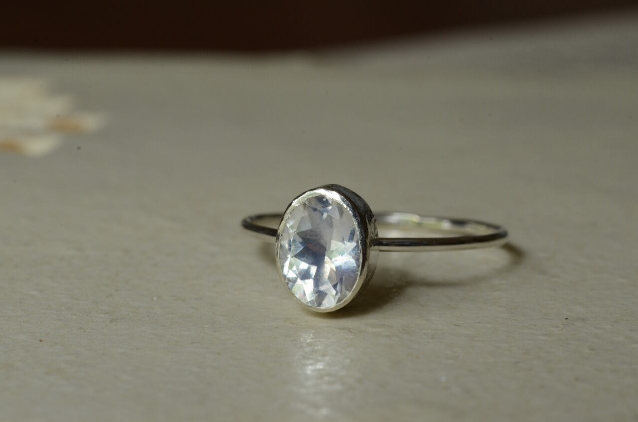 透明感がありながらほんのりと青白い光を感じられるシルバーとブルームーンストーンの組み合わせのリングです。